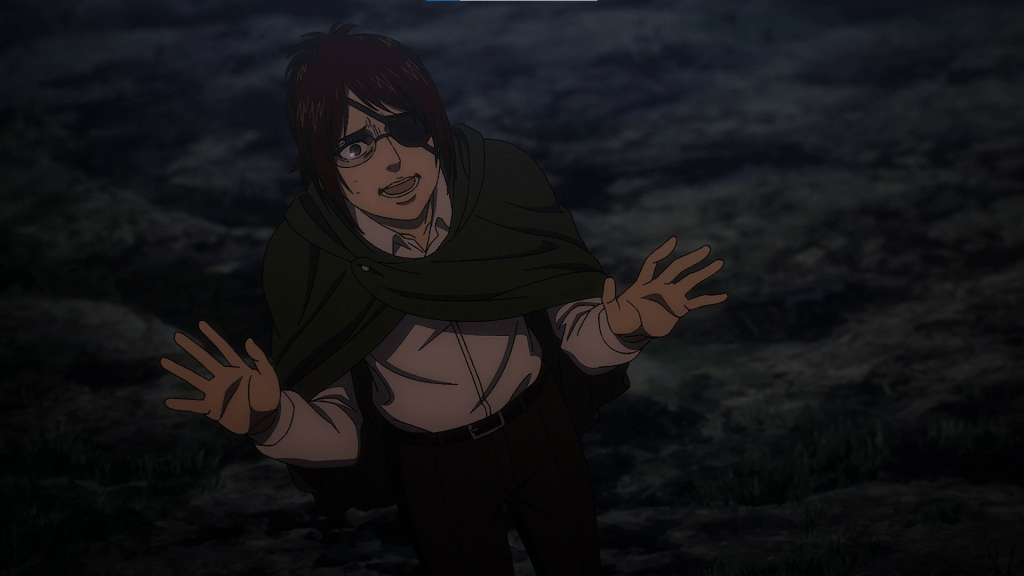 By the episode’s end, Hange and Levi, crosses path with Pieck. Here, we are about to get a gathering of the show’s most important characters. This is where all of the chaos starts to come together for the beginning of what will make or break the show.