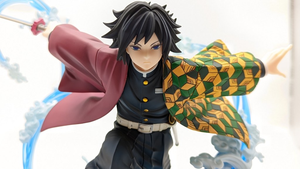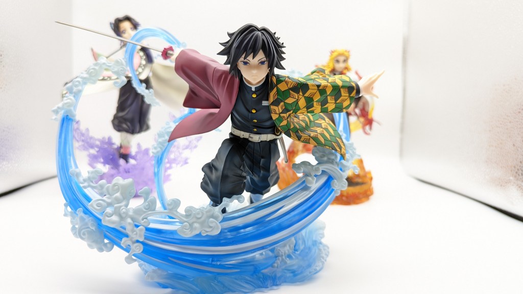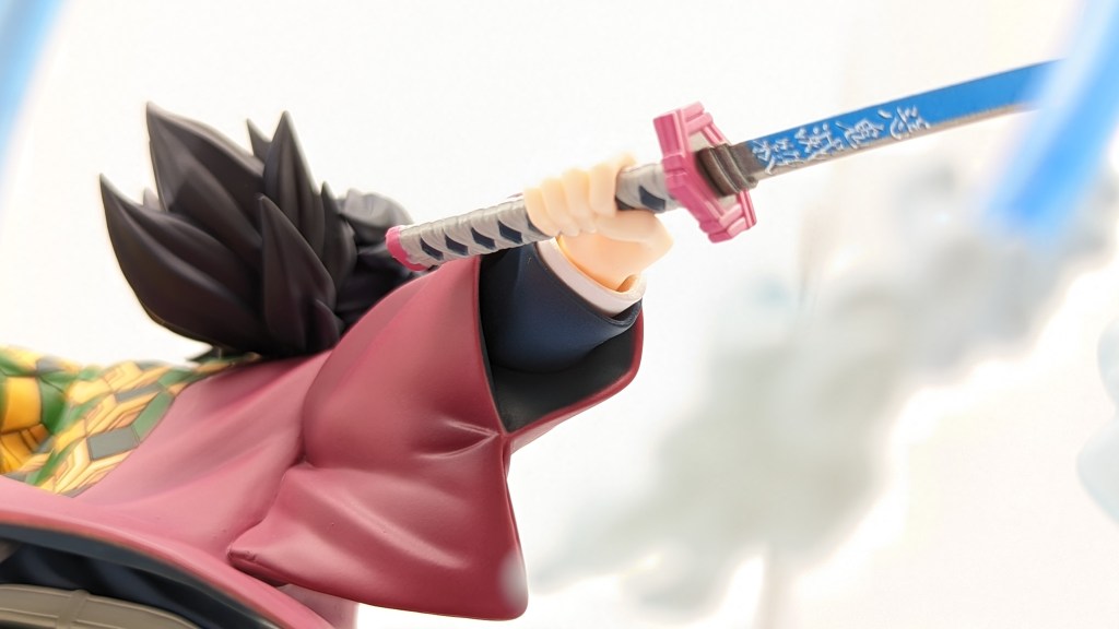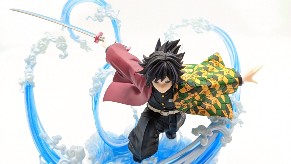 I was worried about this figure because the Giyu figure himself is not centered in the middle of the figure. With his katana in his right hand, the water effects extends out more leaving the figure at an odd proportion. Maybe they could have made the water effects on the figure’s left side extend out further? His kimono is pretty darn close to the waves of the base on the left side of his body. Although, that last part is more cautionary to the handling than anything. It’s something that people might have issues with, but it still looks pretty aesthetically pleasing.