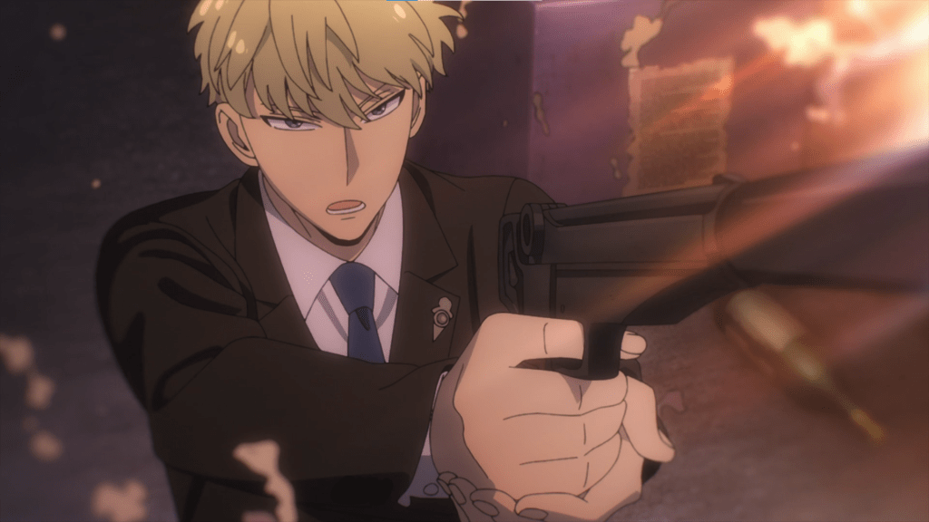 Keith is able to avoid their bullets and throws a bomb at them, blowing up their car. Loid’s partners somehow survive the explosion and Keith continues tracking down undercover Twilight. Twilight gets out of his car and proceeds to do super athletic maneuvers while Keith continues chasing him down. Even though Keith has been questioning everything that’s been fishy up to this point, he still persues. Next, Keith releases his dog to go after Loid and jumps to attack Loid while it’s in mid-air. In dramatic fashion, Loid takes off his disguise getting ready to do something he’ll most definitely regret, but must do as he aims his gun at the dog, thus concluding the episode on that cliffhanger.