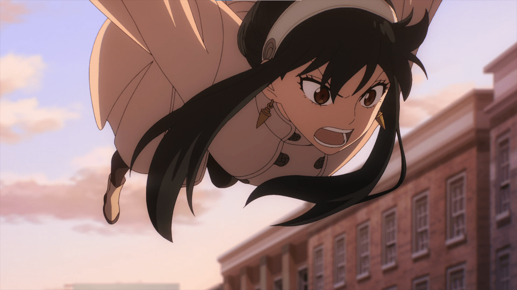 The scene shifts to Yor, Anya and Lois walking home. Yor is blushingly happy that she foiled some bad guys’ plans. Anya is secretly just as ecstatic, knowing that she helped stop the bad guys and saved Loid from dying.