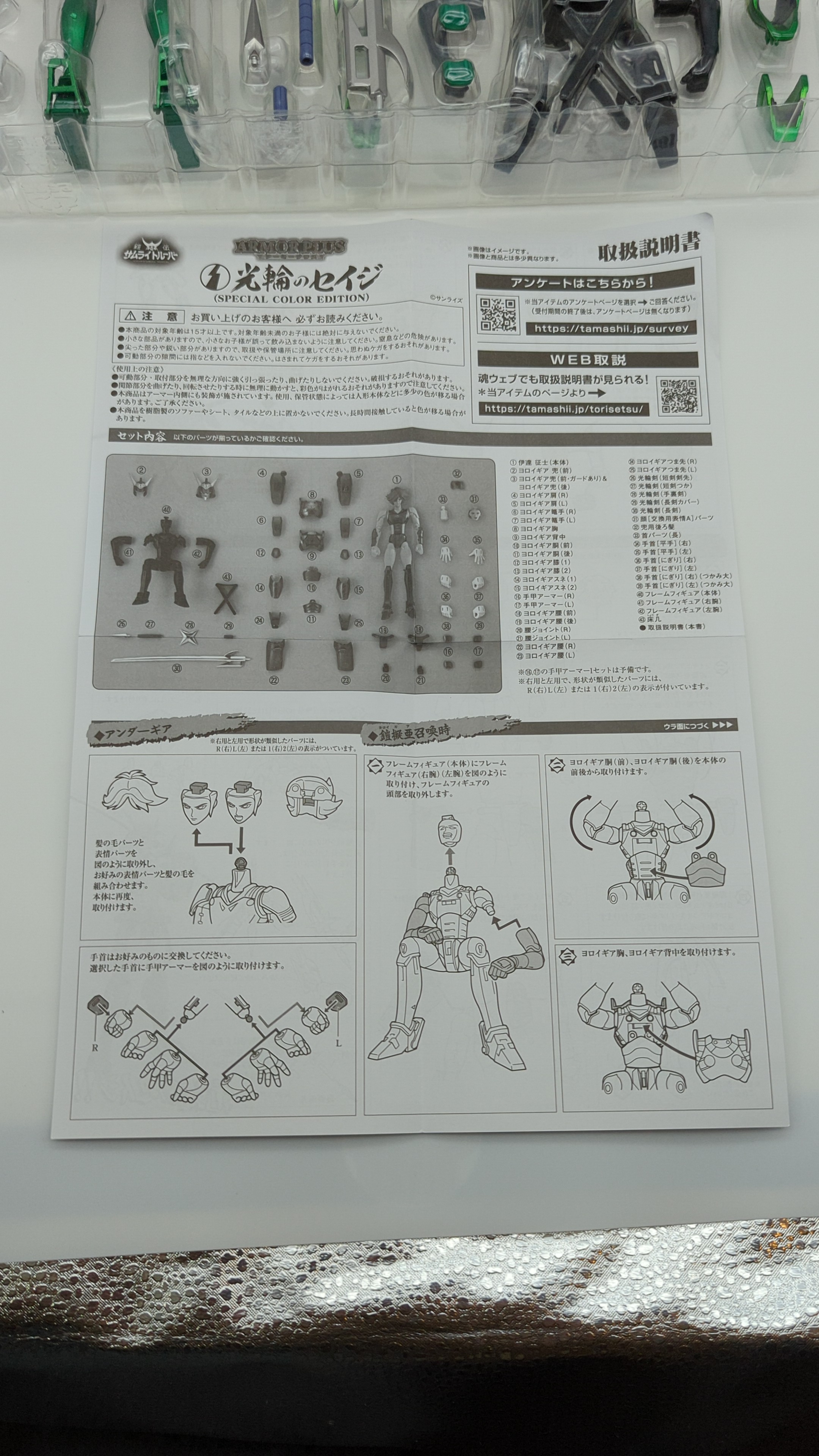 The Armorplus box comes in a very similar design like the previous released “Special Color Edition” ones. There are 2 separate plastic containers holding the parts and the black & white manual.