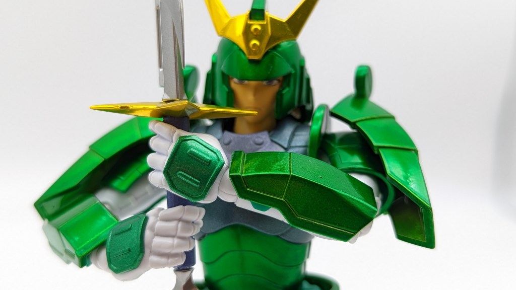 Switching out the hands and putting together the sword was a fairly simple process as well. From the “sitting down” pose and putting the armor onto to figure itself, I did not run into anything of concern.