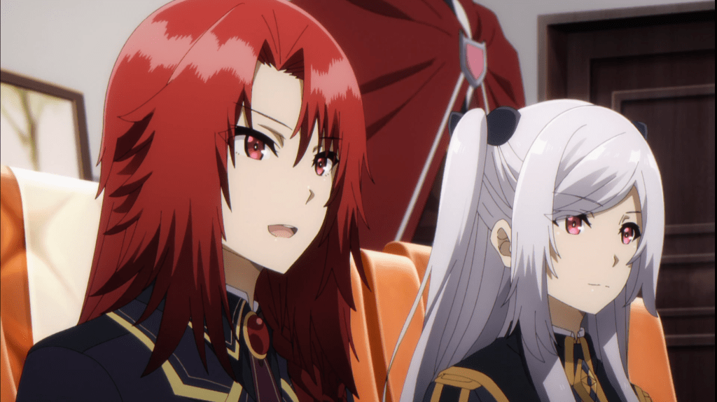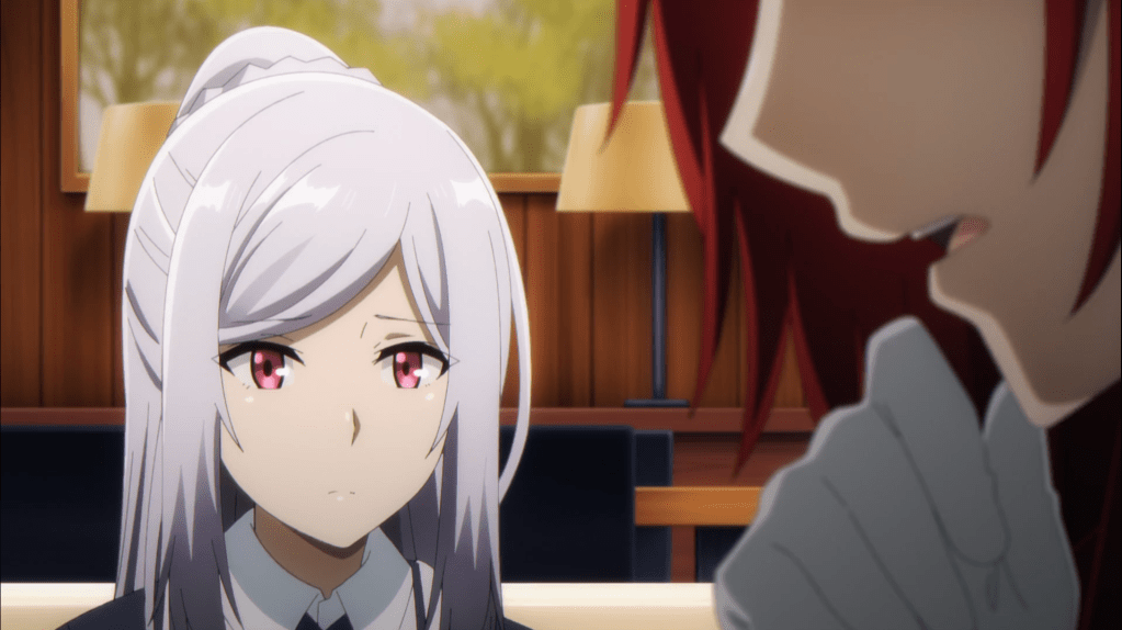 After a brief moment revealing that there is some kind of antagonist working from behind the scenes, a bandaged up Alexia speaks with Iris about what transpired between Shadow and the fake Shadow Garden. Iris mentions that she encountered a real Shadow Garden member in Alpha. Alexia poses the question to Iris about who the real enemy is? Iris responds with “both.”