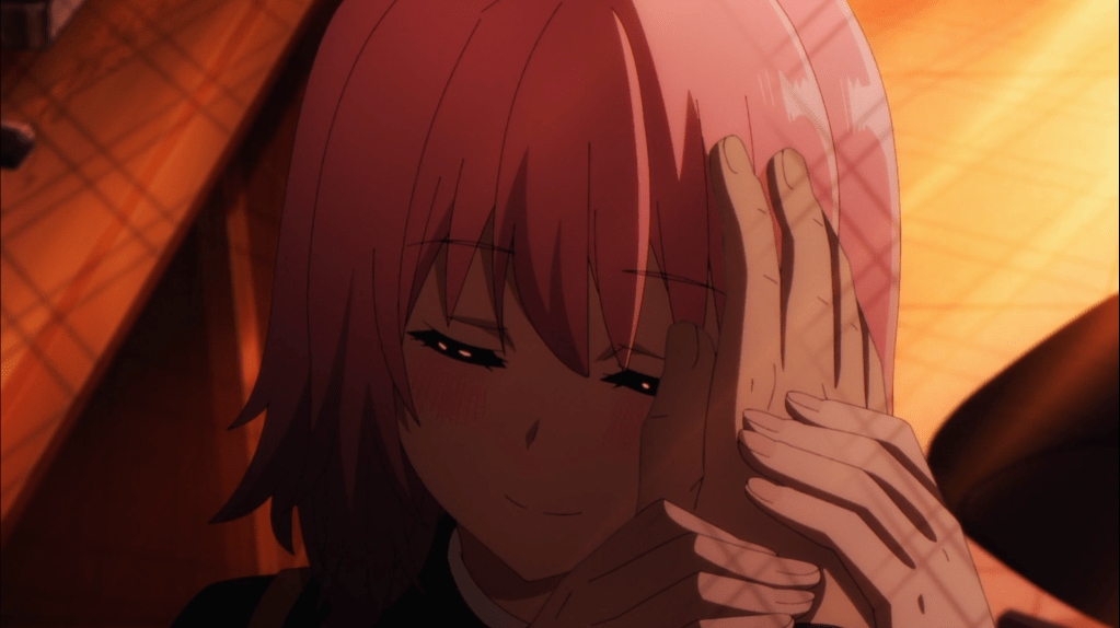 Next up is Po’s miserable attempt to court a lady, He goes full creep mode by researching everything about a particular girl. Off screen, he chases down the girl down to have her just accuse him of “stalking” her; causing a ruckus in the background. For Cid, his whole purpose is to look the part of a background character, so he decides he’s just going to gift the chocolate to the next girl that he encounters. Coincidentally, that girl that shows up is none other than the pink haired girl, Sherry Barnett.