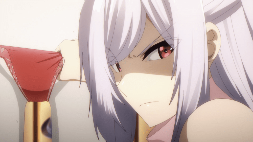 Ahh yes, the “misunderstanding romantic motif” that finds the sweet nuance in each arc, finding creative ways to get popular archetypal anime female characters to be in a relationship with the main character that’s a background character, Cid Kagenou. Add that motif to the motif that Cid continually misreads situations as he reads Rose’s affection as religious indoctrination.