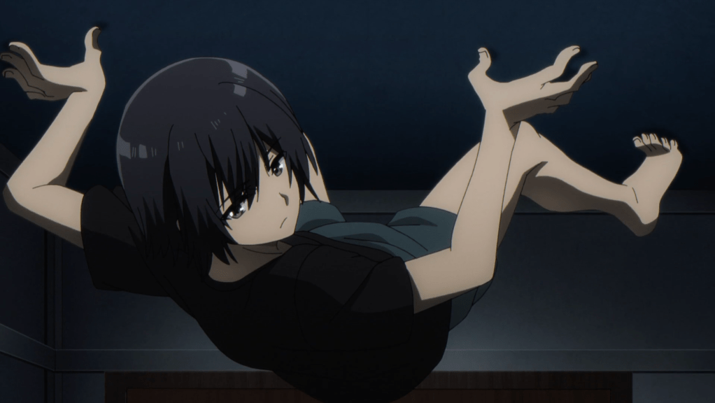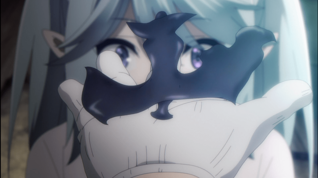 After the opening credits, we are introduced with another Shadow Garden member, Epsilon. She’s a flat chested ectomorphic body-type who hones a power similar to Cid’s black slime. Going with the theme of comedic interpretations of famous tropes, she sees the slime as “a way to change her fate,” making it as her life’s goal to be “voluptuous,” as she uses the slime’s powers to create a curvier look. This is in reference to Cid’s words of wisdom as he shows her the powers of his slime from her childhood. The power to “change your fate” has its broad interpretations and so Epsilon took it so.