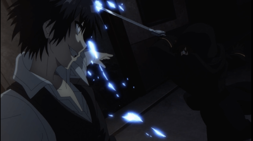 Assuming that Cid understood Beta’s instructions about the mission, he stands outside eating ice cream, speaking with extra bass in his voice. He then notices a shadowy figure running across the city and goes to confront him. The shadowy characters feels Cid’s presence and unleashes a swinging sword assault on Cid, but he is able to deflect it with his popsicle stick. All of the sudden, a three blue claw light slash comes down to slice down the henchman. Cid recognizes this person as Epsilon. She updates Cid about the current mission, explaining that they were able to stop all of the henchmen, except the “executioner” himself, who was able to escape and is currently hiding.