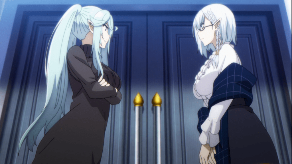 Judging by the opening scene and the back and forth of Beta and Epsilon, this episode had the feel of one of those classic filler kind of episodes with The Eminence in Shadow emphasis style of comedic irony. With one of the Shadow Garden members KO’ing herself as she sleepwalks into a wall, it sets up the episode as being as such. At the same time, this scene establishes the episode’s theme for many of the upcoming interactions that have to do with many of the ladies’ romantic interest in Cid; highlighting one of the more amusing dynamics in the show like when Sherry spoke to Alexia about the status of her relationship with Cid.
