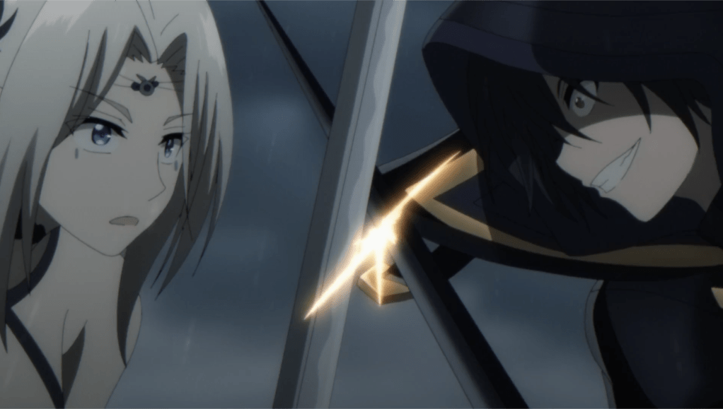 Mundane blocks her attack with the backside of his hand and uses his other to choke slam Iris to the ground, unsheathing his sword and presenting it to her neck. Mundane questions Iris’s strength, “what’s wrong? We are just getting started.” Ominously, a lightning strikes in the background with a thunderous roar and the scene shows Iris’s sword completely shattered on the ground.