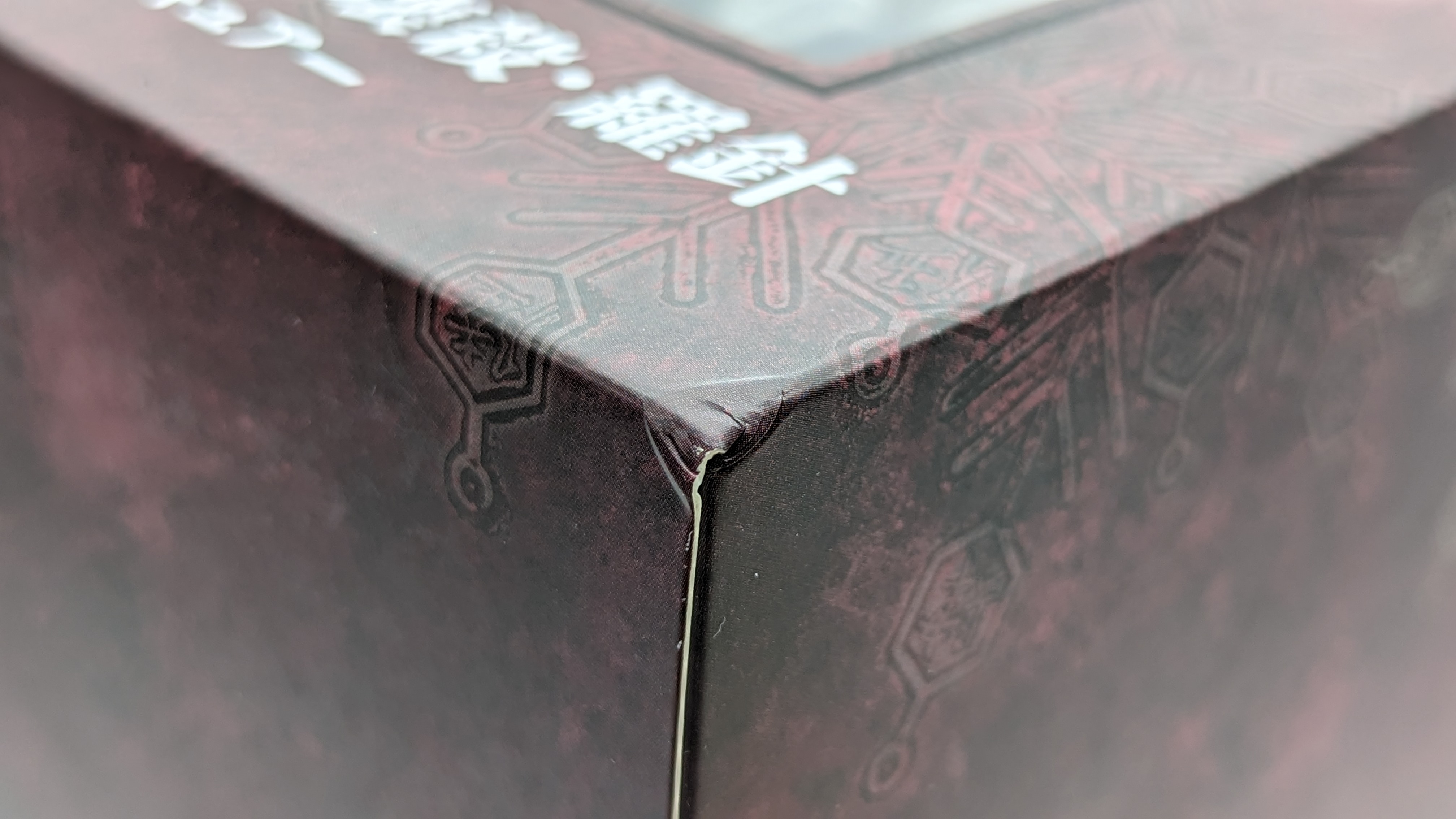 - Dark Maroonish/ reddish color box w/ Compass Needle theme