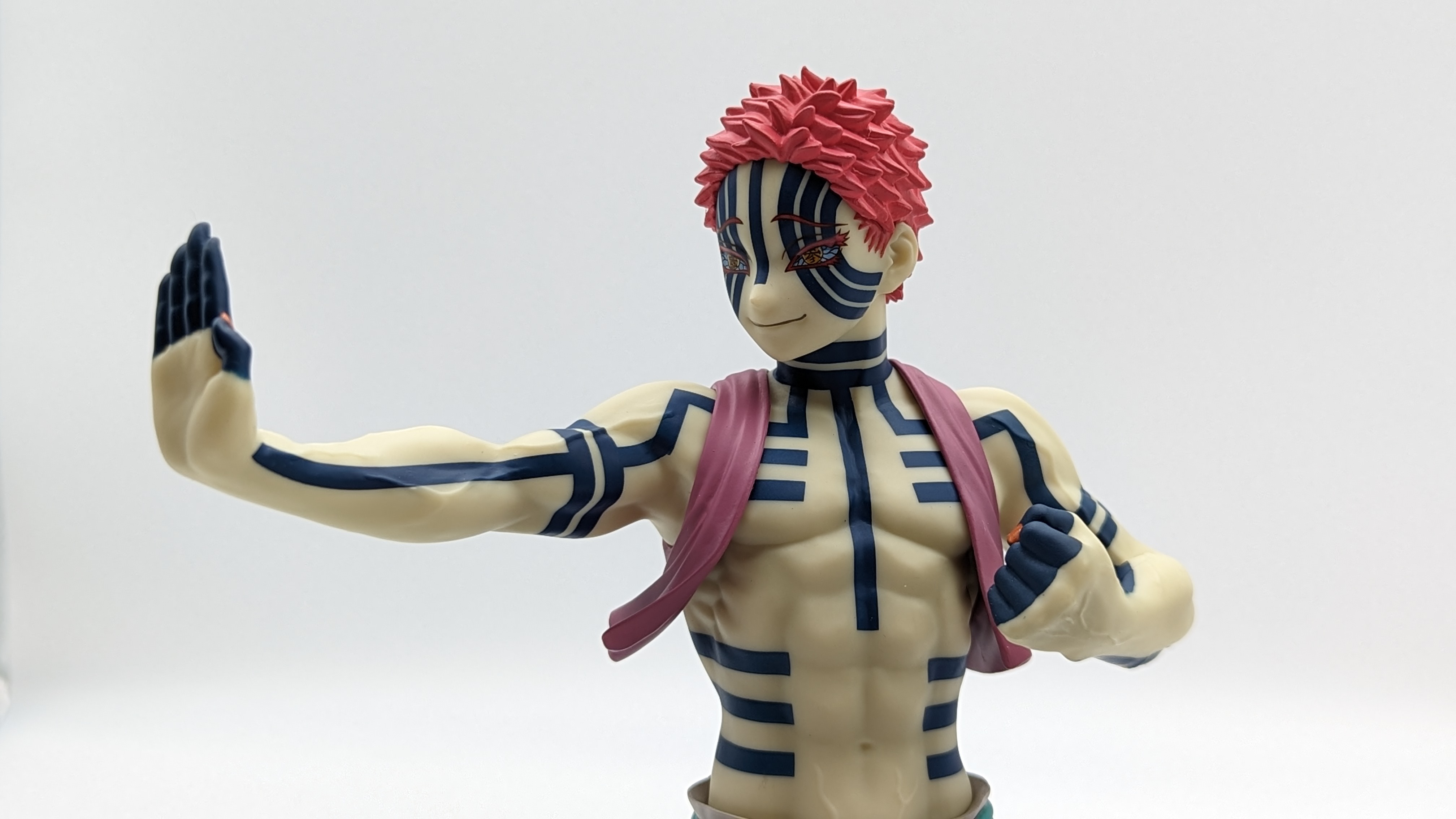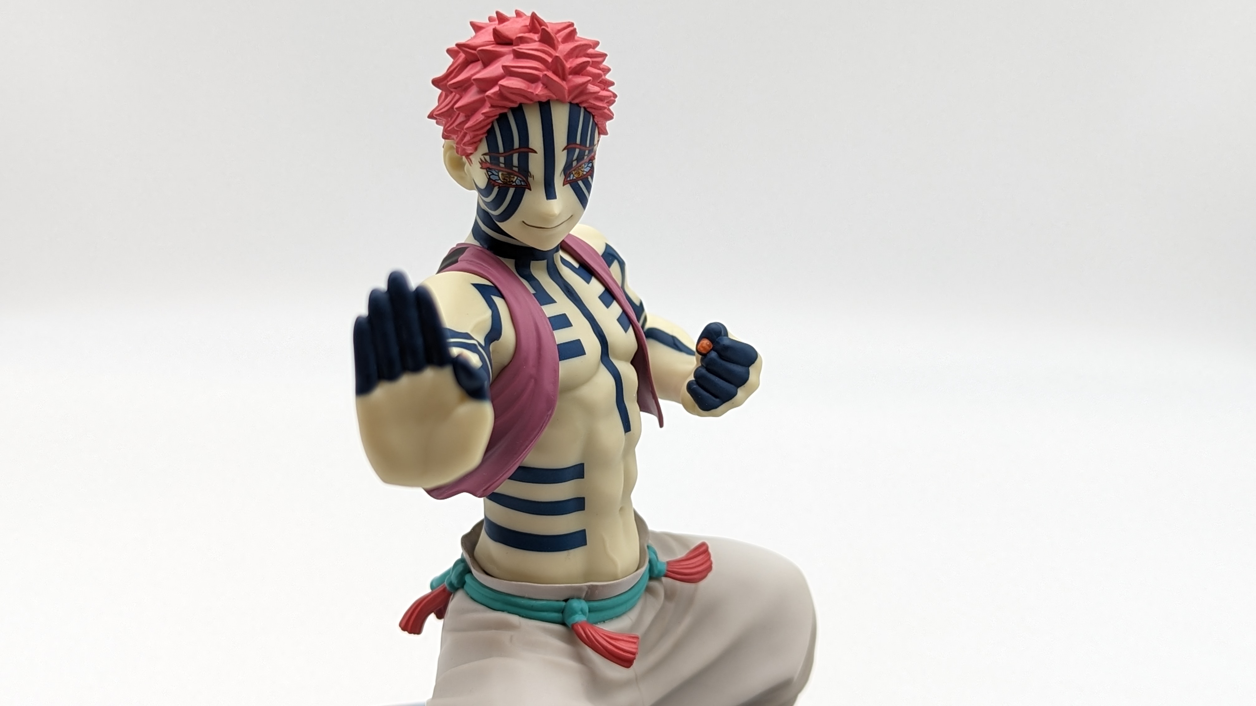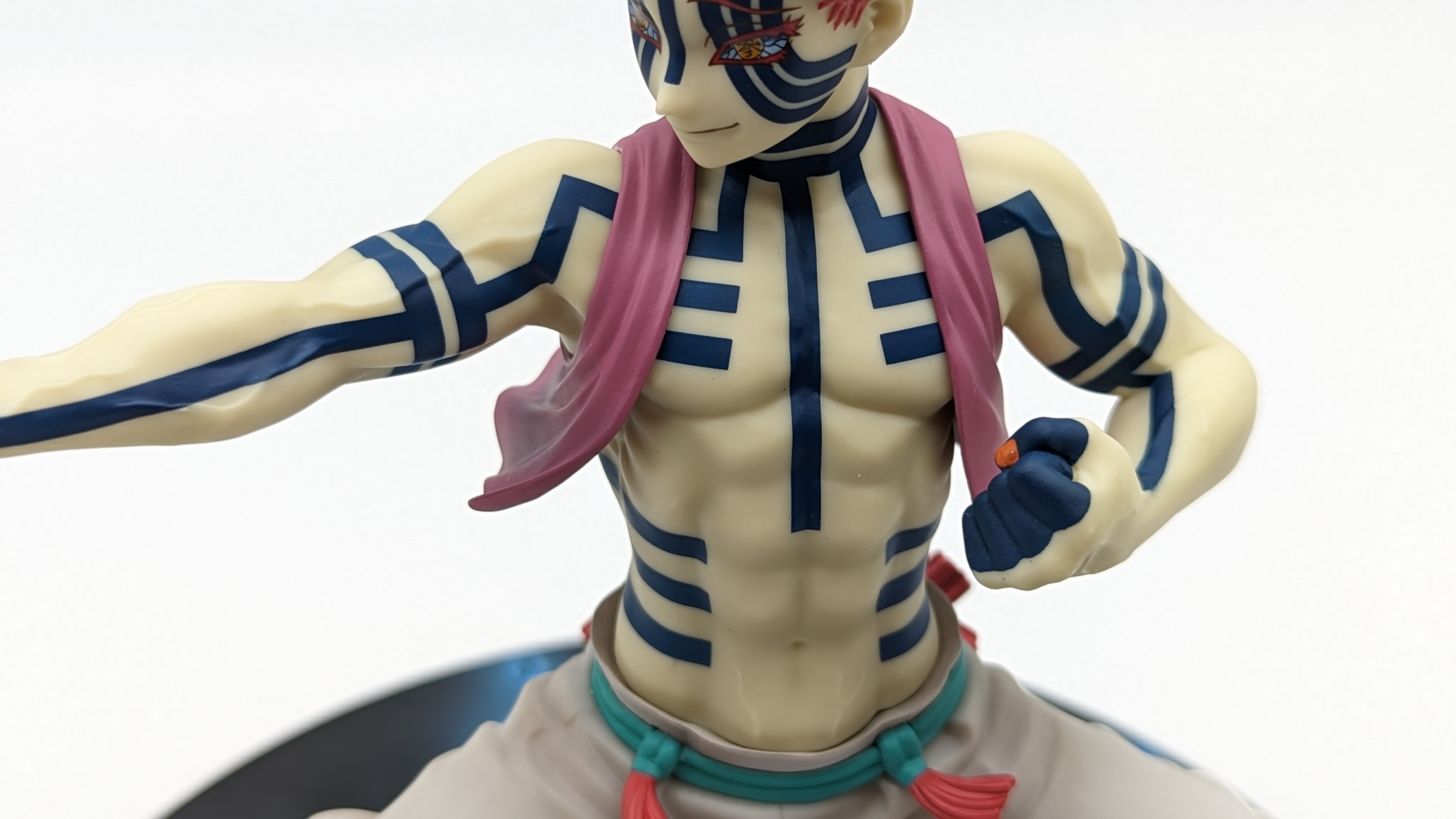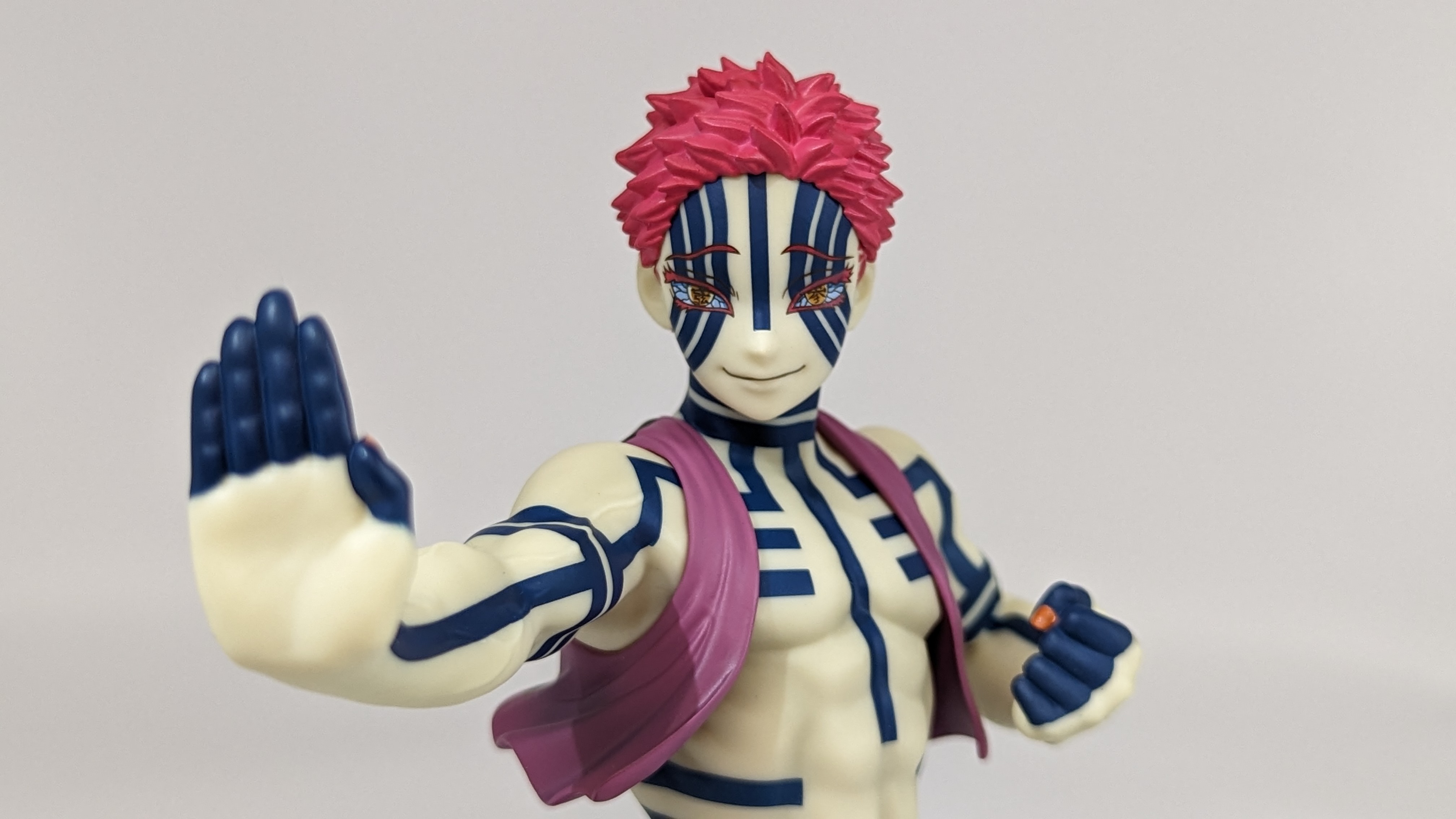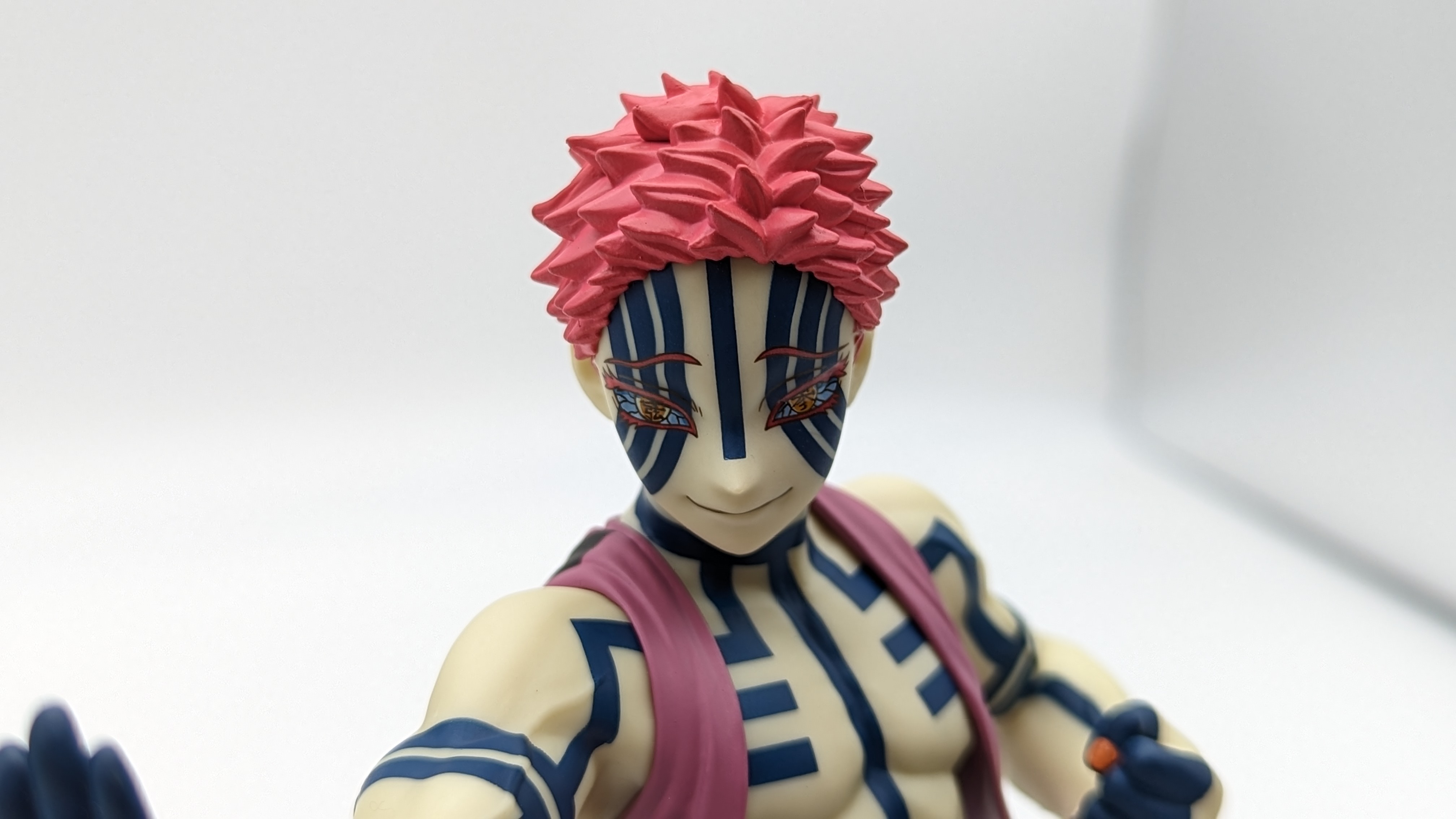 When it comes to anime figure collecting, you always have to ask yourself what you actually want. In my case, I value sculpt and paint accuracy, clean make and a pose that is representative of the character, ideally from an iconic moment. In this case, this figure satisfies all that. The face IS Akaza. His hair sculpt looks great. The veins in his body really brings out what makes him a “demon.” Even the subtle way the feet were sculpted to look real makes me excited about this figure. Everything you can really ask for Akaza and this figure is blown out of the waters. Maybe you can make some complaints about the blue paint speckles? To the naked eye, you will not be able to see it unless you really want to go eye-to-eye with Akaza.