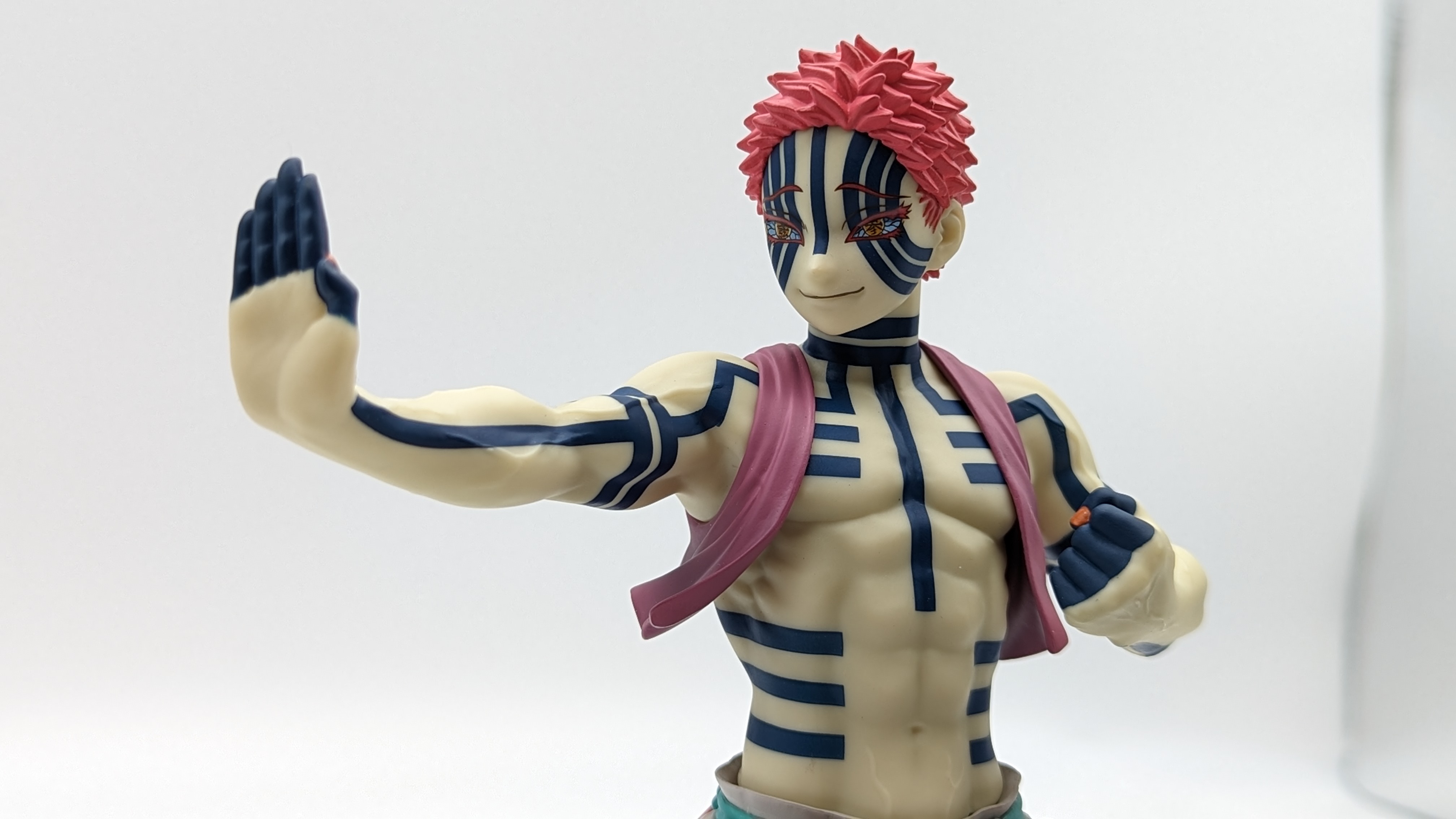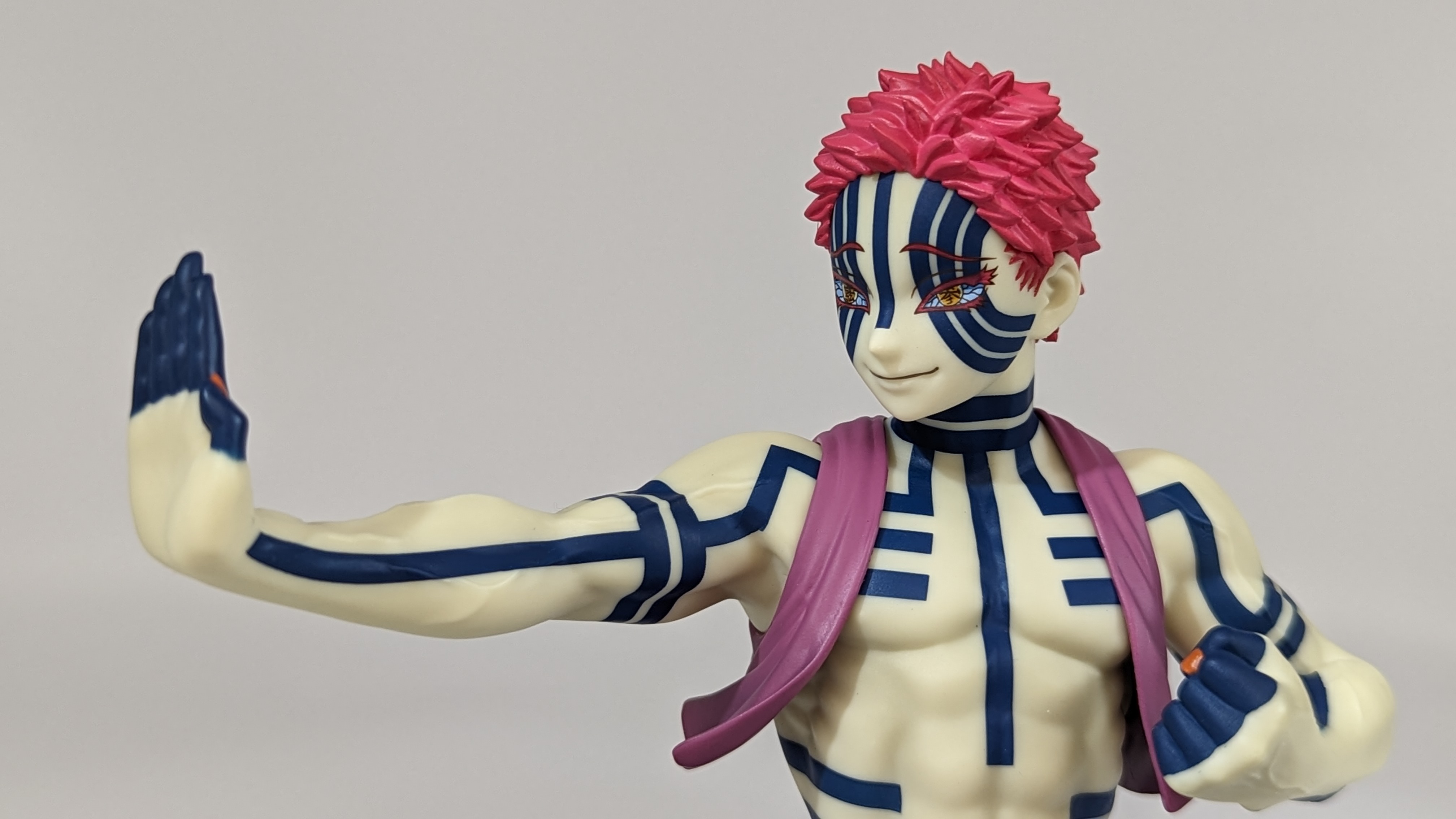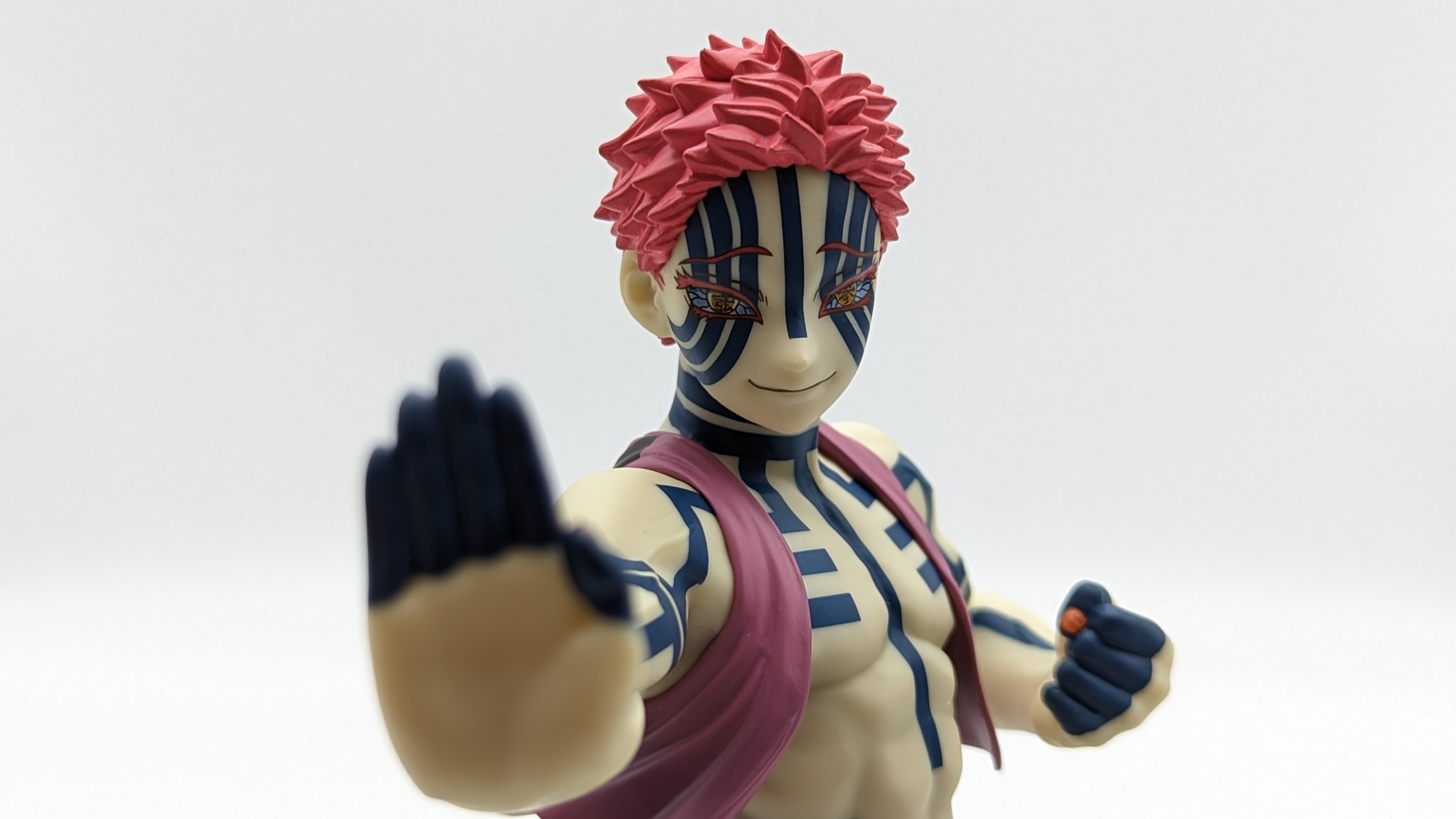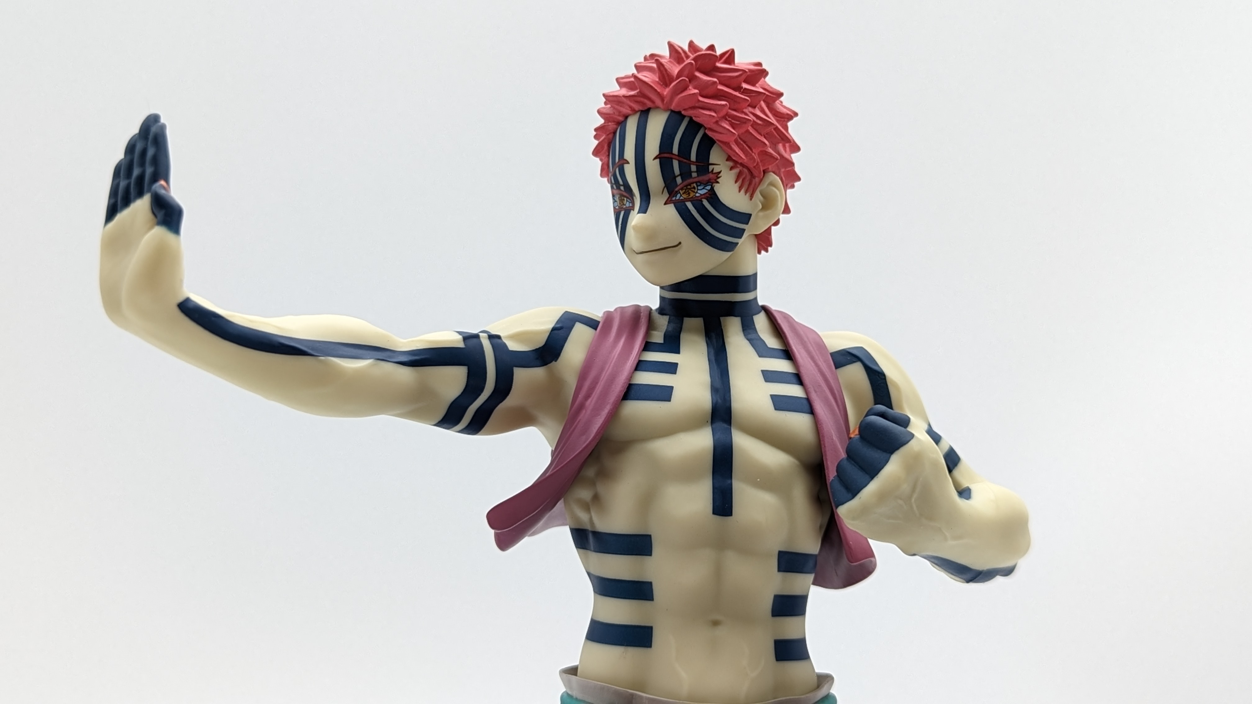 When it comes to anime figure collecting, you always have to ask yourself what you actually want. In my case, I value sculpt and paint accuracy, clean make and a pose that is representative of the character, ideally from an iconic moment. In this case, this figure satisfies all that. The face IS Akaza. His hair sculpt looks great. The veins in his body really brings out what makes him a “demon.” Even the subtle way the feet were sculpted to look real makes me excited about this figure. Everything you can really ask for Akaza and this figure is blown out of the waters. Maybe you can make some complaints about the blue paint speckles? To the naked eye, you will not be able to see it unless you really want to go eye-to-eye with Akaza.
