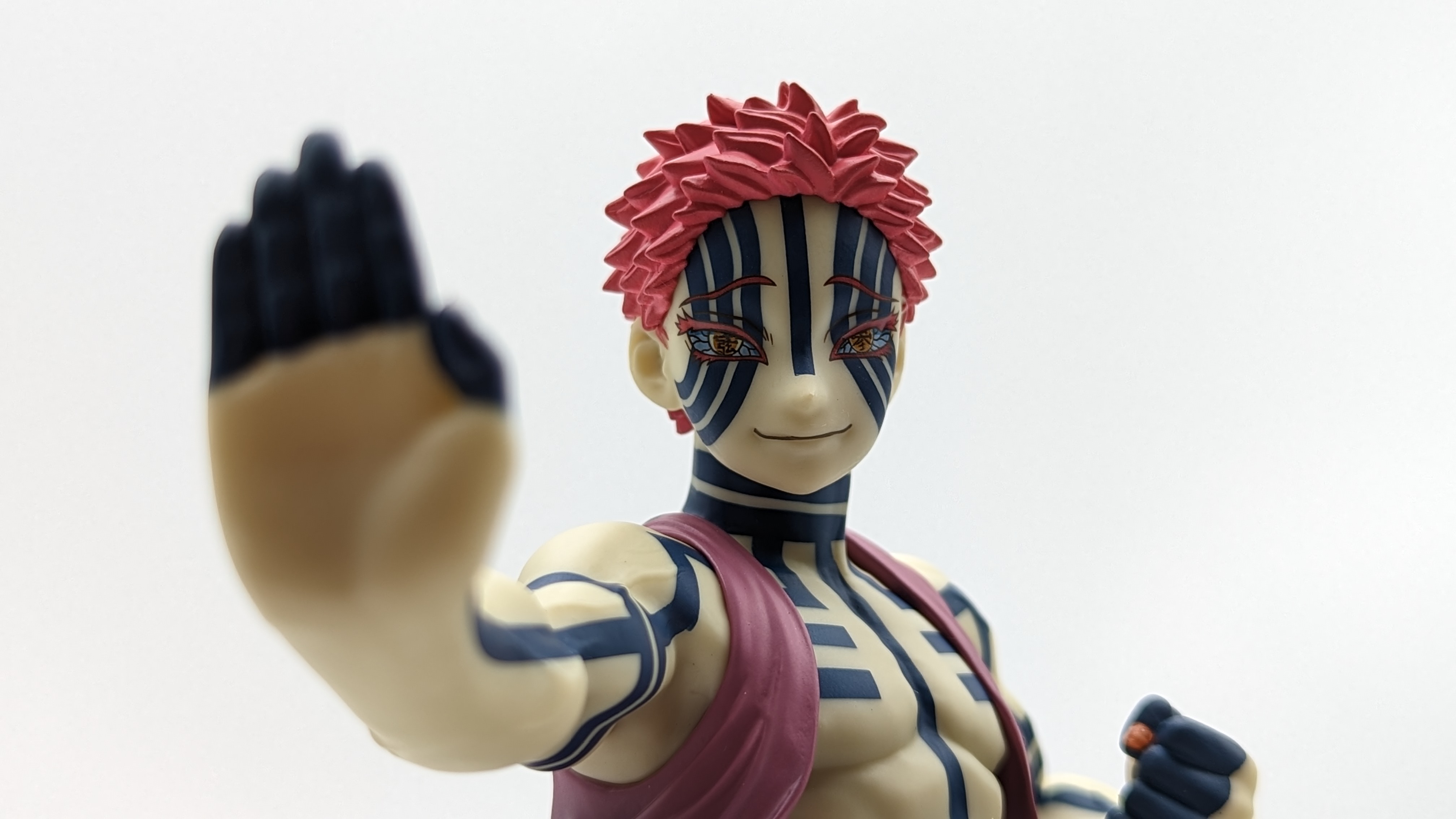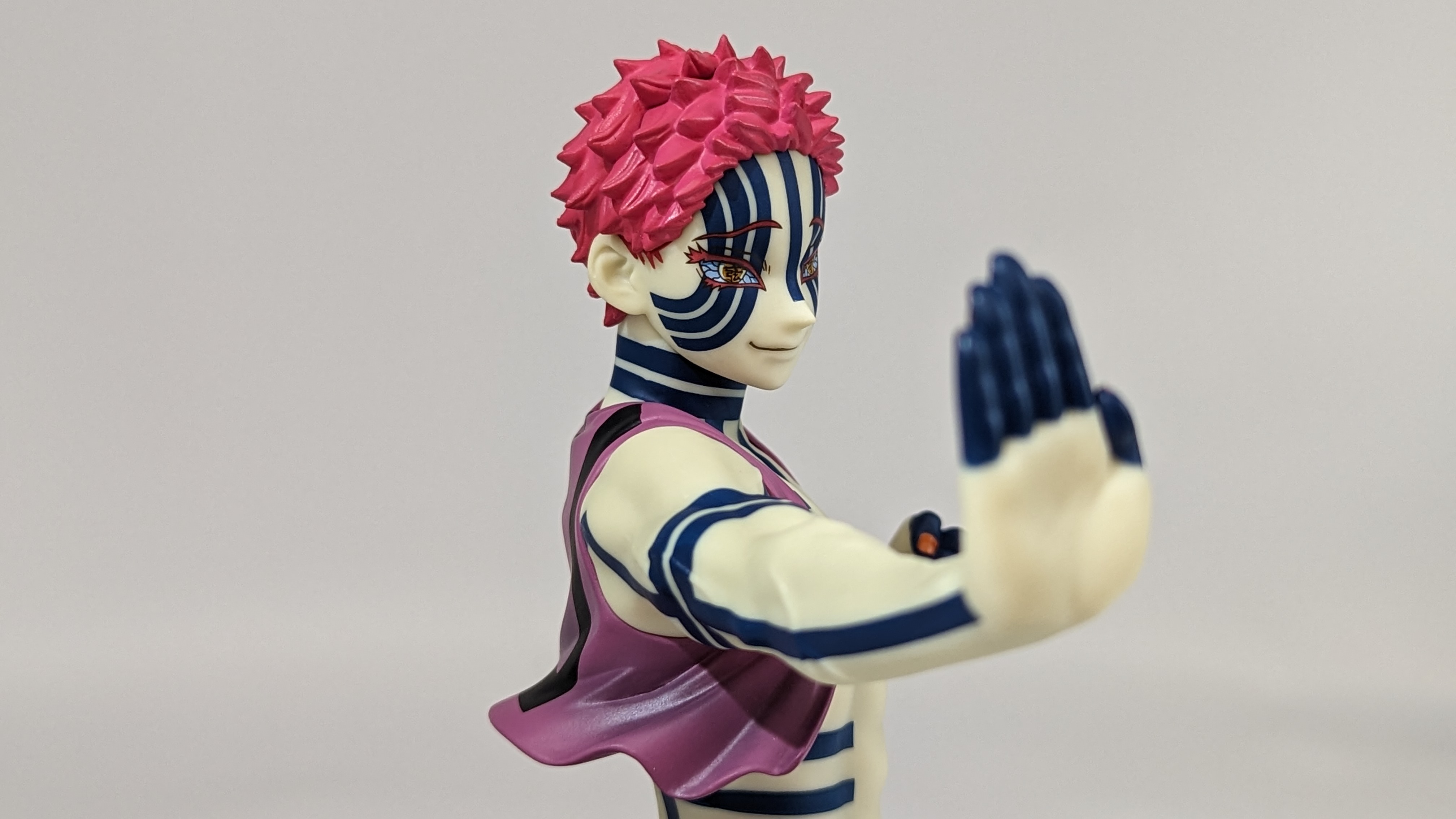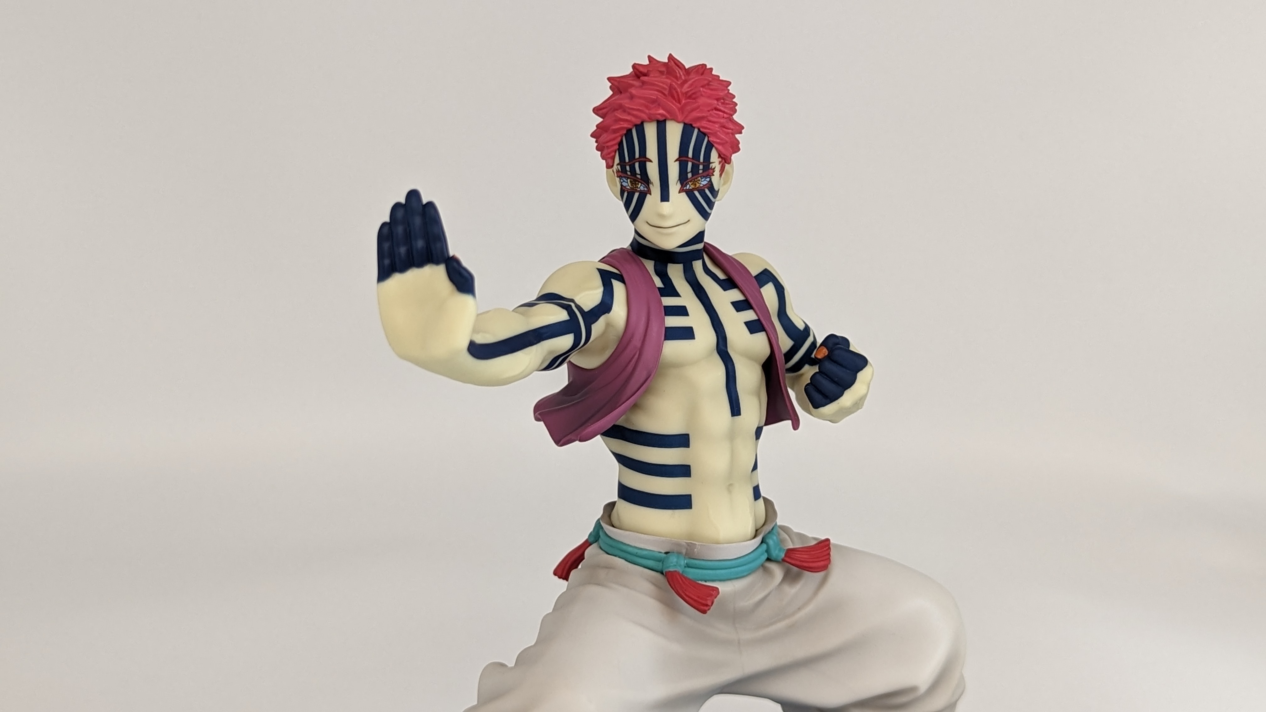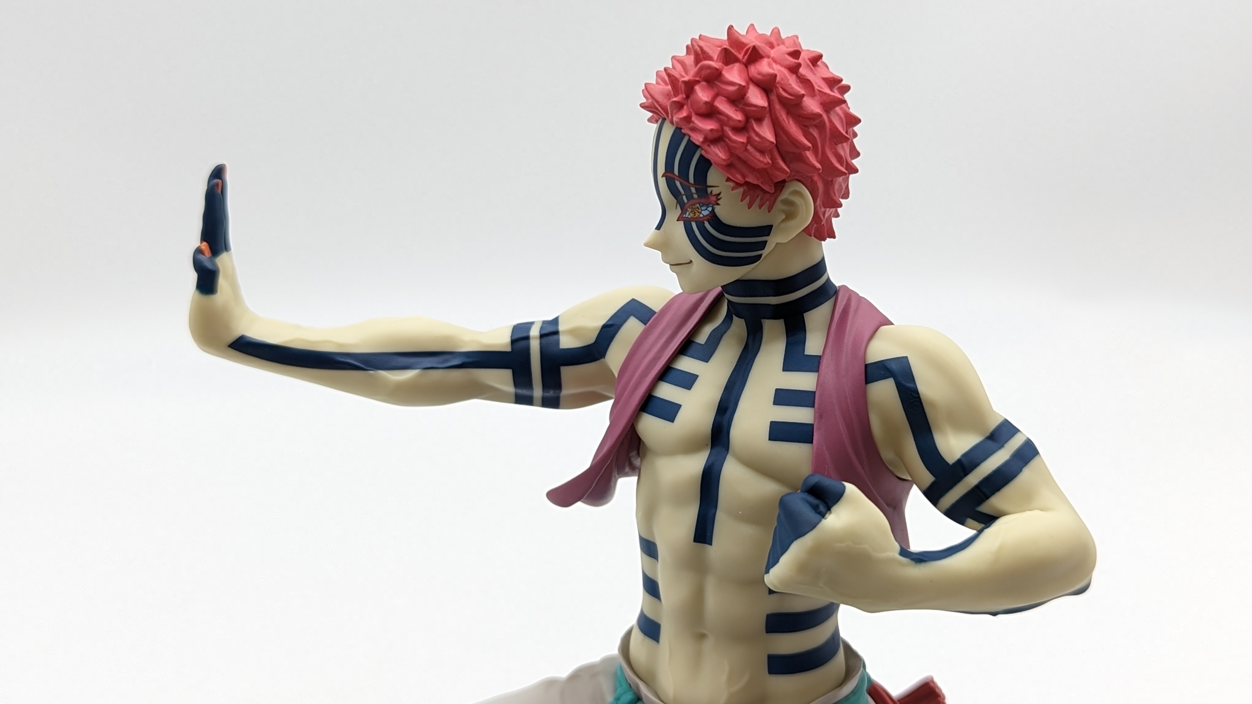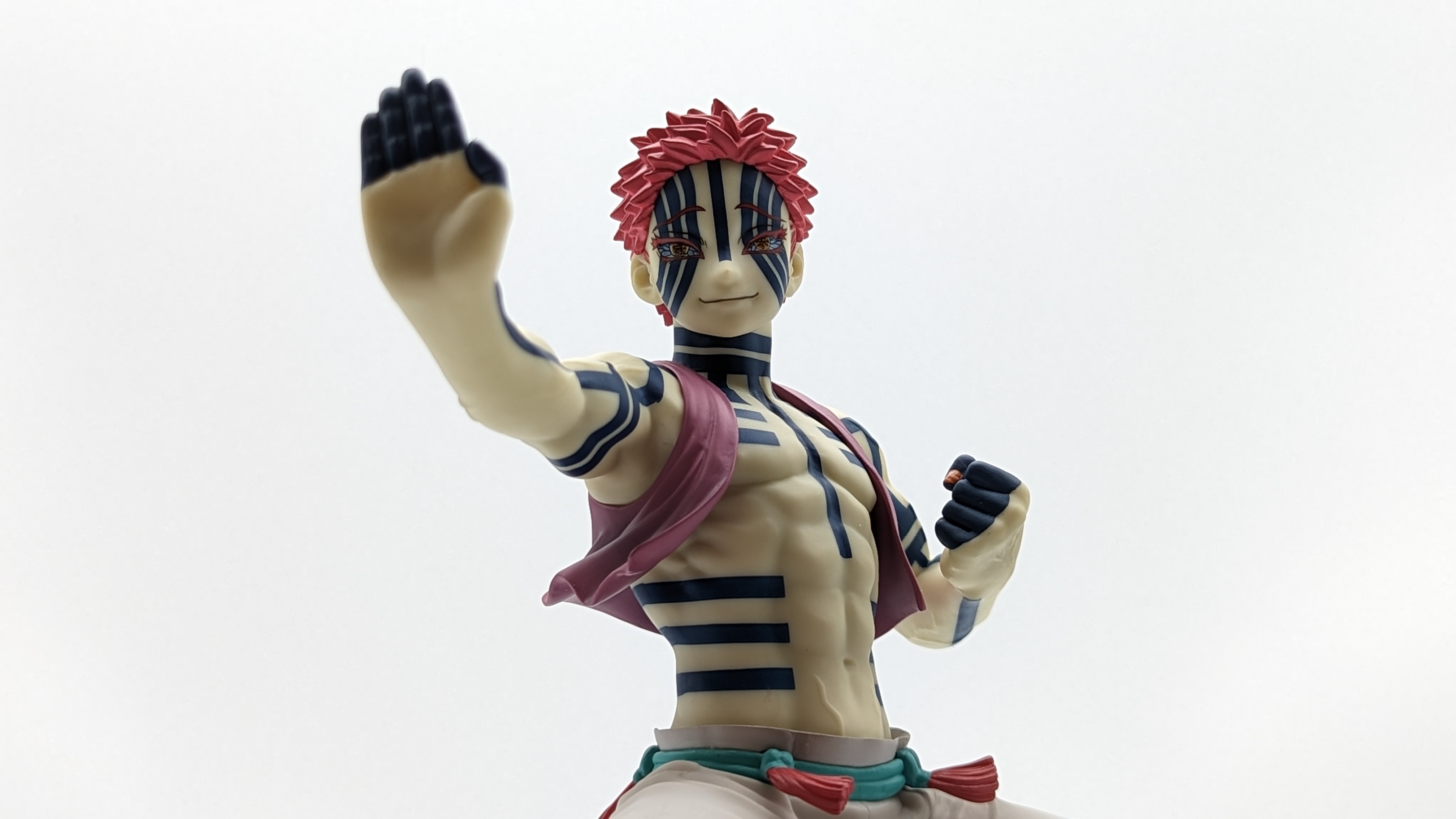 When it comes to anime figure collecting, you always have to ask yourself what you actually want. In my case, I value sculpt and paint accuracy, clean make and a pose that is representative of the character, ideally from an iconic moment. In this case, this figure satisfies all that. The face IS Akaza. His hair sculpt looks great. The veins in his body really brings out what makes him a “demon.” Even the subtle way the feet were sculpted to look real makes me excited about this figure. Everything you can really ask for Akaza and this figure is blown out of the waters. Maybe you can make some complaints about the blue paint speckles? To the naked eye, you will not be able to see it unless you really want to go eye-to-eye with Akaza.