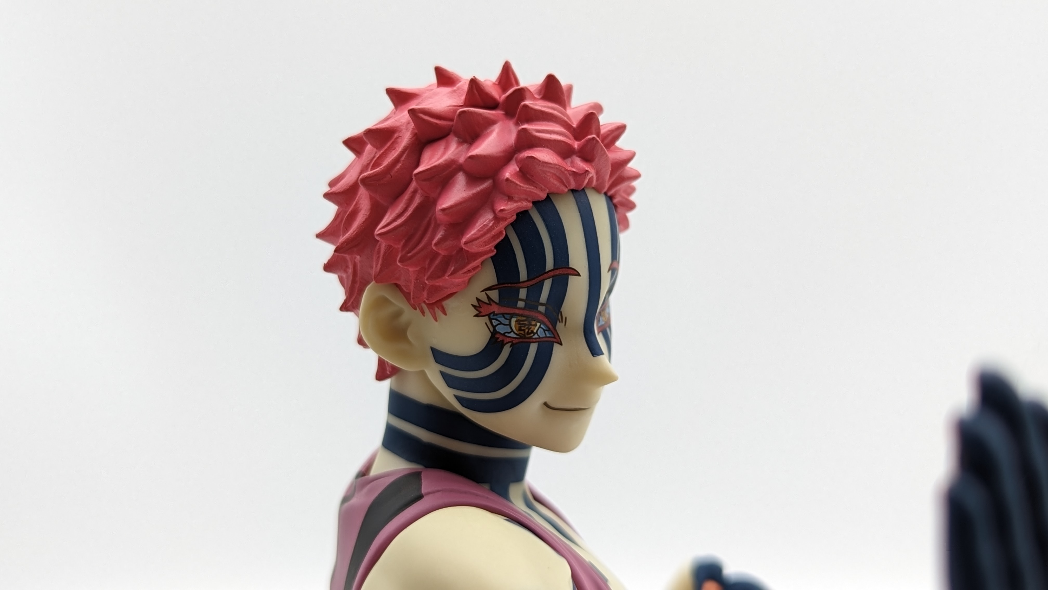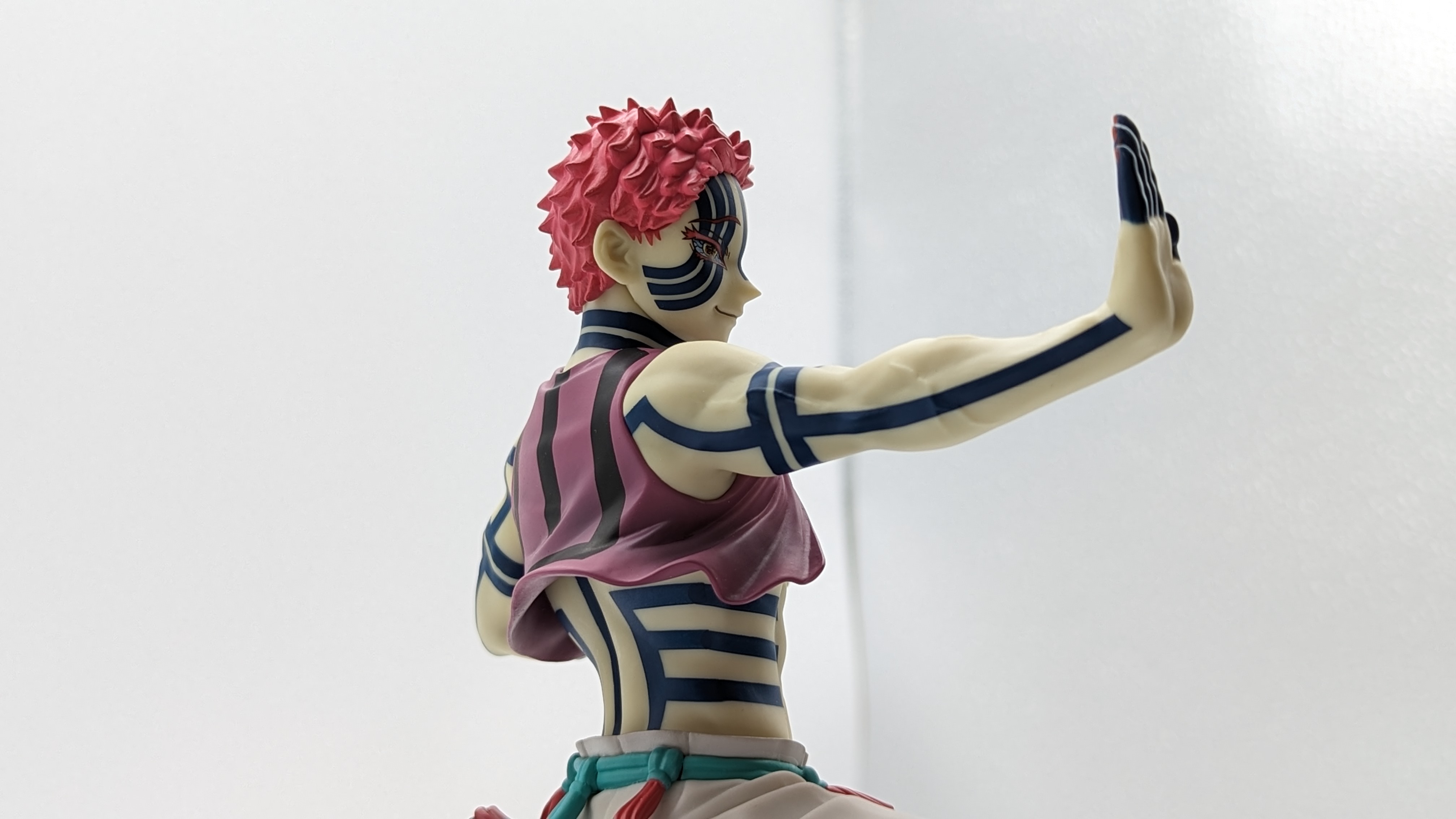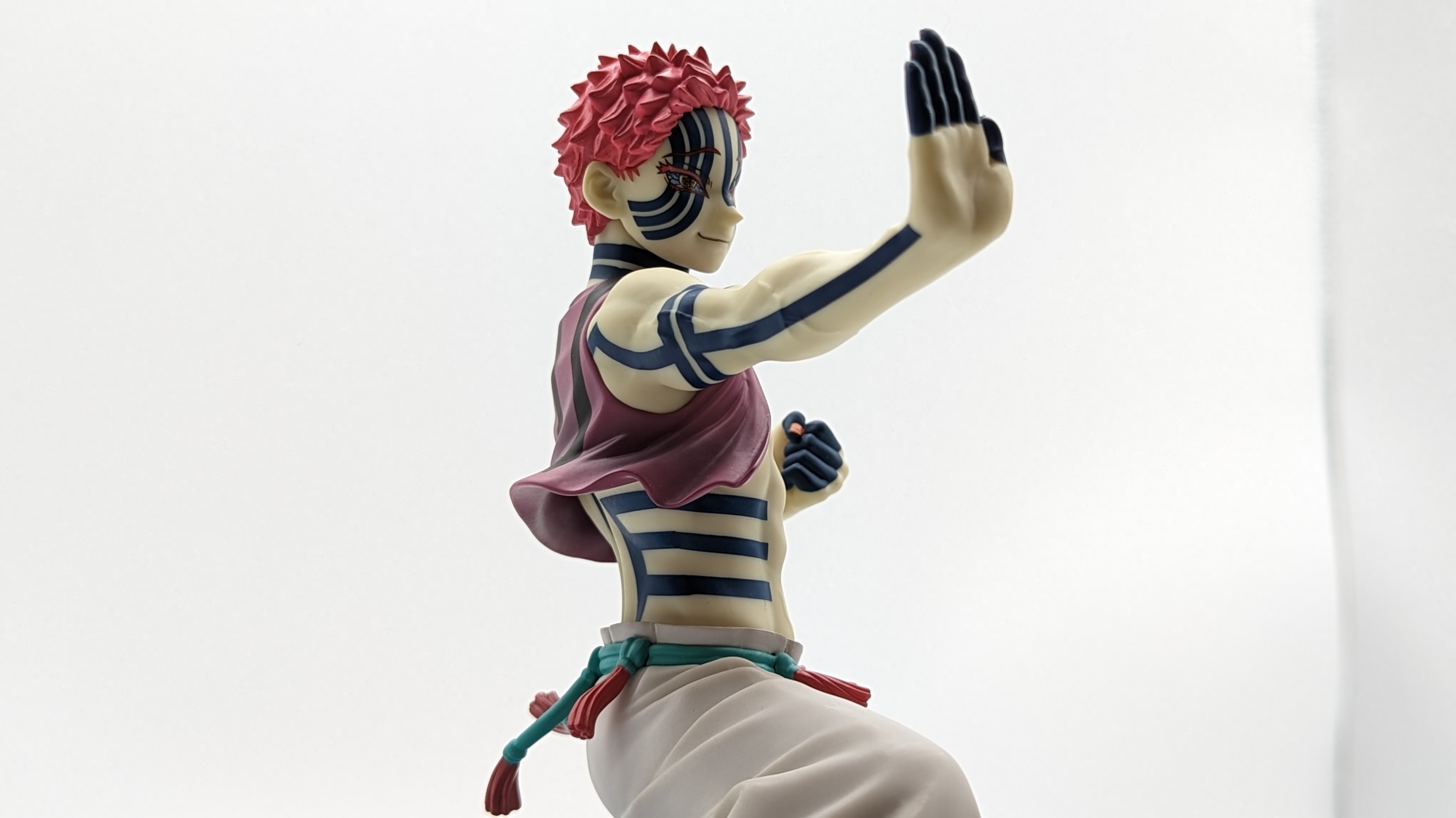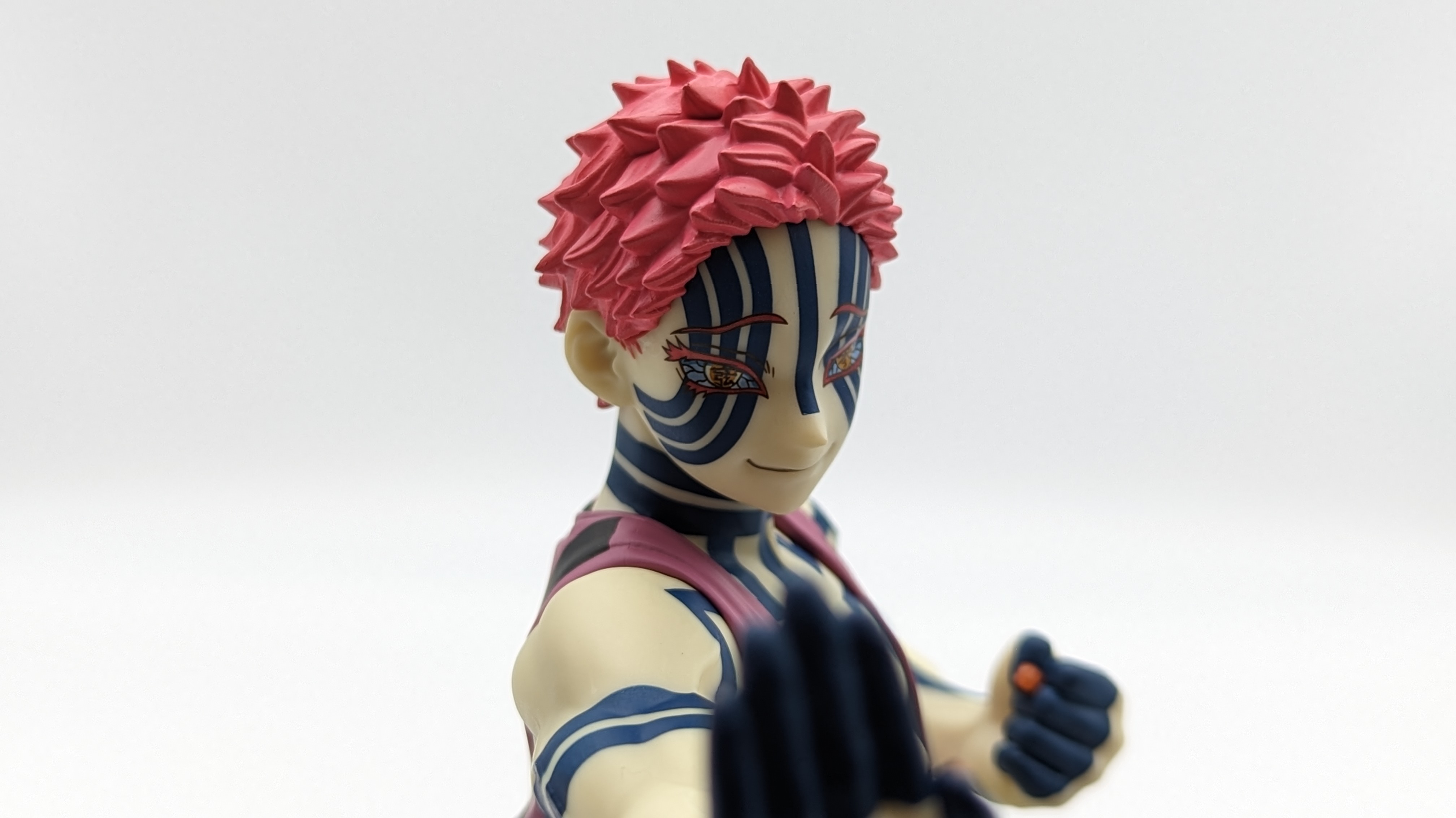 When it comes to anime figure collecting, you always have to ask yourself what you actually want. In my case, I value sculpt and paint accuracy, clean make and a pose that is representative of the character, ideally from an iconic moment. In this case, this figure satisfies all that. The face IS Akaza. His hair sculpt looks great. The veins in his body really brings out what makes him a “demon.” Even the subtle way the feet were sculpted to look real makes me excited about this figure. Everything you can really ask for Akaza and this figure is blown out of the waters. Maybe you can make some complaints about the blue paint speckles? To the naked eye, you will not be able to see it unless you really want to go eye-to-eye with Akaza.