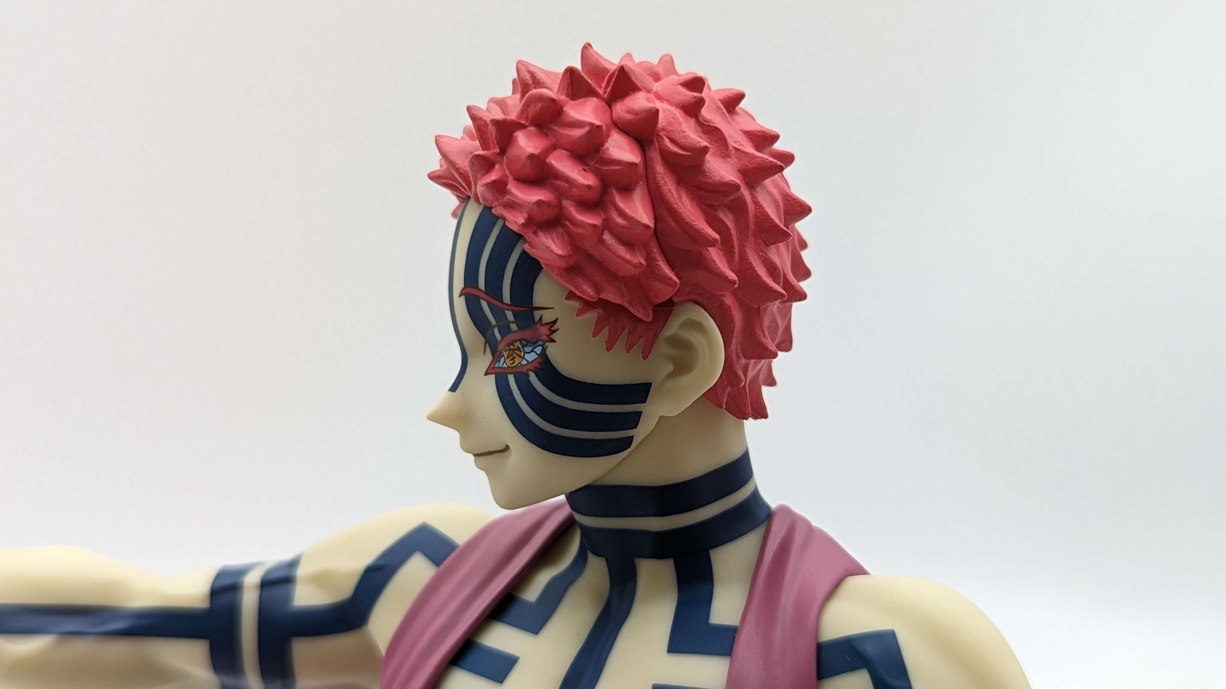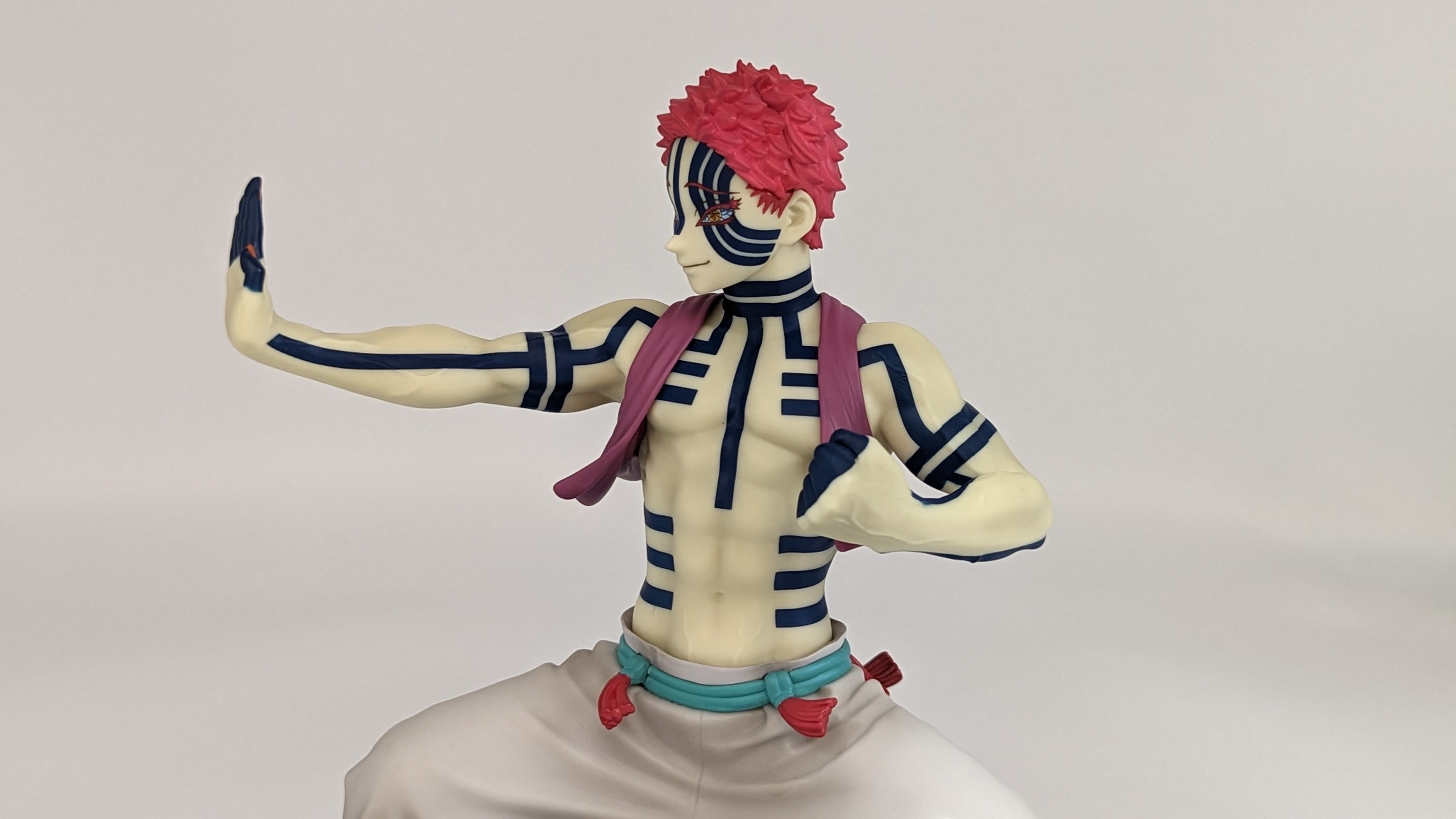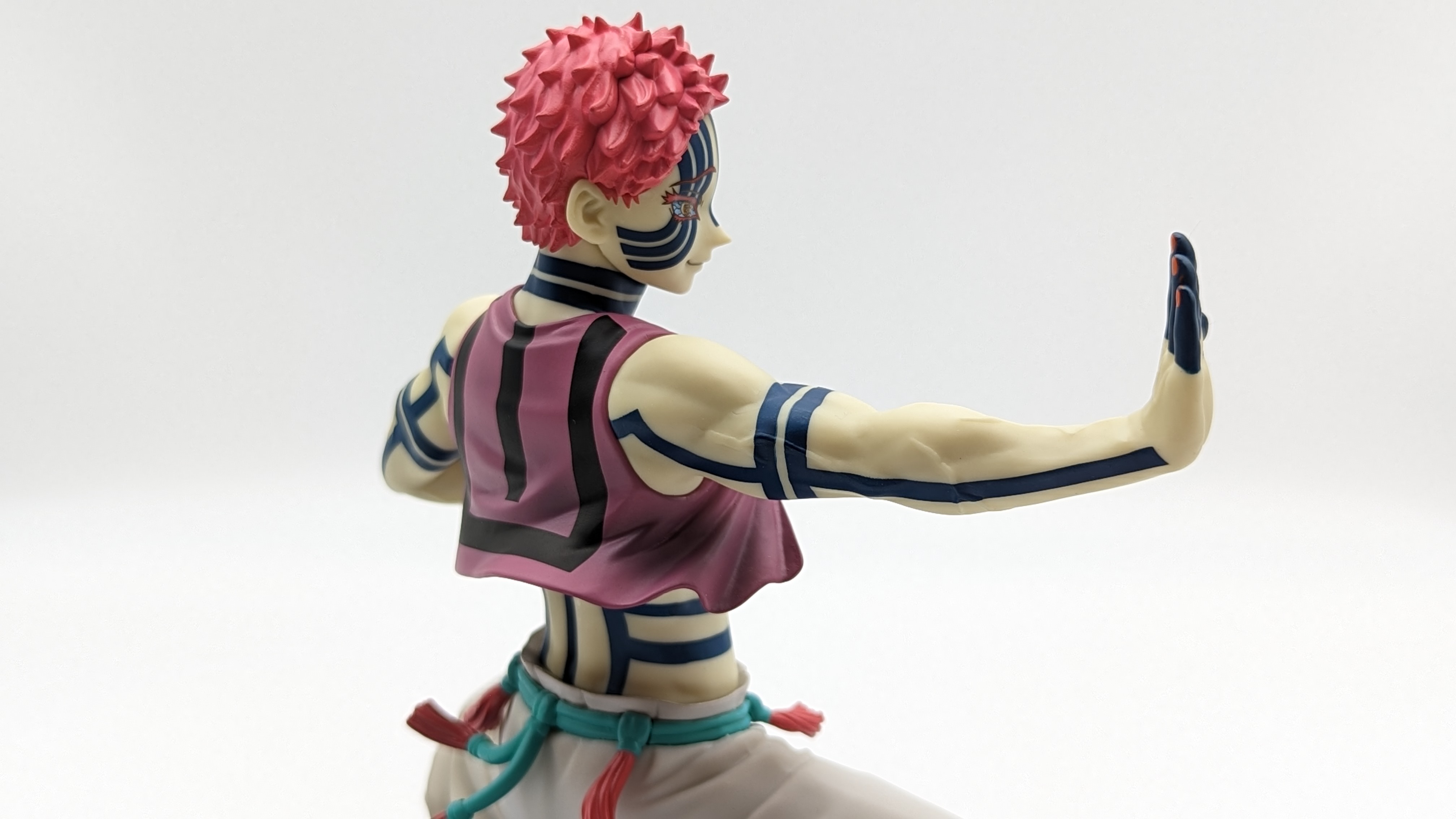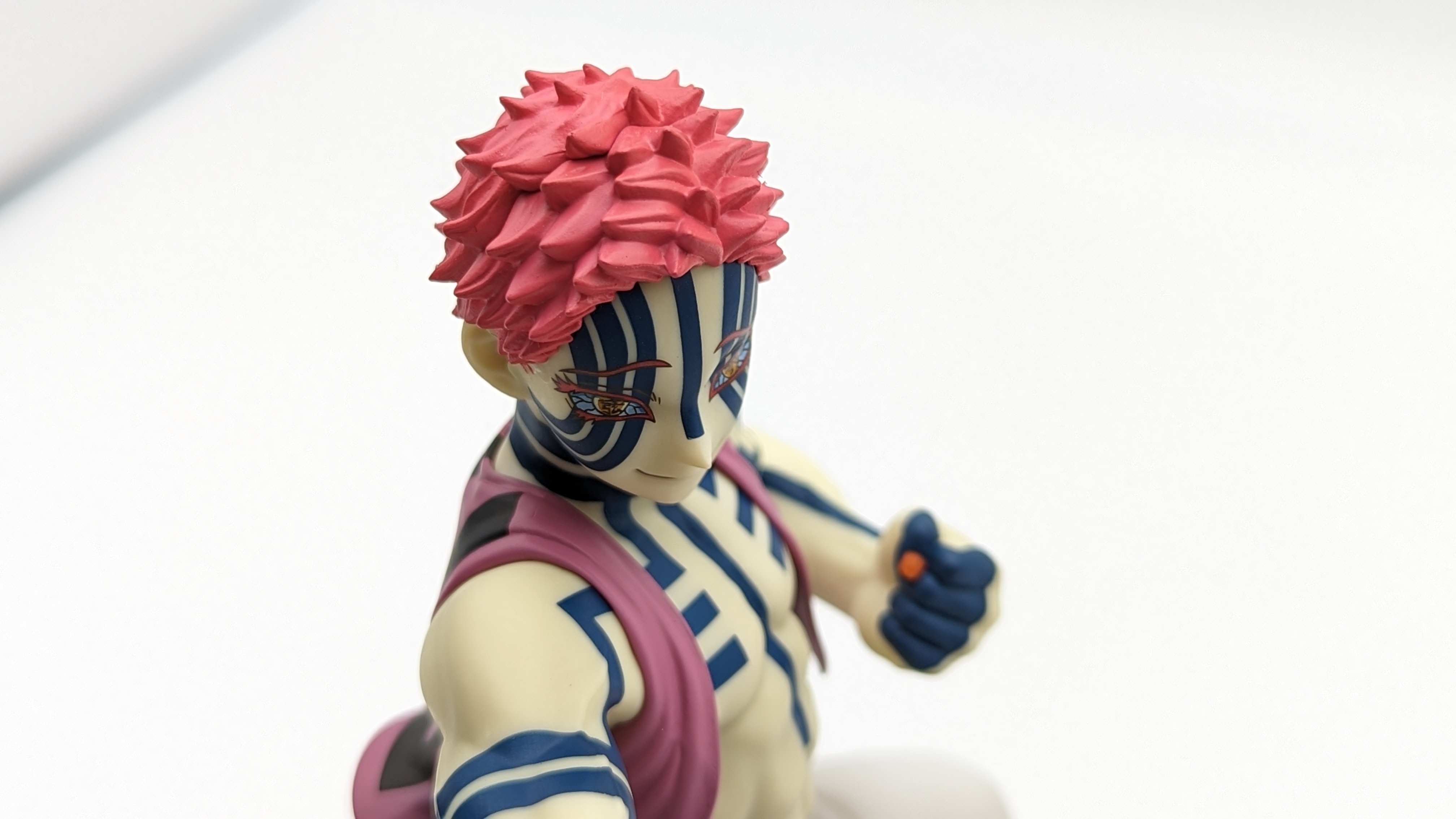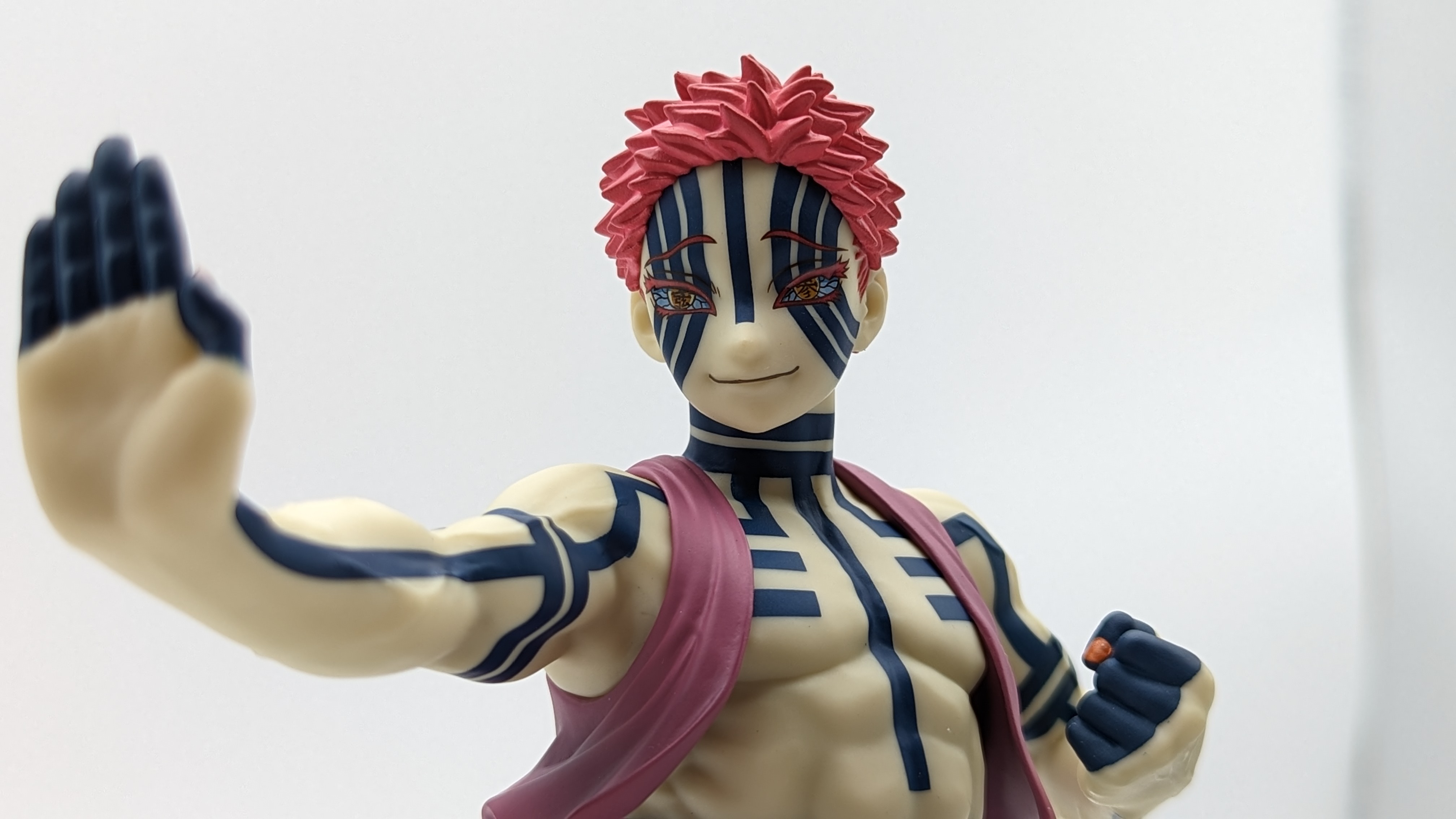 When it comes to anime figure collecting, you always have to ask yourself what you actually want. In my case, I value sculpt and paint accuracy, clean make and a pose that is representative of the character, ideally from an iconic moment. In this case, this figure satisfies all that. The face IS Akaza. His hair sculpt looks great. The veins in his body really brings out what makes him a “demon.” Even the subtle way the feet were sculpted to look real makes me excited about this figure. Everything you can really ask for Akaza and this figure is blown out of the waters. Maybe you can make some complaints about the blue paint speckles? To the naked eye, you will not be able to see it unless you really want to go eye-to-eye with Akaza.