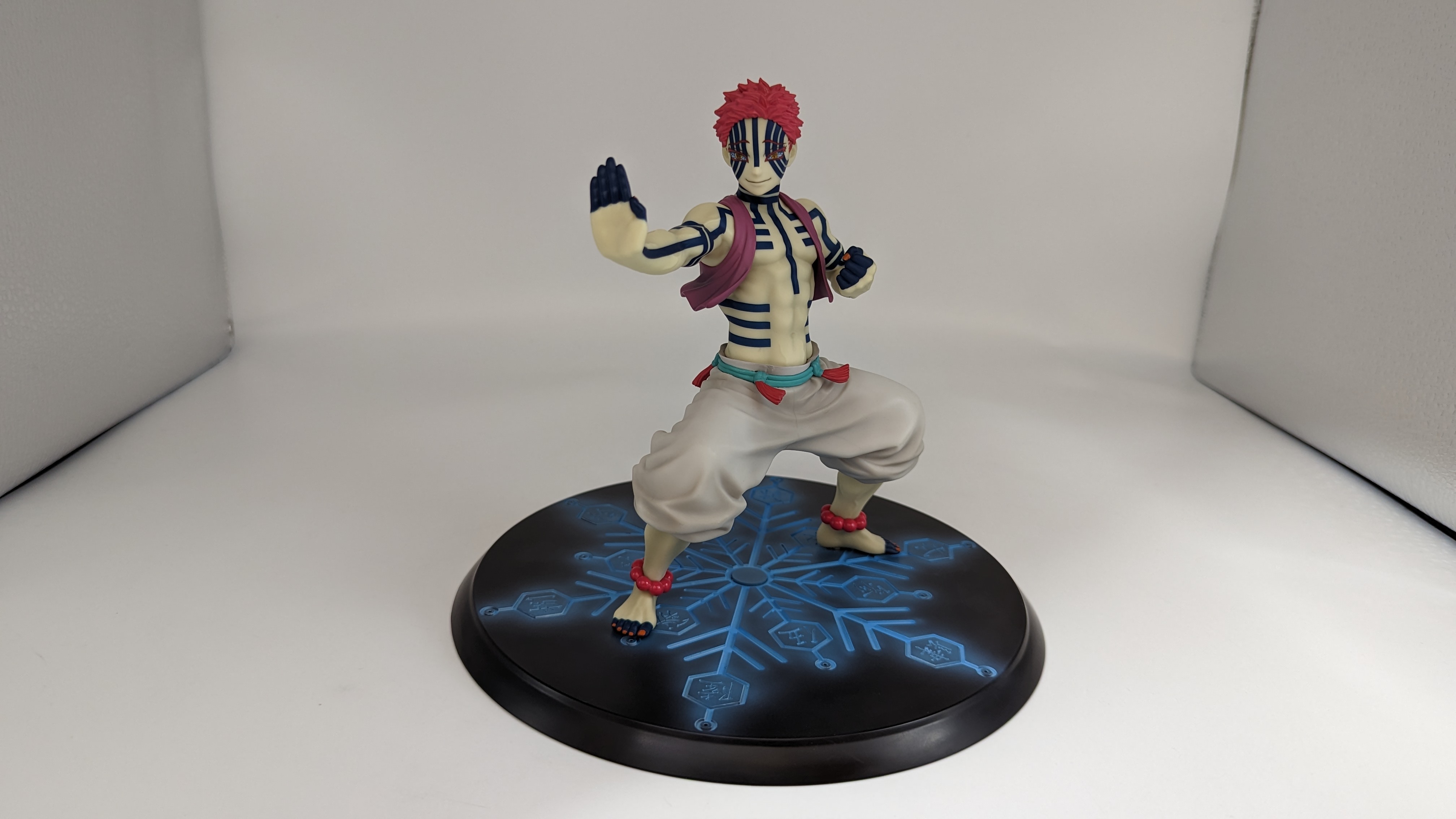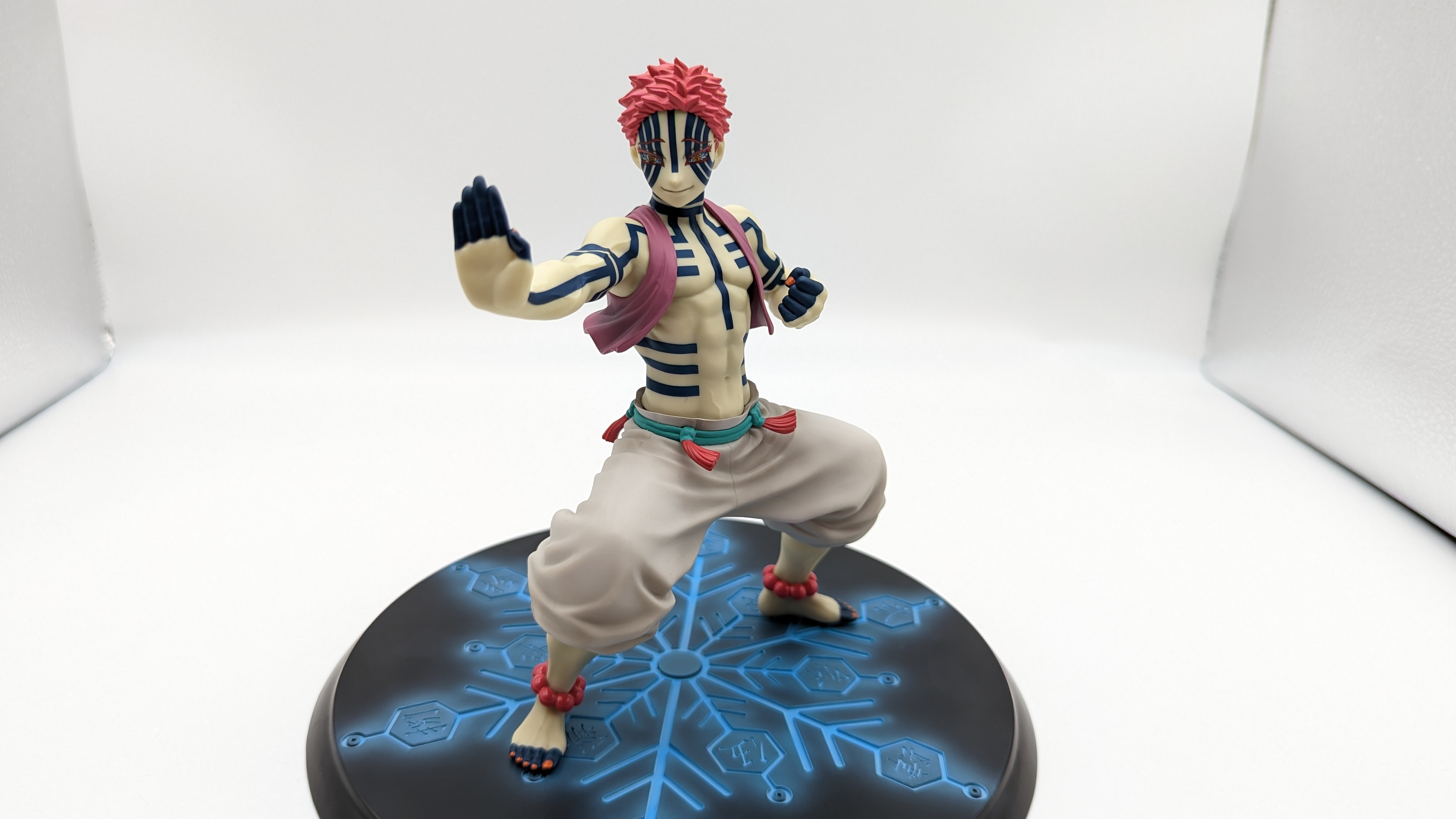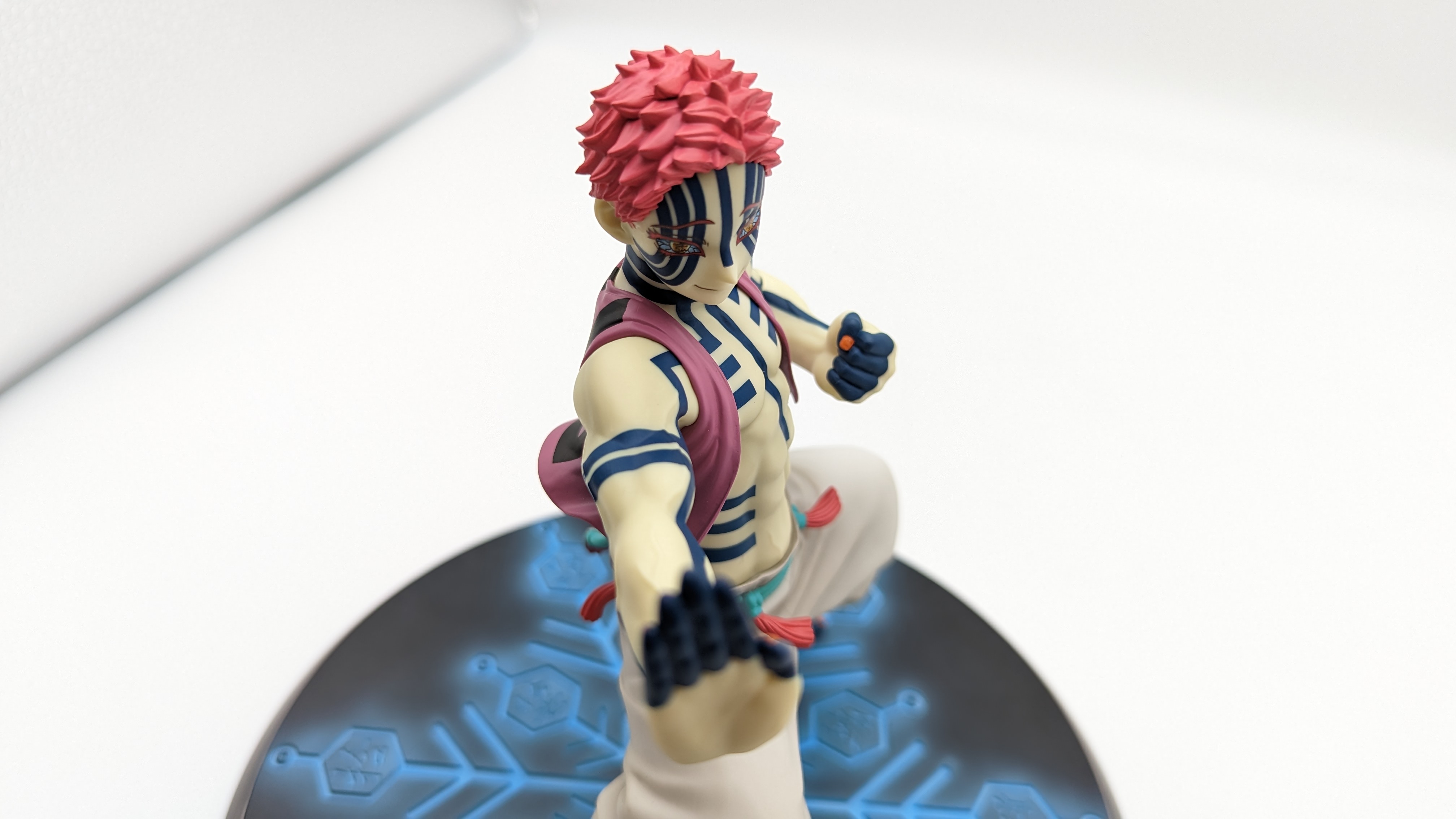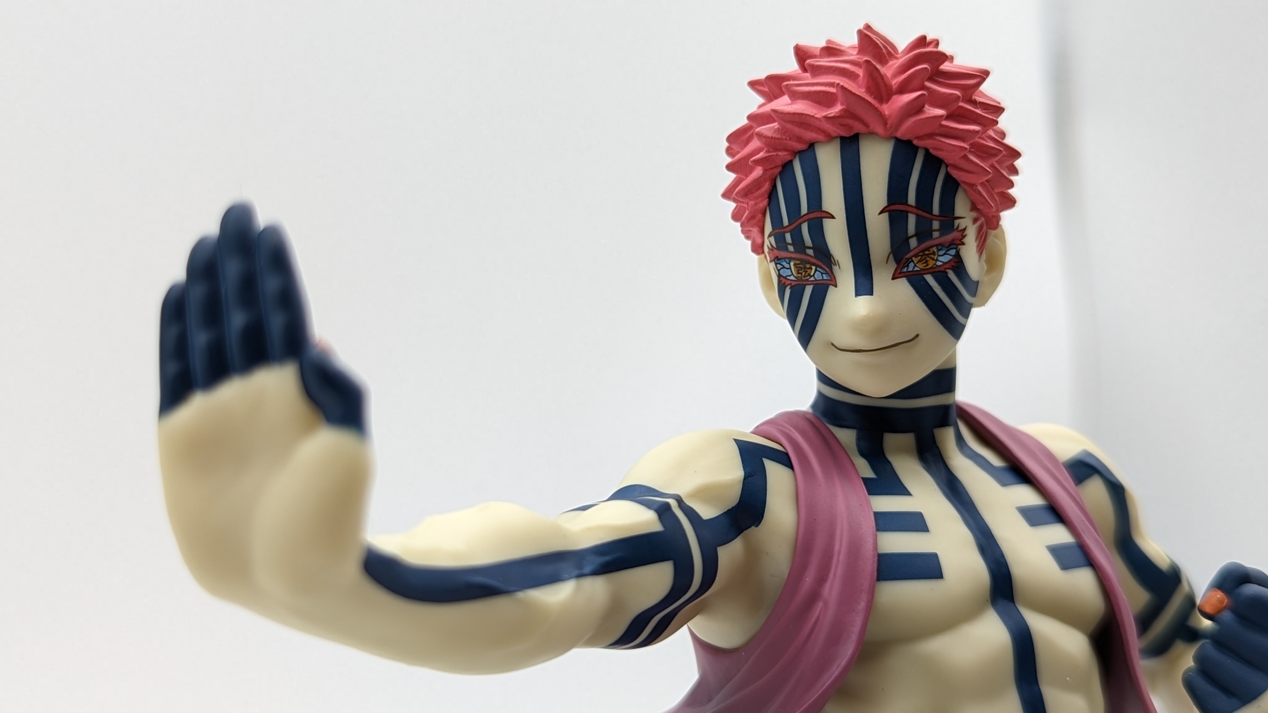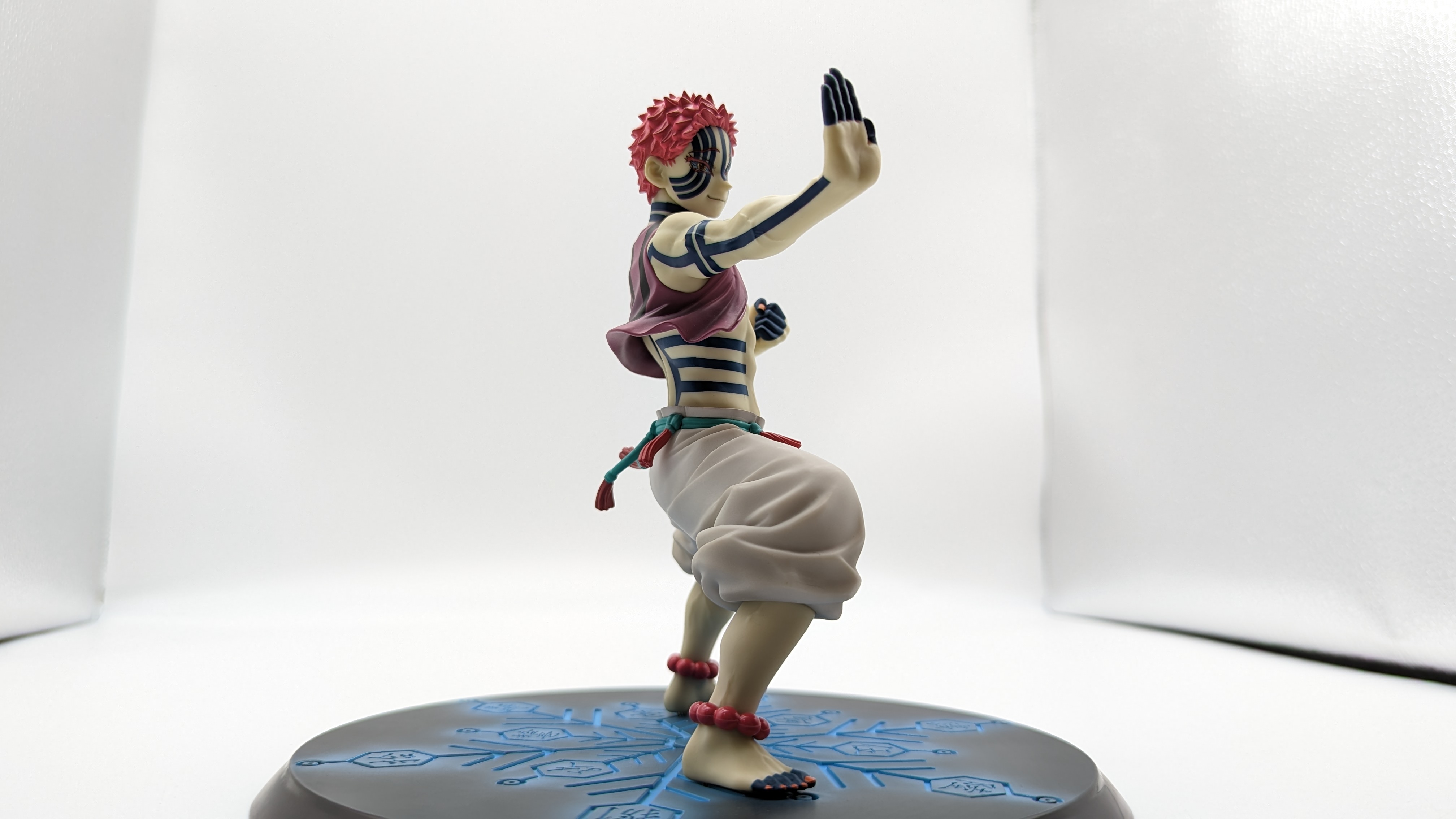 When it comes to anime figure collecting, you always have to ask yourself what you actually want. In my case, I value sculpt and paint accuracy, clean make and a pose that is representative of the character, ideally from an iconic moment. In this case, this figure satisfies all that. The face IS Akaza. His hair sculpt looks great. The veins in his body really brings out what makes him a “demon.” Even the subtle way the feet were sculpted to look real makes me excited about this figure. Everything you can really ask for Akaza and this figure is blown out of the waters. Maybe you can make some complaints about the blue paint speckles? To the naked eye, you will not be able to see it unless you really want to go eye-to-eye with Akaza.