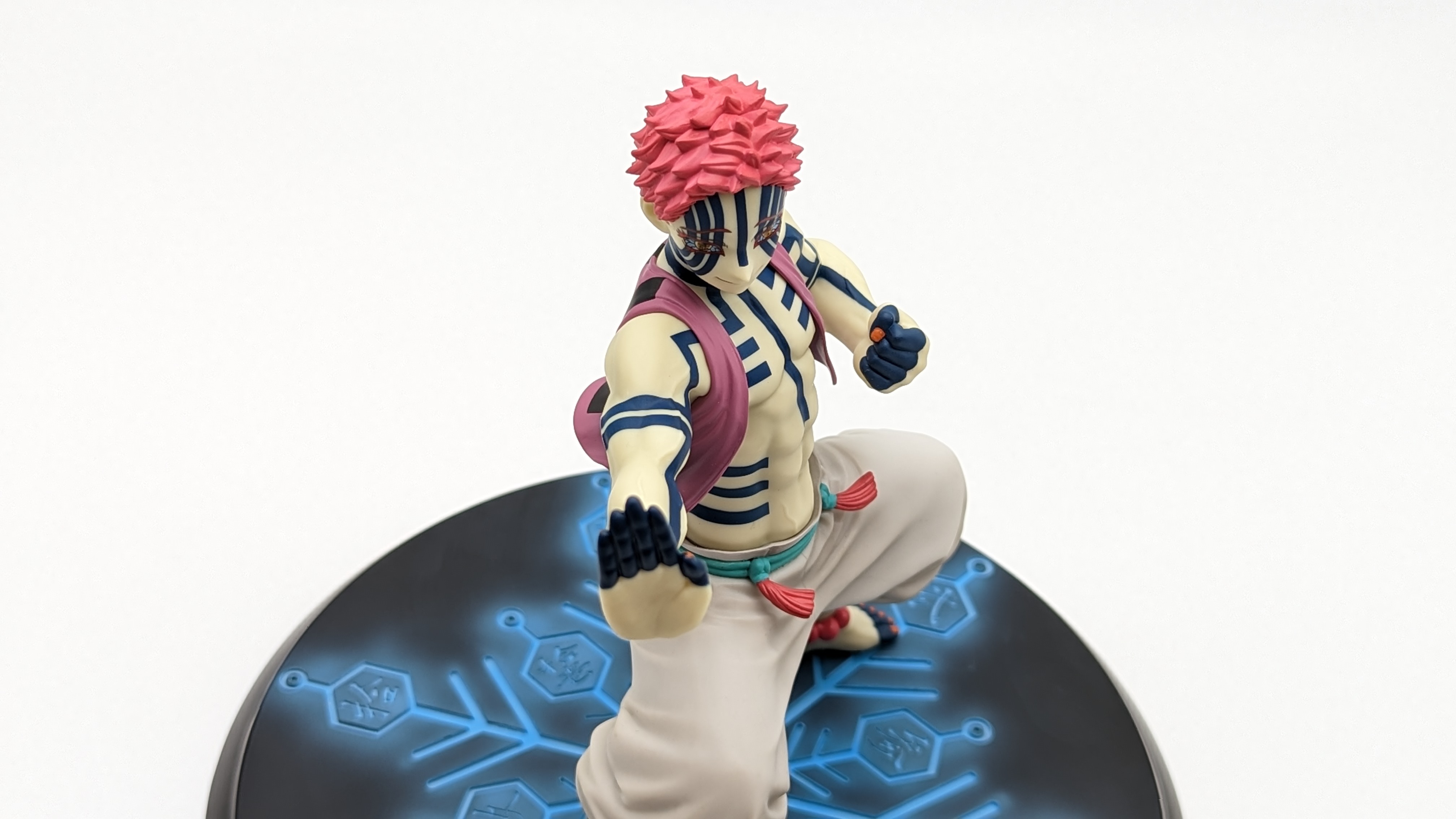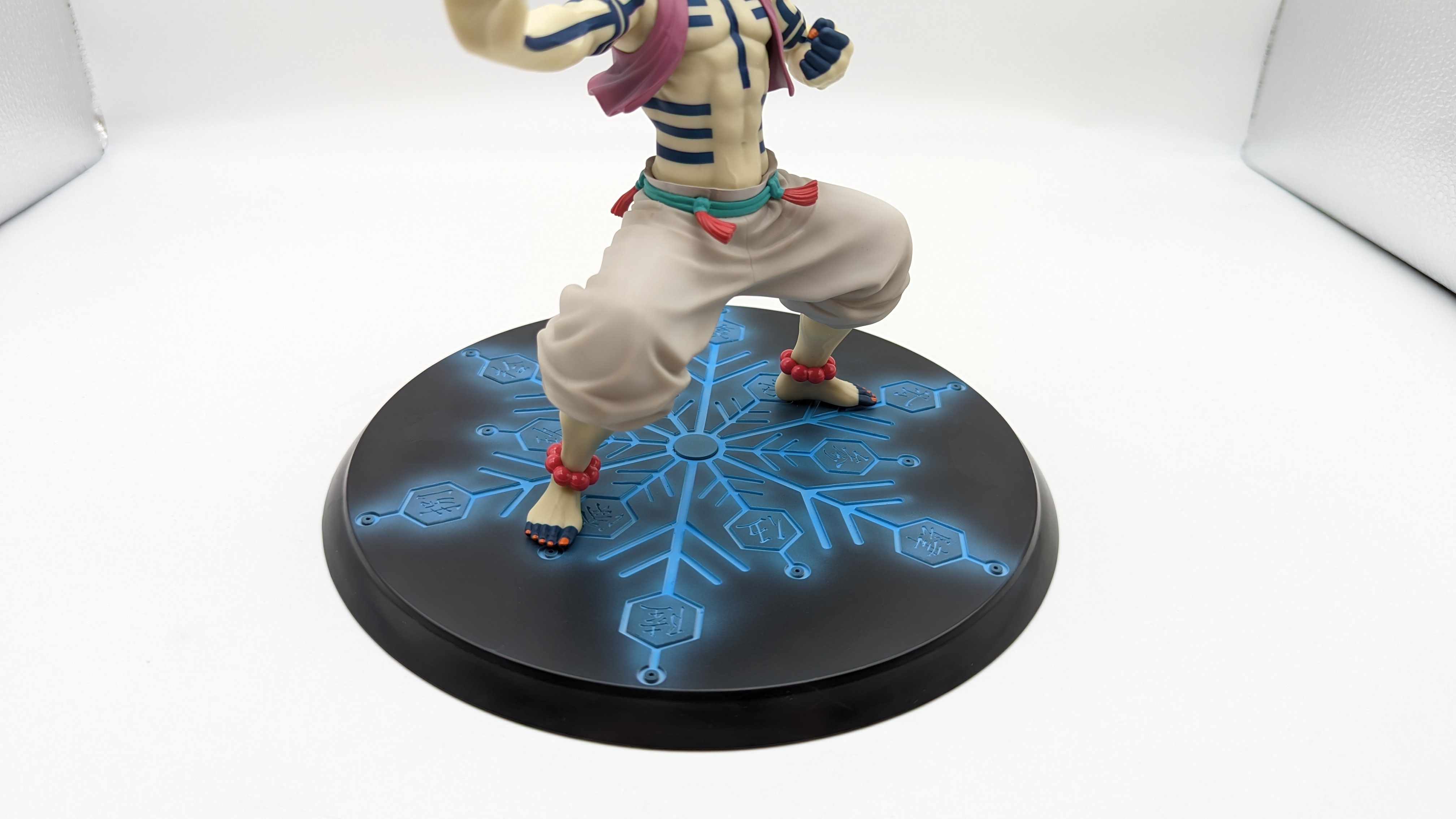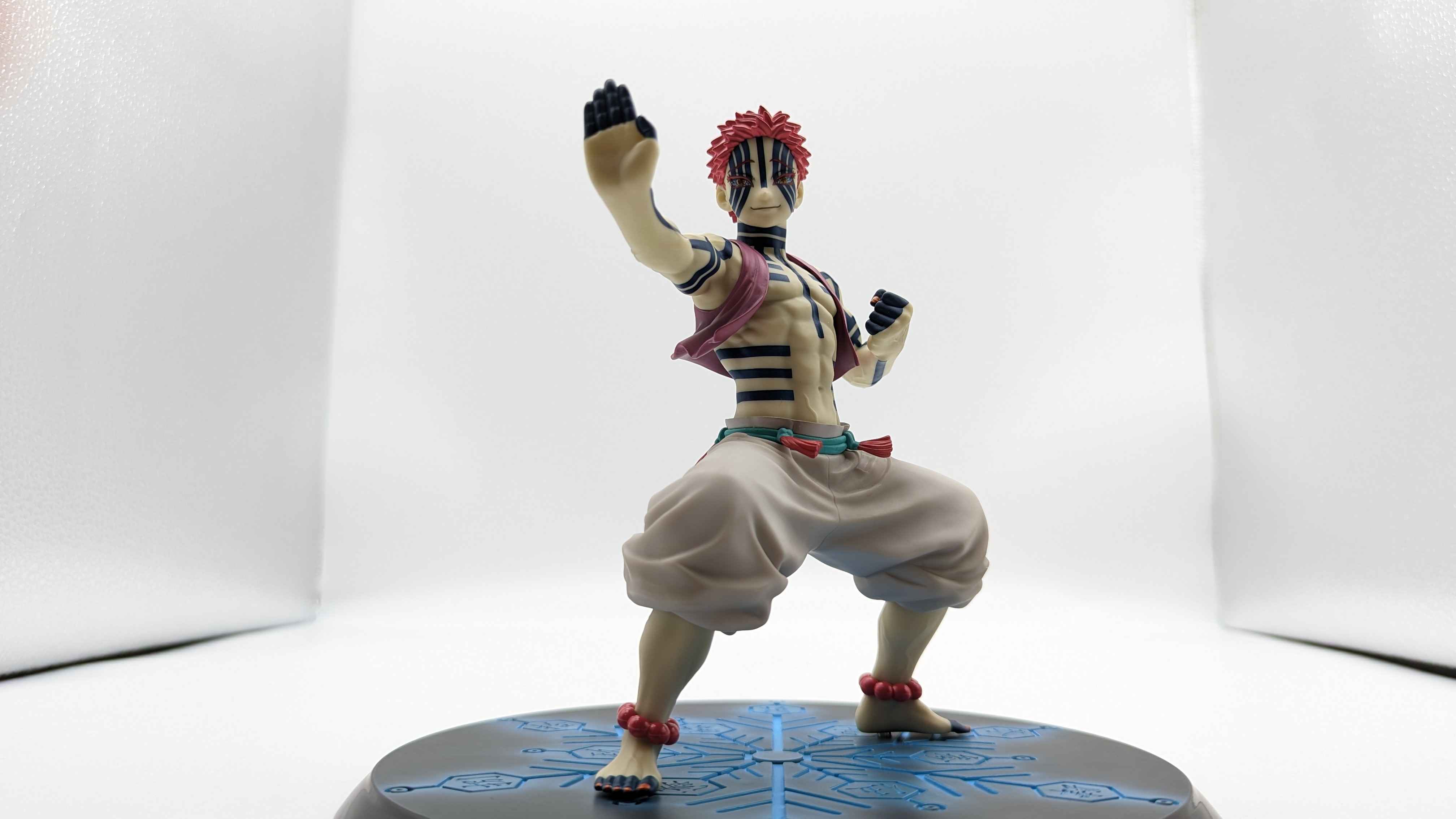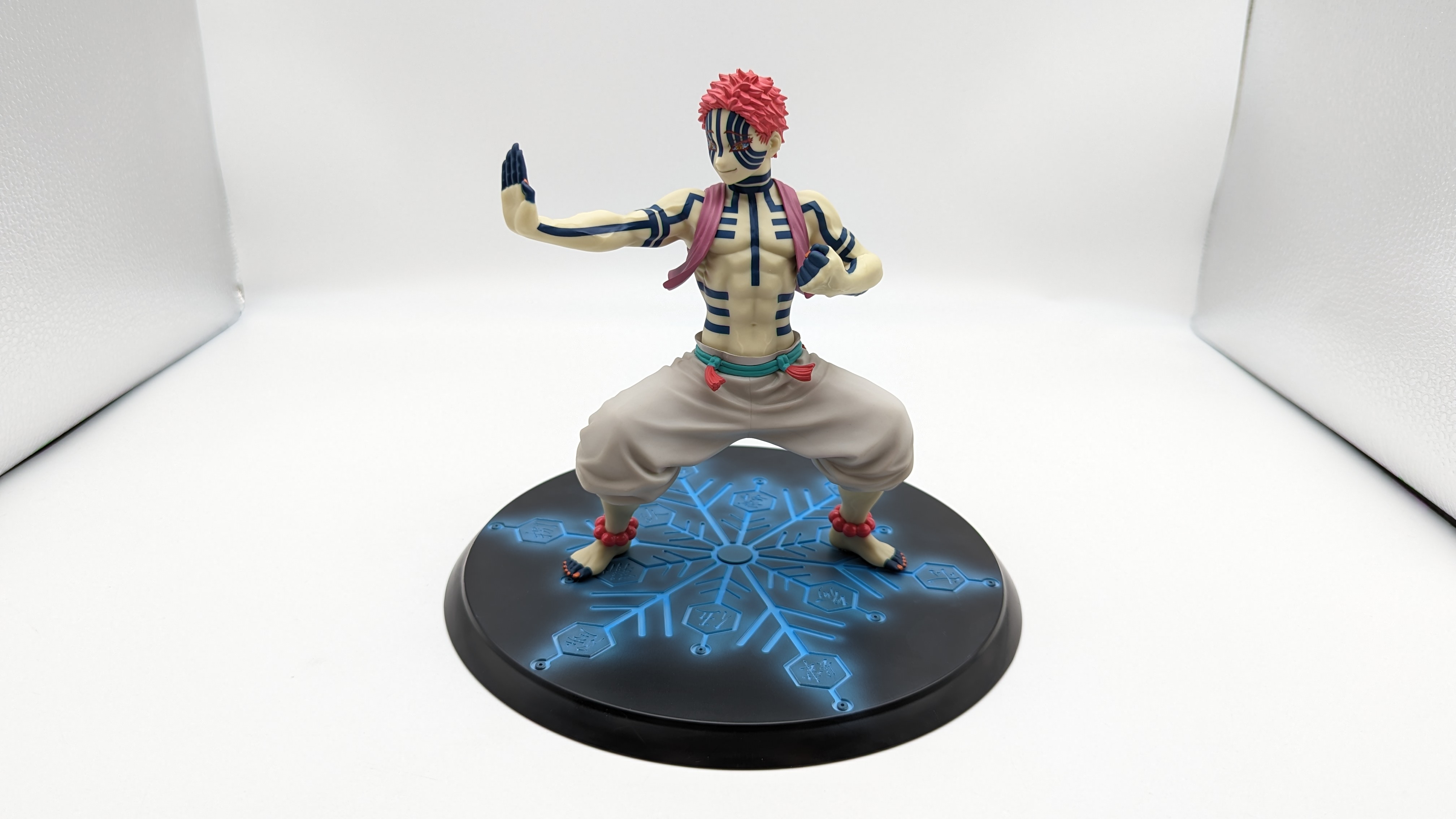 When it comes to anime figure collecting, you always have to ask yourself what you actually want. In my case, I value sculpt and paint accuracy, clean make and a pose that is representative of the character, ideally from an iconic moment. In this case, this figure satisfies all that. The face IS Akaza. His hair sculpt looks great. The veins in his body really brings out what makes him a “demon.” Even the subtle way the feet were sculpted to look real makes me excited about this figure. Everything you can really ask for Akaza and this figure is blown out of the waters. Maybe you can make some complaints about the blue paint speckles? To the naked eye, you will not be able to see it unless you really want to go eye-to-eye with Akaza.