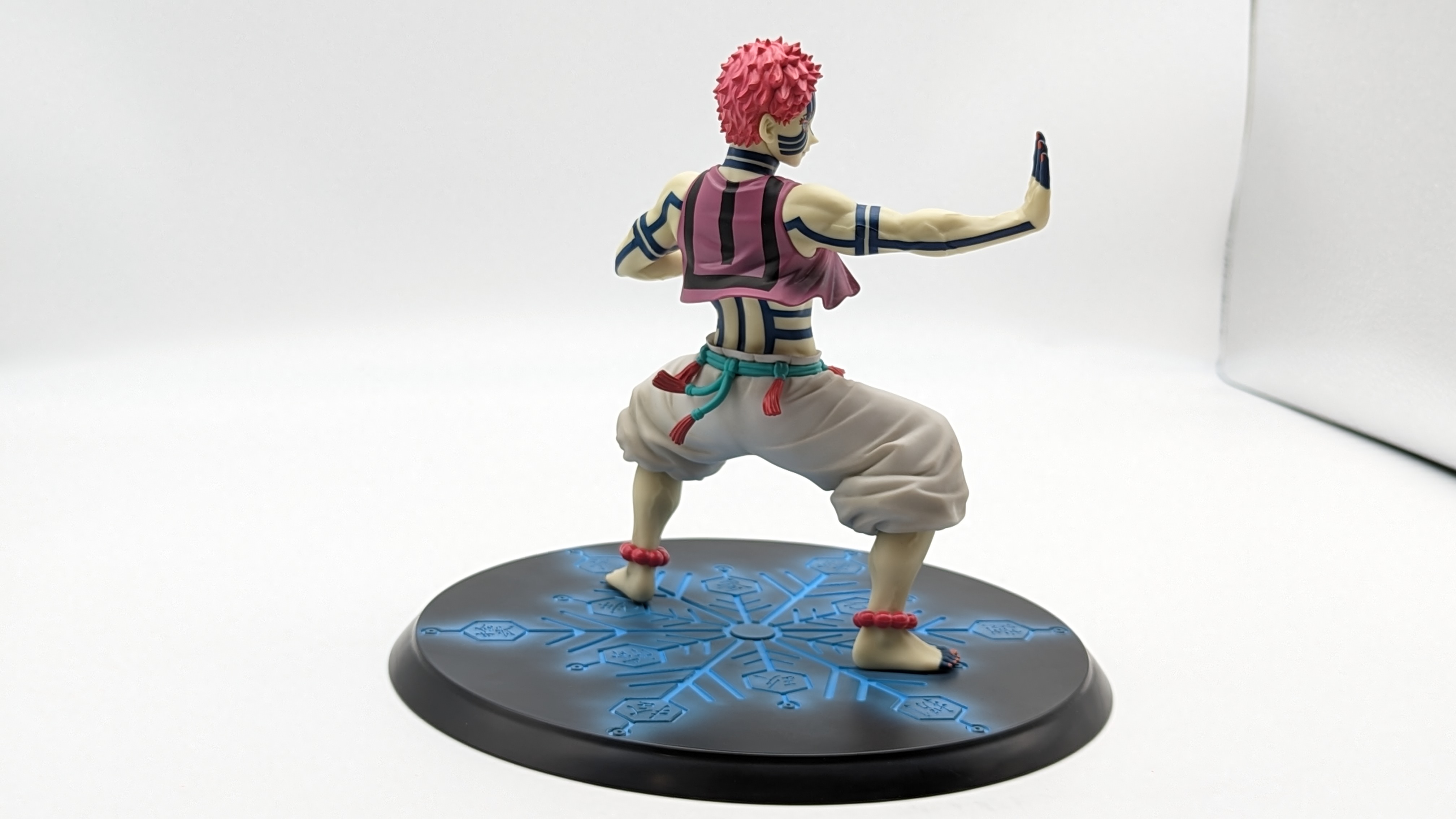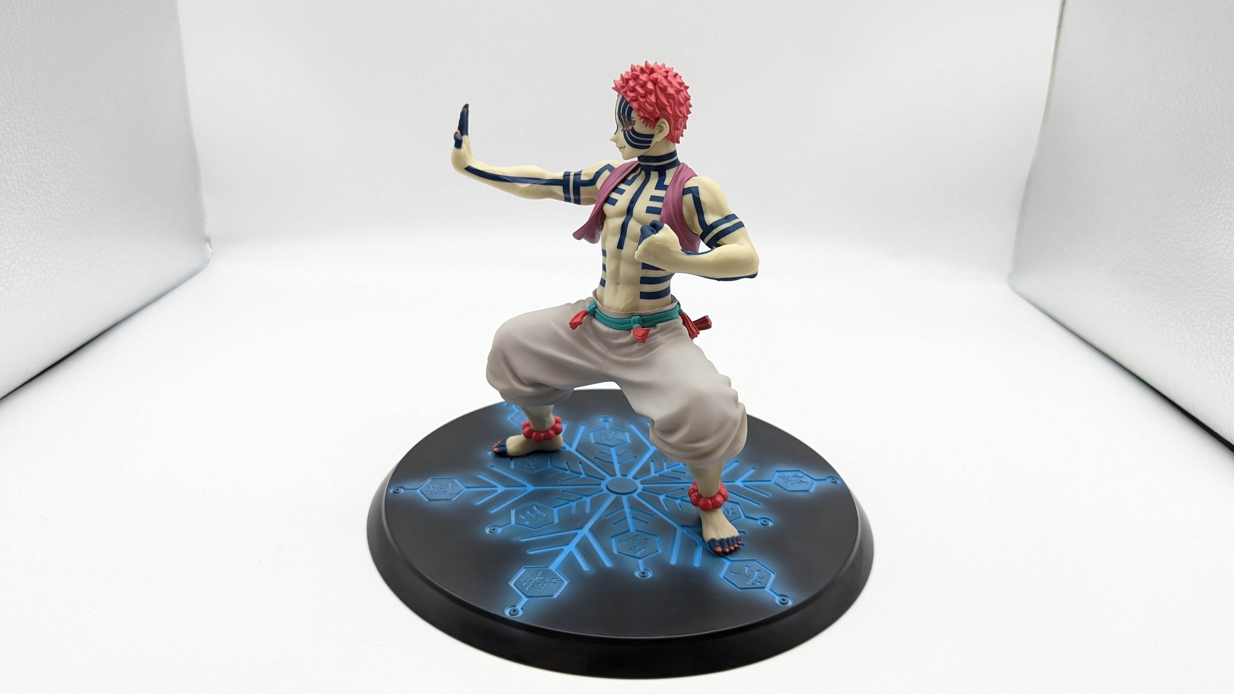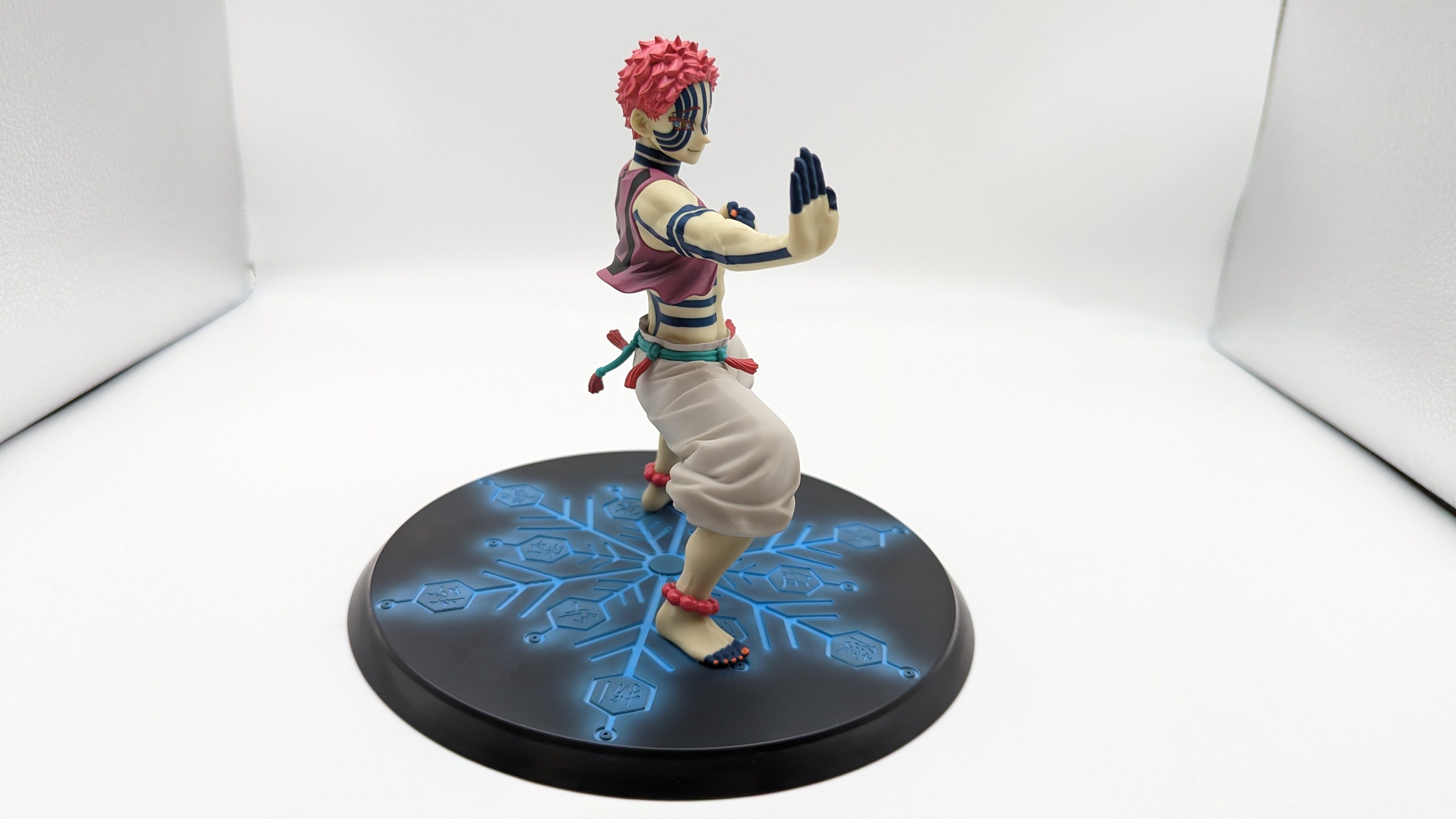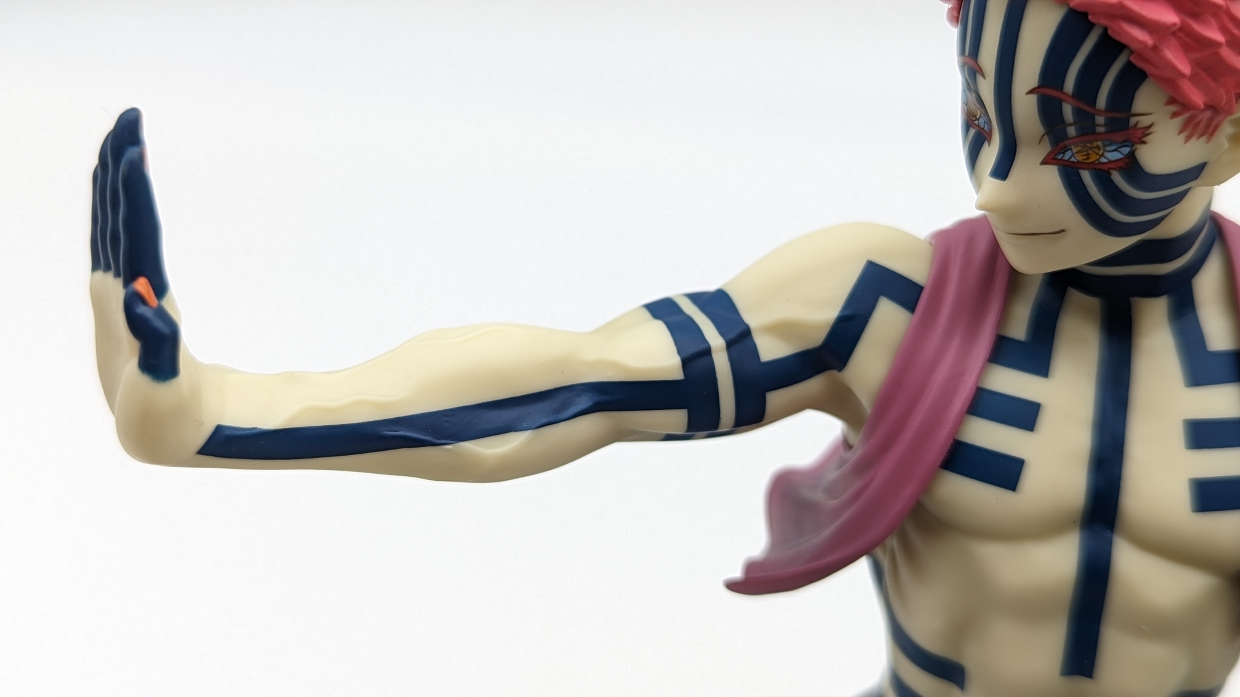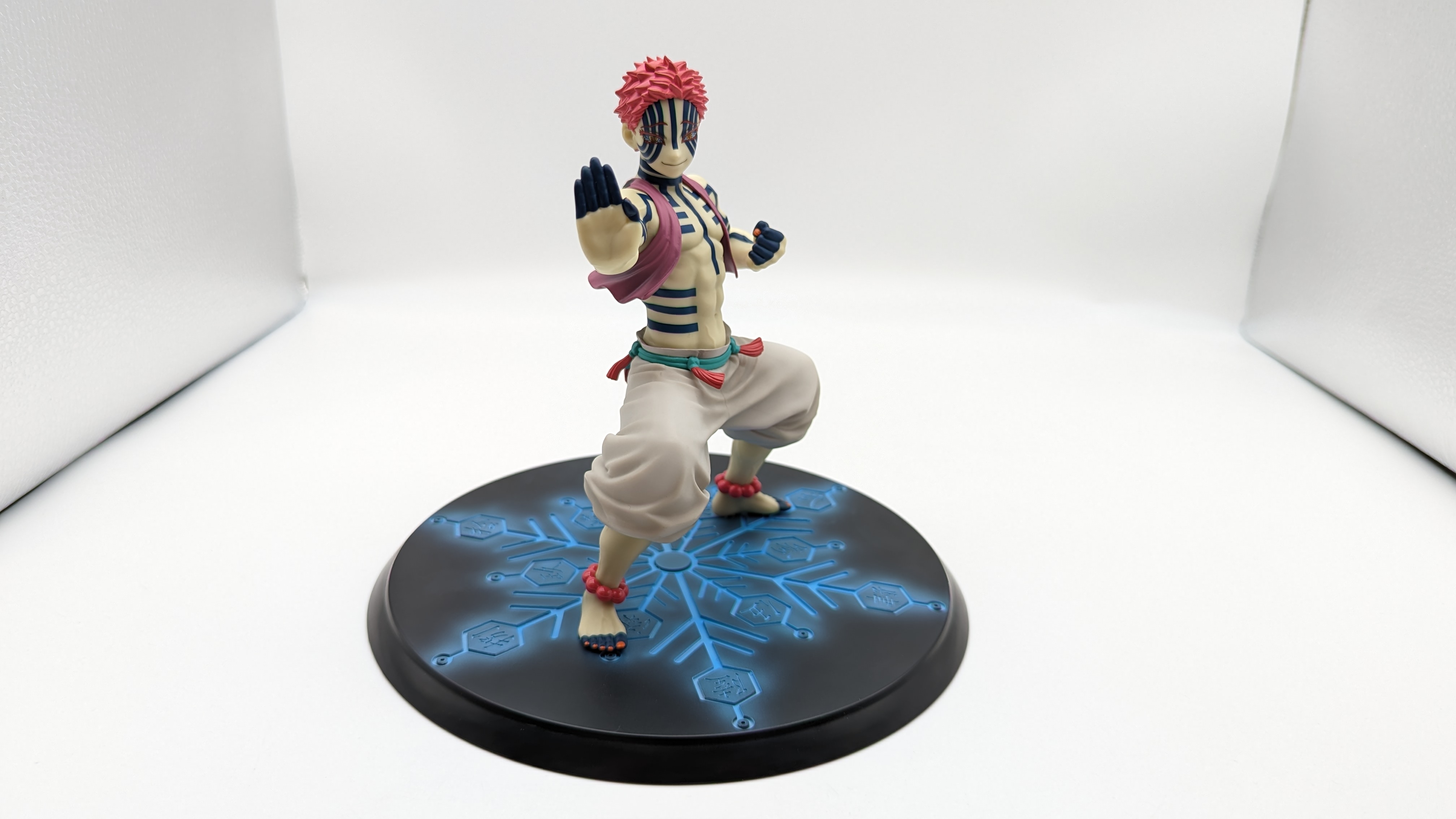 When it comes to anime figure collecting, you always have to ask yourself what you actually want. In my case, I value sculpt and paint accuracy, clean make and a pose that is representative of the character, ideally from an iconic moment. In this case, this figure satisfies all that. The face IS Akaza. His hair sculpt looks great. The veins in his body really brings out what makes him a “demon.” Even the subtle way the feet were sculpted to look real makes me excited about this figure. Everything you can really ask for Akaza and this figure is blown out of the waters. Maybe you can make some complaints about the blue paint speckles? To the naked eye, you will not be able to see it unless you really want to go eye-to-eye with Akaza.