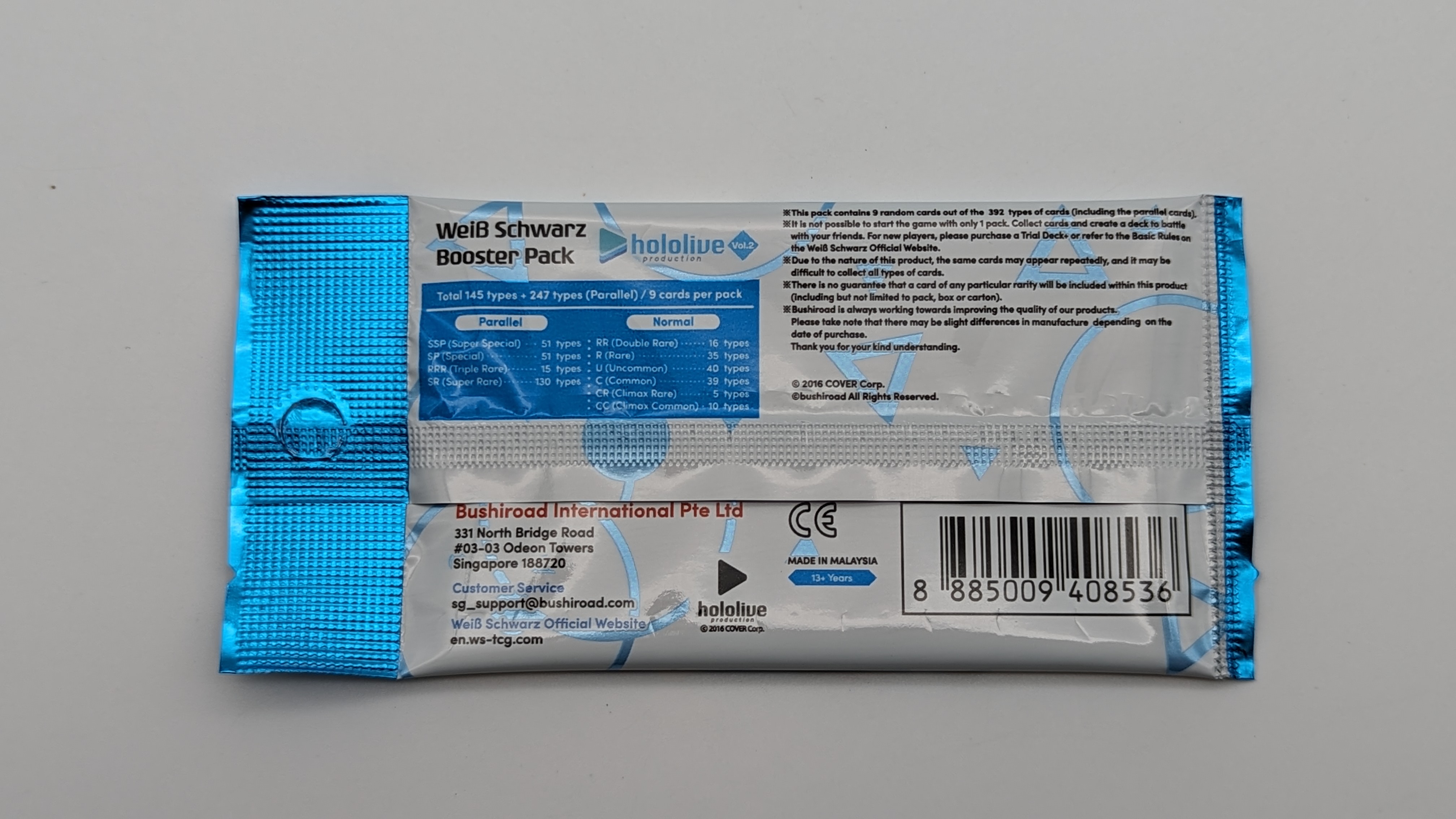 This set comes with an abundance of many different hits. Hololive has a huge cast of VTubers from different classes. Altogether, I received 44 SRs, 5 RRRs, 4 SPs and 1 SSP. I’ve seen some posts of Facebook groups about people receiving blank white cards. I’m not sure about the value of this, but it seems to be a very legitimate thing happening with this set.