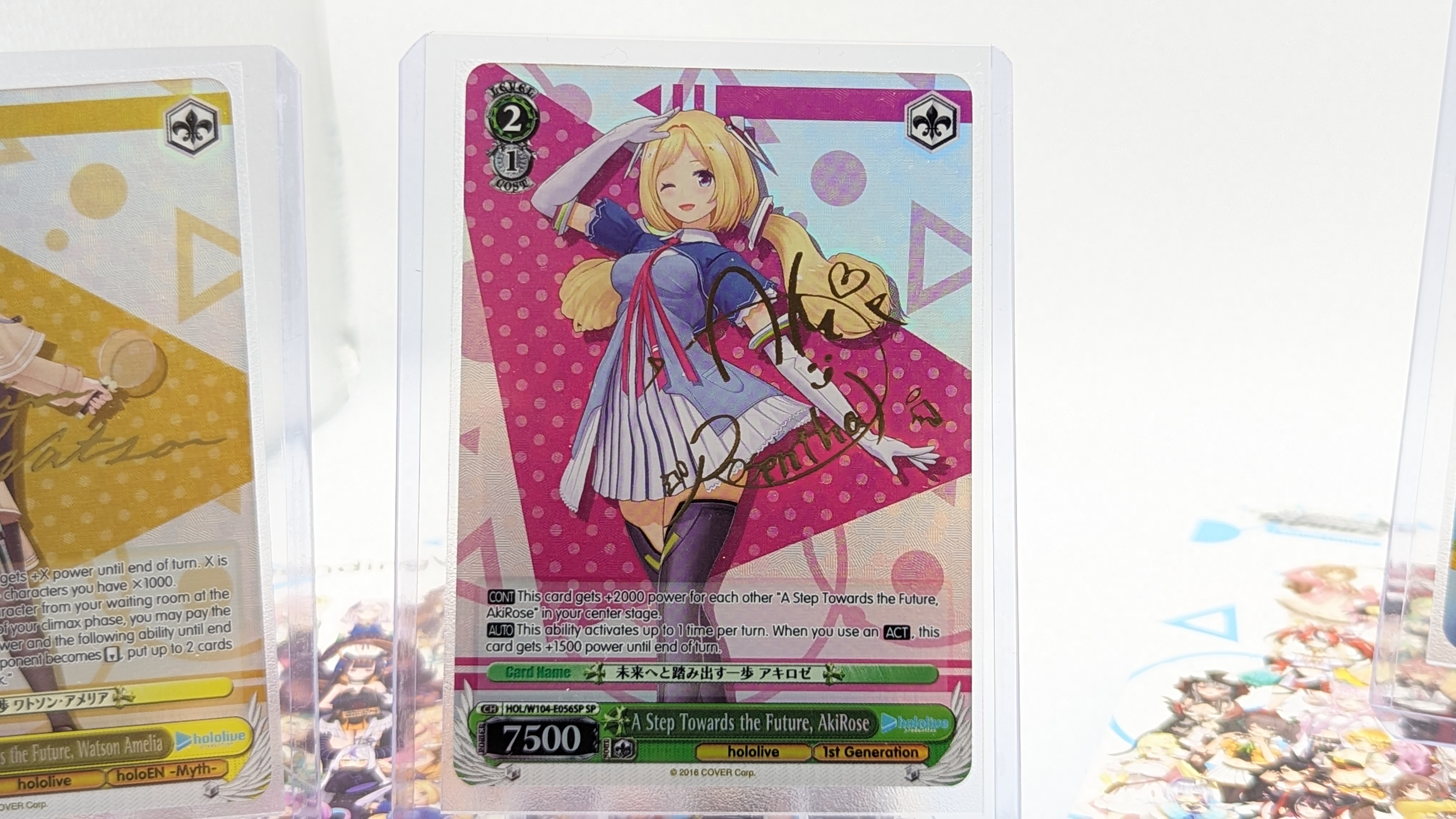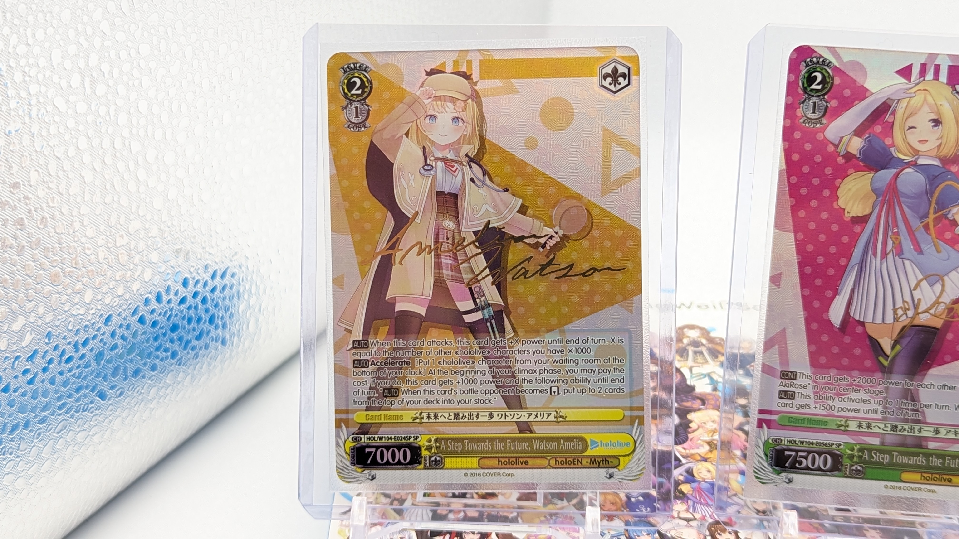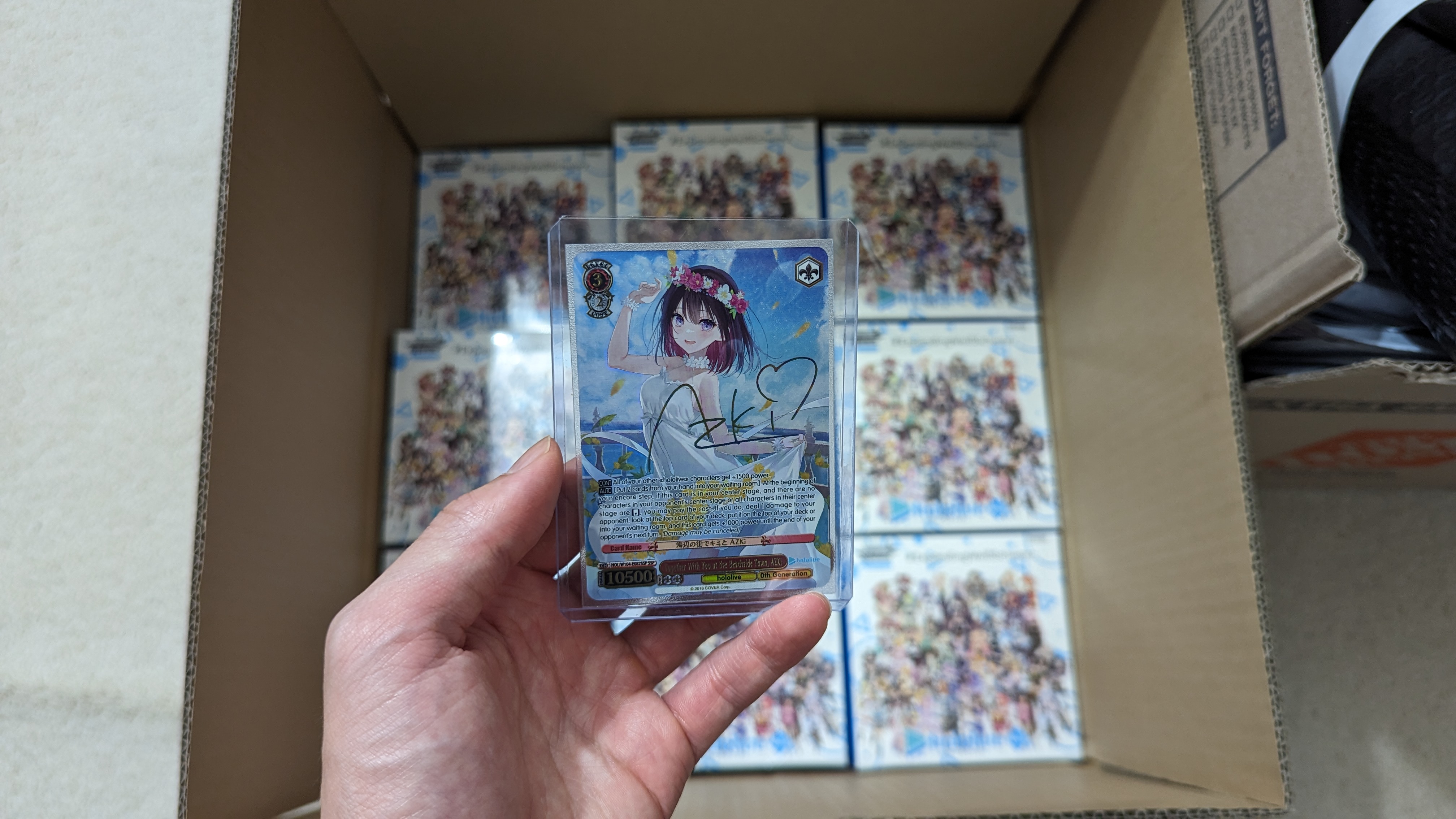 I don’t know much about Hololive besides it being apart of Weiss Schwarz and that Hololive is a a bunch of VR YouTubers. However, what I love most about this set is quite the laundry list. From the speculative value perspective, the hit rates are so much higher with SPs and with a guaranteed SSP in each case, it’s by far the most rewarding case I have ever opened! Because the hit rates are higher and the amount of SRs, SPs and SSPs in this set are so massive, the assumptive downside for fans would be the lowered pull-rates for your favorite characters. In my opinion, this turns out to be more of a positive because this is a TCG & CCG. It creates a community and it promotes trade. Being humanly active in this world is a general plus. So, having that higher amount of SPs and SSP will make you engage with other fellow collectors to try to strike deals. Thus, some form of bond and community is built from it.