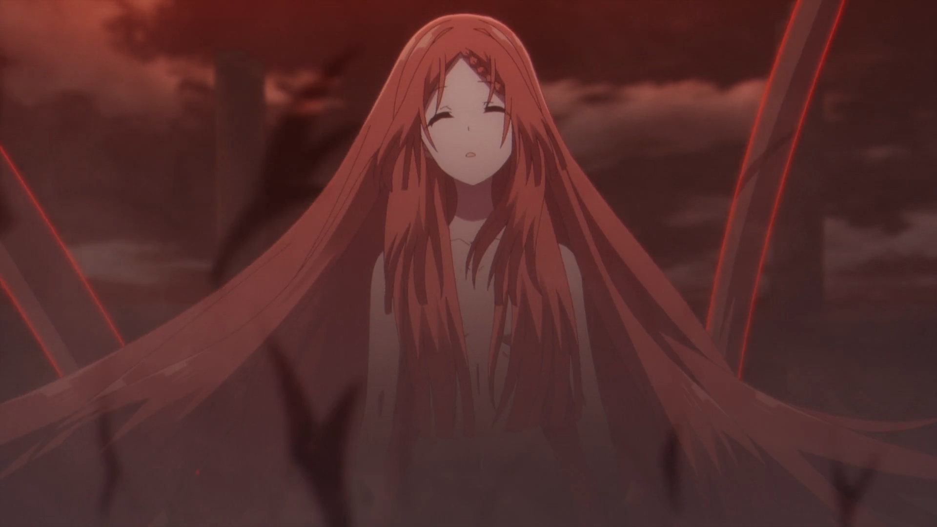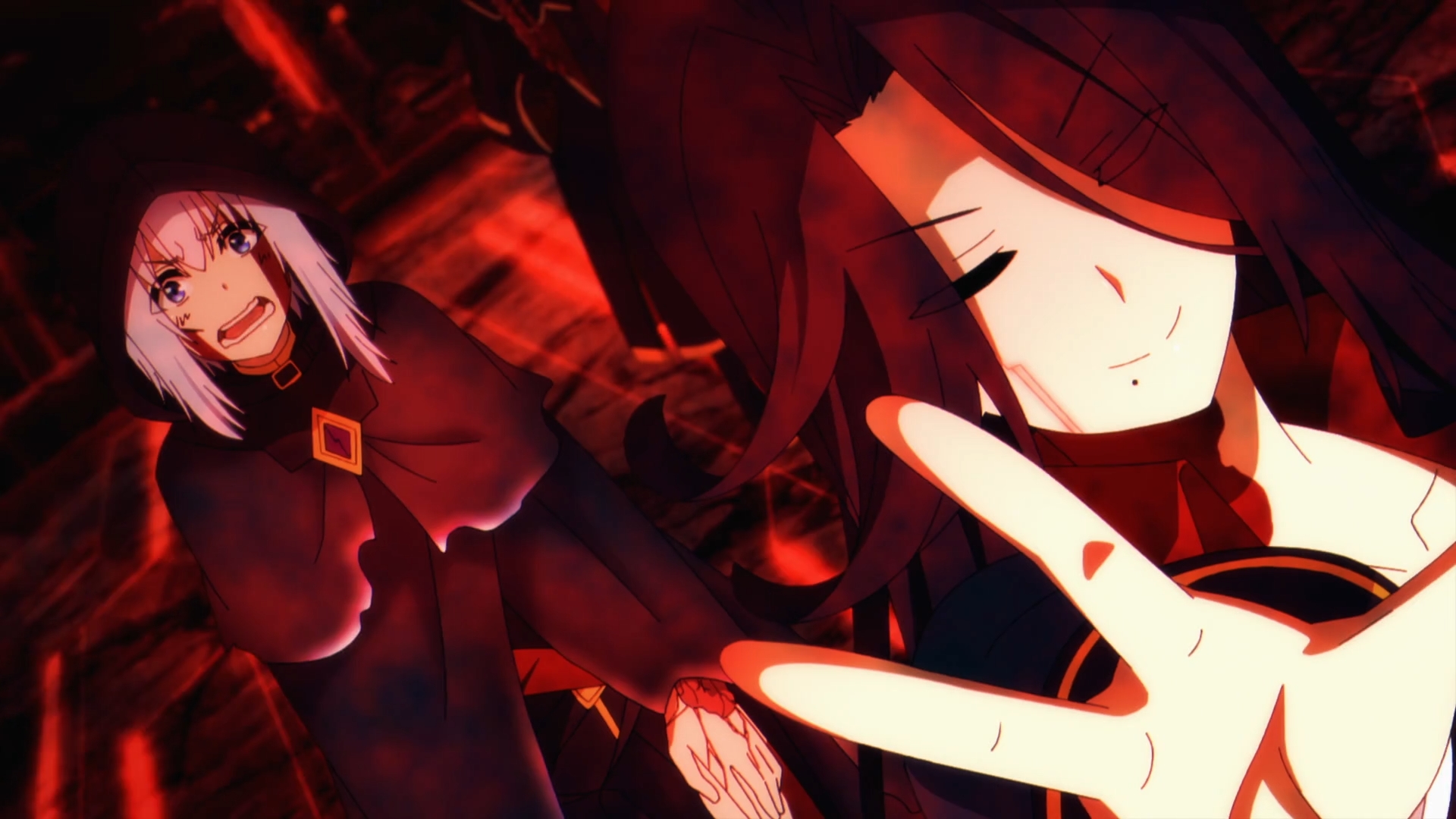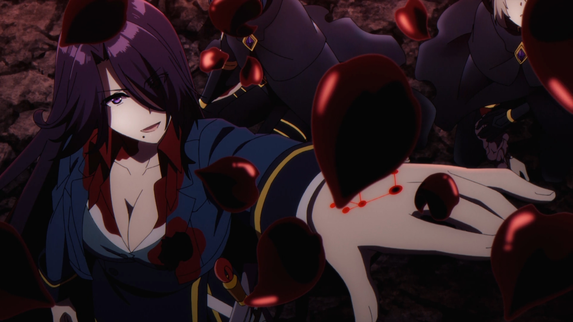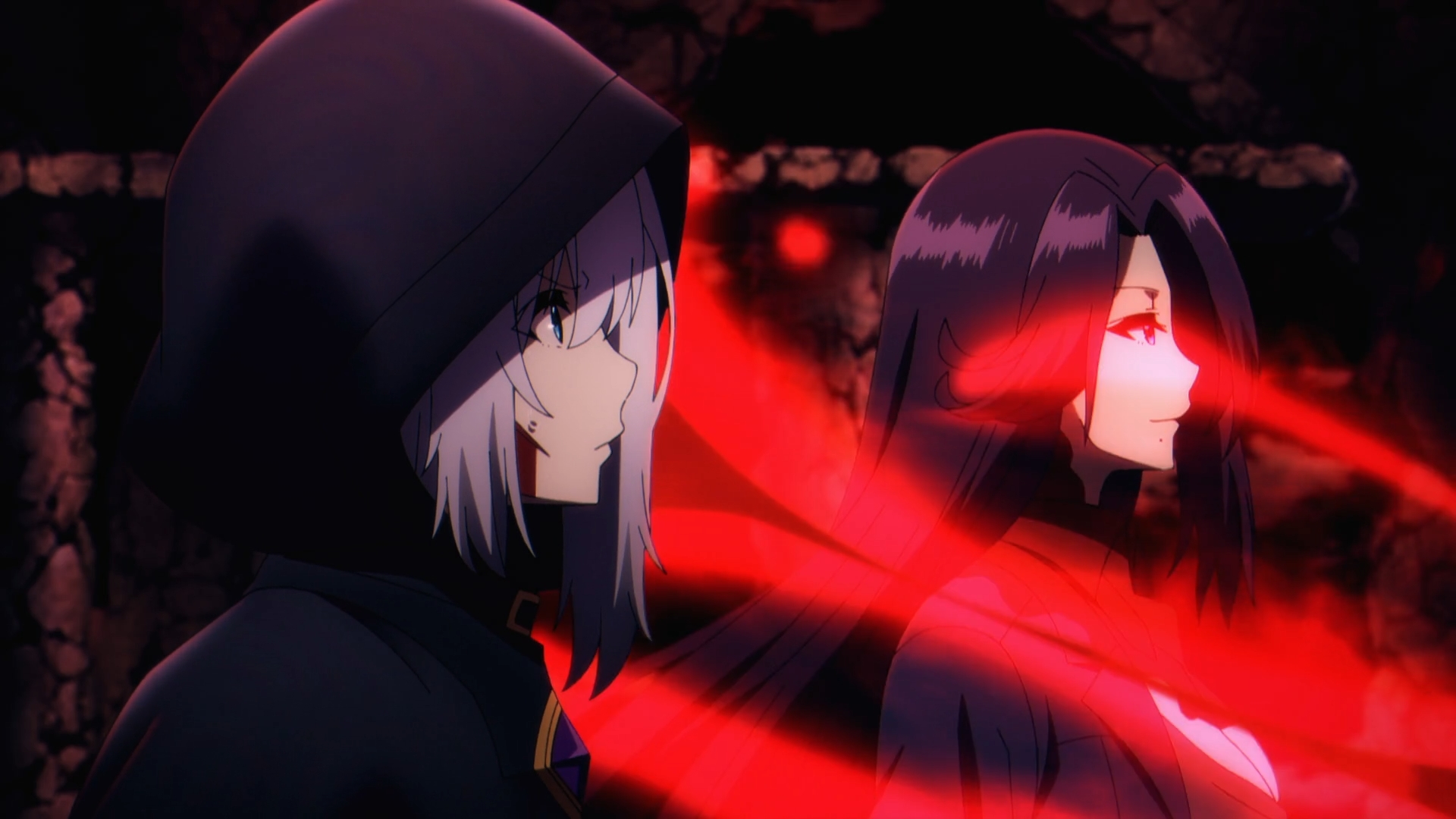 This is where using the obliviousness Cid’s character works against Shadow. However, it’s the perfect motif to use to relocate Shadow at any point in the story. Honestly, an extremely self-aware OP protagonist just wouldn’t hit the same for these plots. Shadow feels this kind of emptiness about what happened at the end and he leaves to hopefully strike hold. Right as Shadow left, it only makes sense that the setup of the villain’s grand plan from the ending of the previous episode, actually becomes realized. The Blood Queen Elisabeth’s lies on the ground, waiting for its moment to be revived.