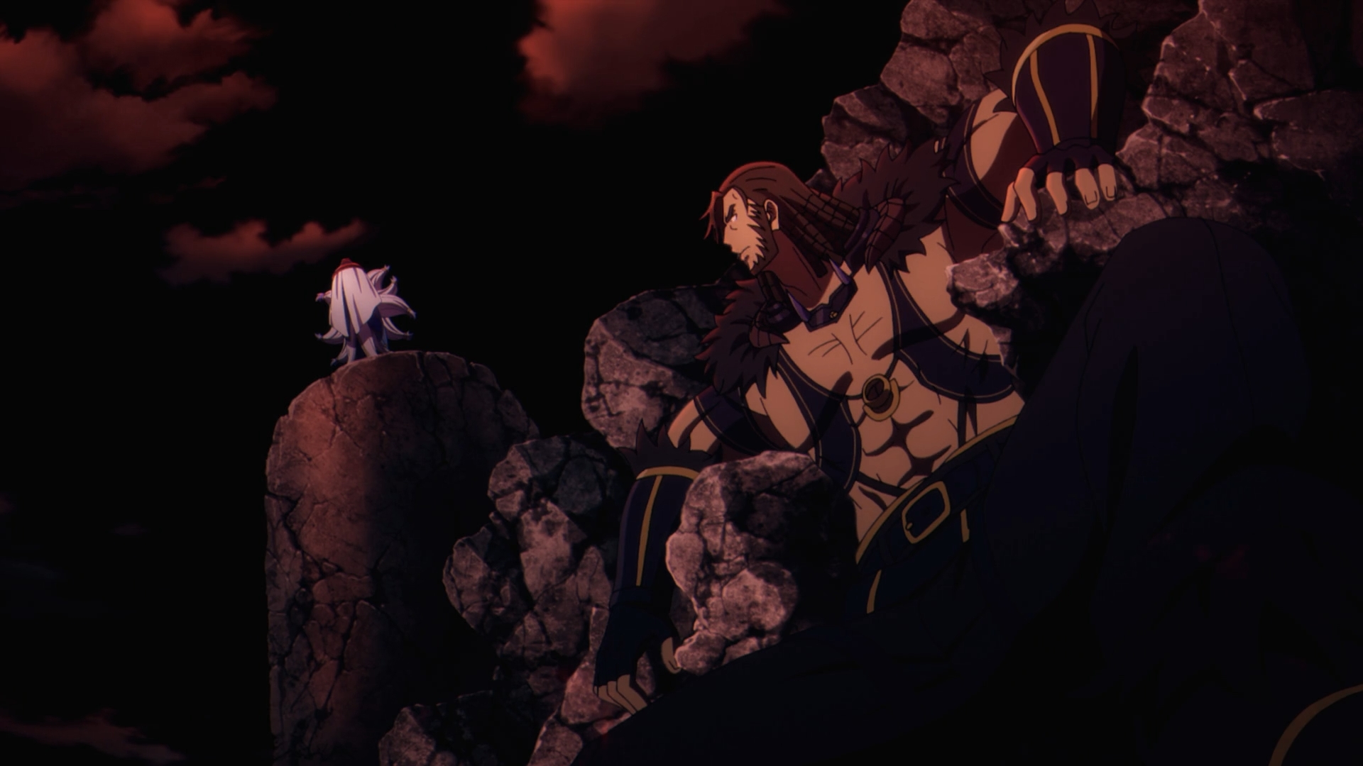 Interestingly enough, the scene time skips to a drunken Juggernaut thinking about how he wants to get into a rumble with Shadow Garden because it’ll be fun to tangle with strong characters. Po & Skel and Goldy & Quinton provide that “Bulk and Skull” Power Rangers trope of a pair of doe doe heads providing comedic relief. Goldy and Quinton couldn’t get the loot from defeating the Blood Queen at the Crimson Tower and Skel & Po couldn’t get any girl action.