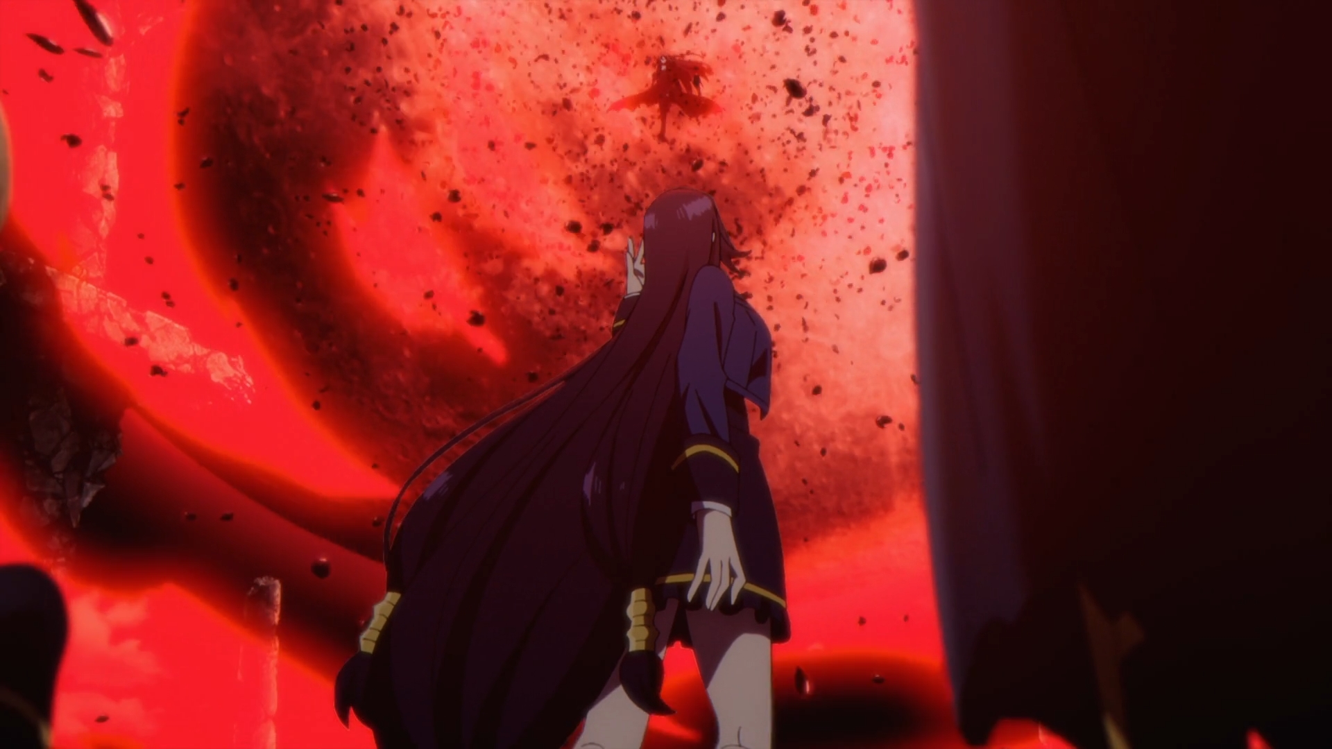 This is the first time seeing a villain actually stand a fighting chance against Shadow Garden members. Except this time, Shadow Garden is on the ropes. Mary steps in and hints to the audience that the Queen has yet to show her true prowess. Do to her low blood pressure as she awakes, she slowly increases her magical powers. Beta takes some damage and notes at the Queen having more magic than Alpha does.