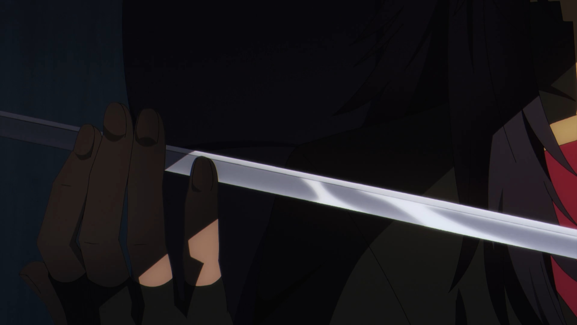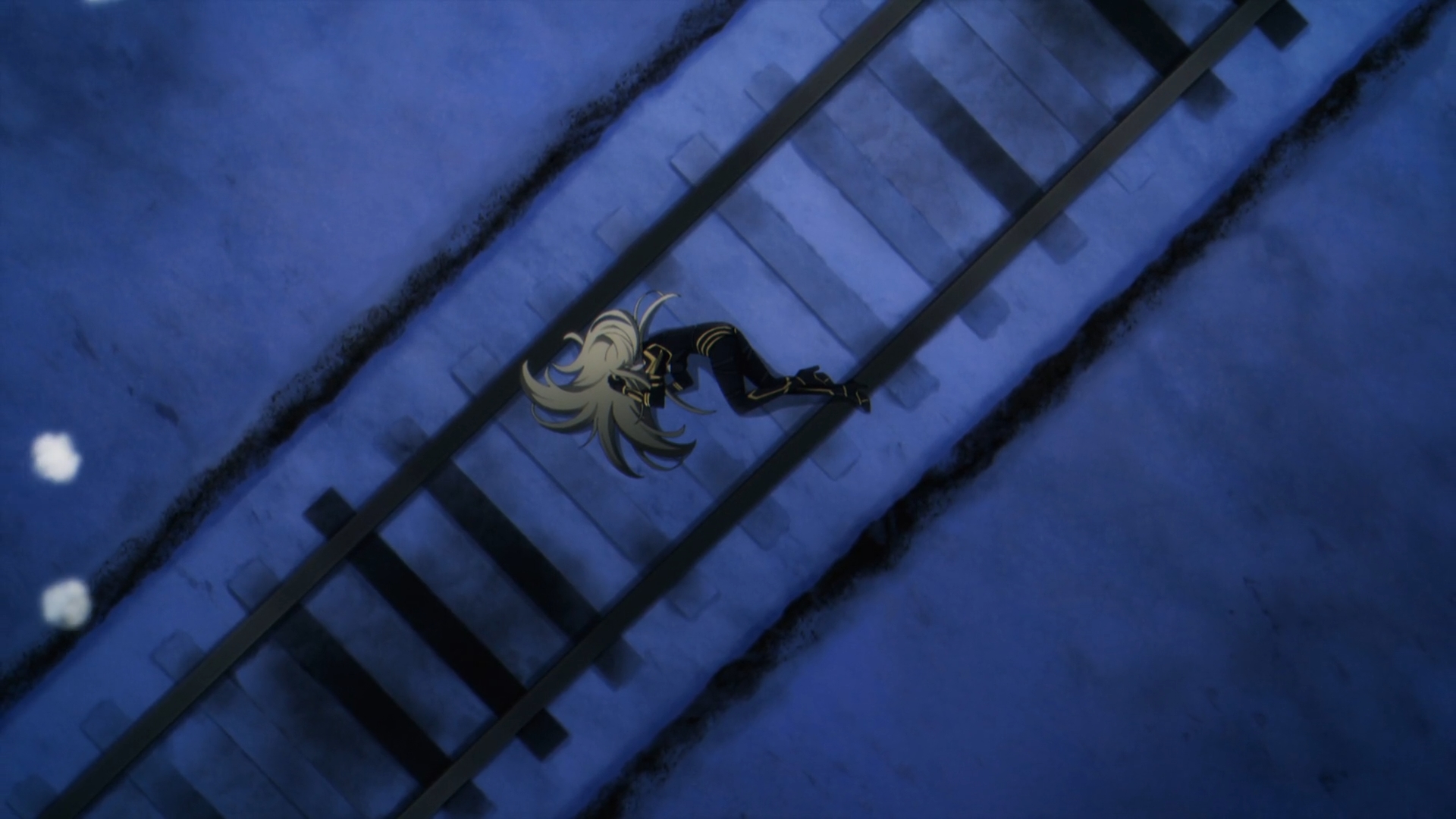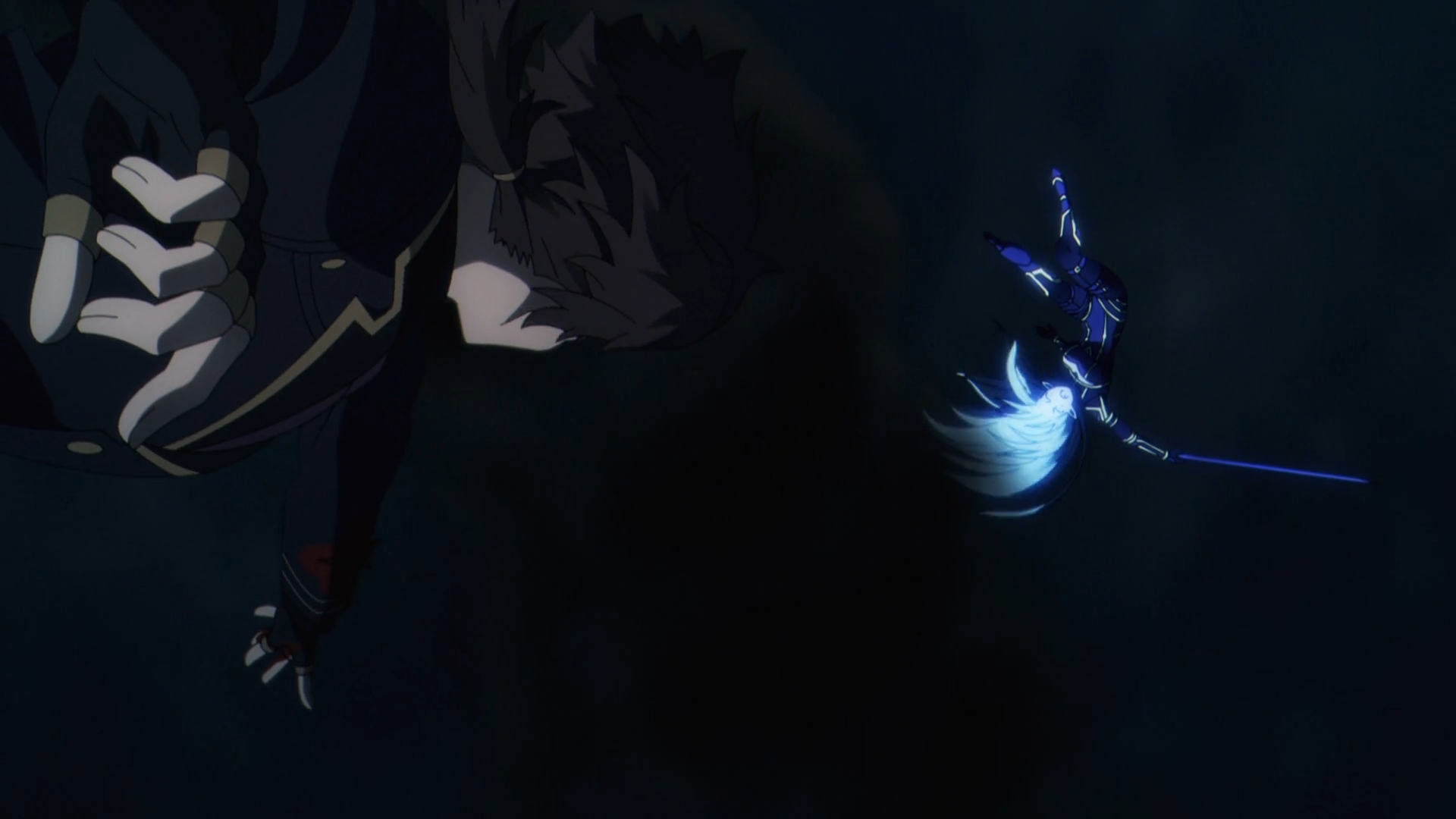 John Smith sits on the train, in route to the next Major Corporate Alliance check point. Suddenly, there stands Alpha in the middle of the train tracks. Like many of the dramatic action sequences prior, a dramatically slow motion fight ensues. Alpha quickly deciphers how John Smith uses his threads to attack. Some act as decoy, while the others do the actual damage. Judging even further through his techniques by the way he attacks, putting her on edge, she realizes the shocking discovery that John Smith is her beloved Shadow-sama!