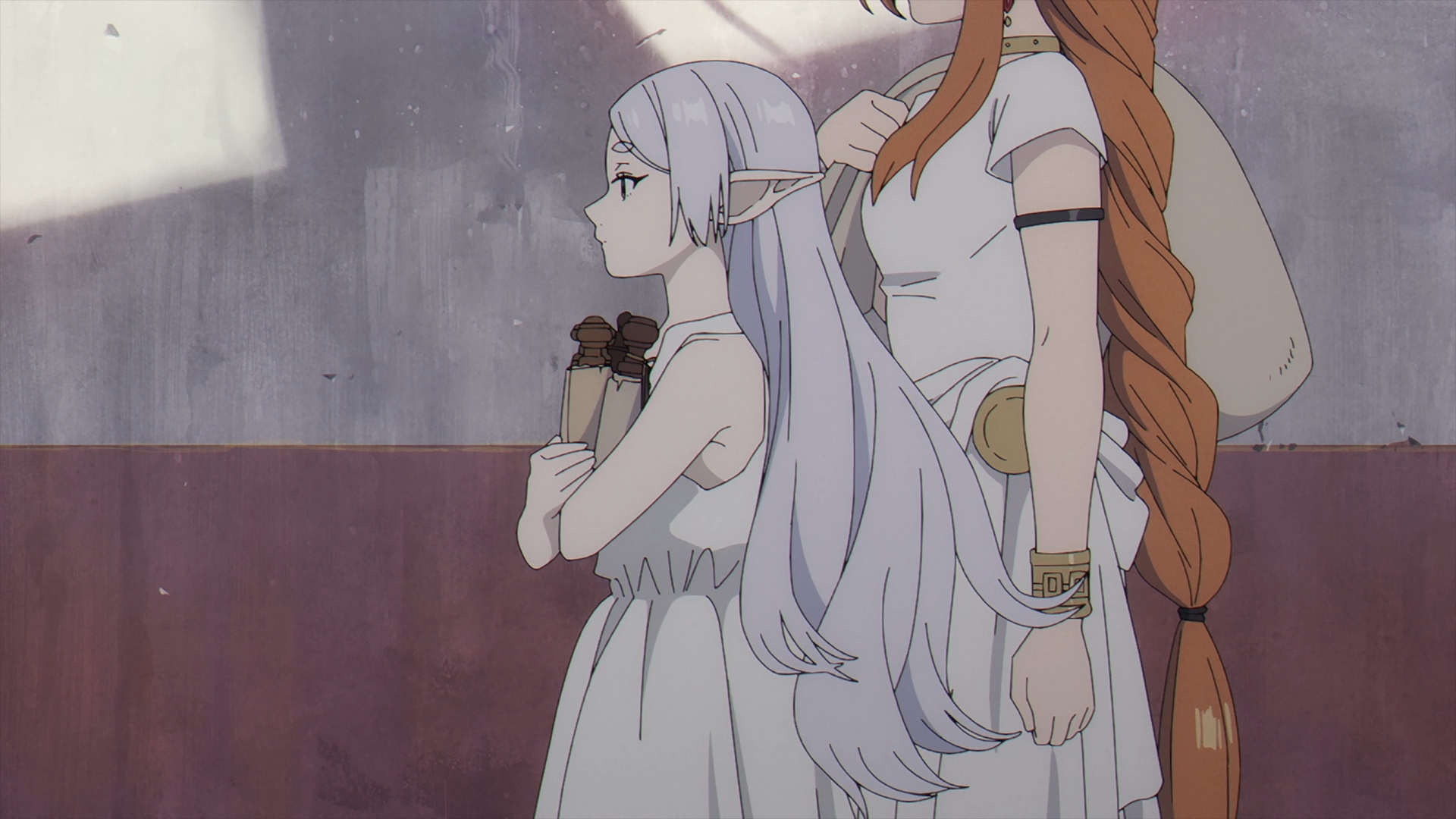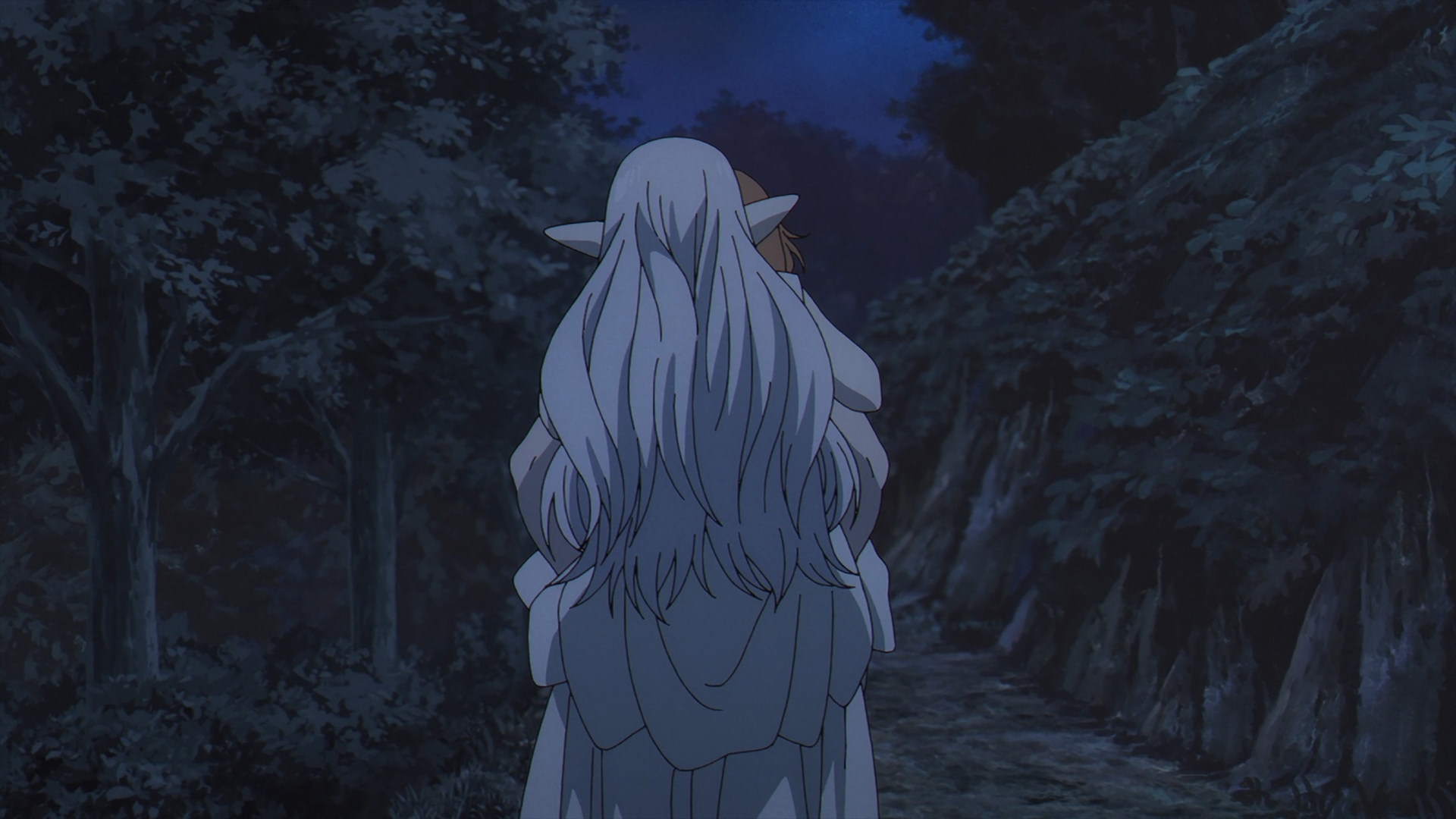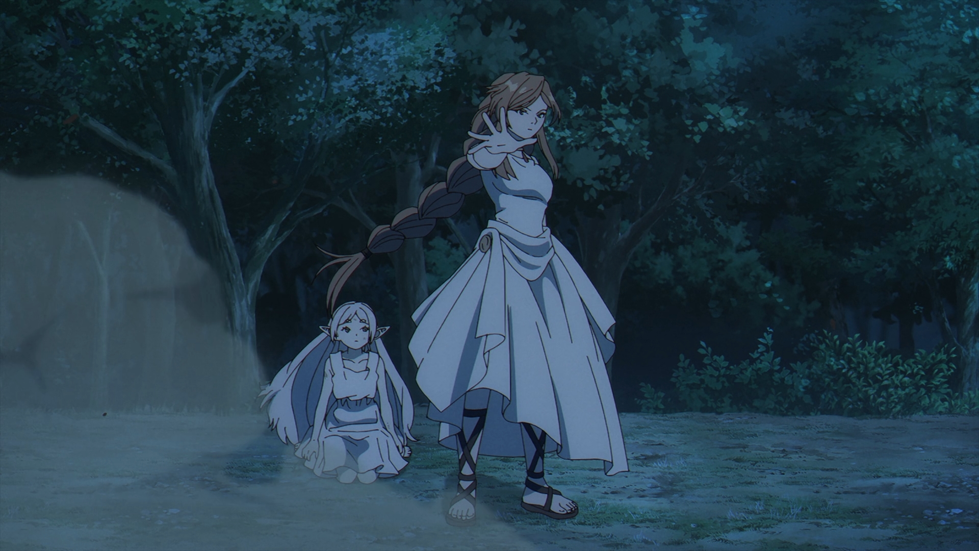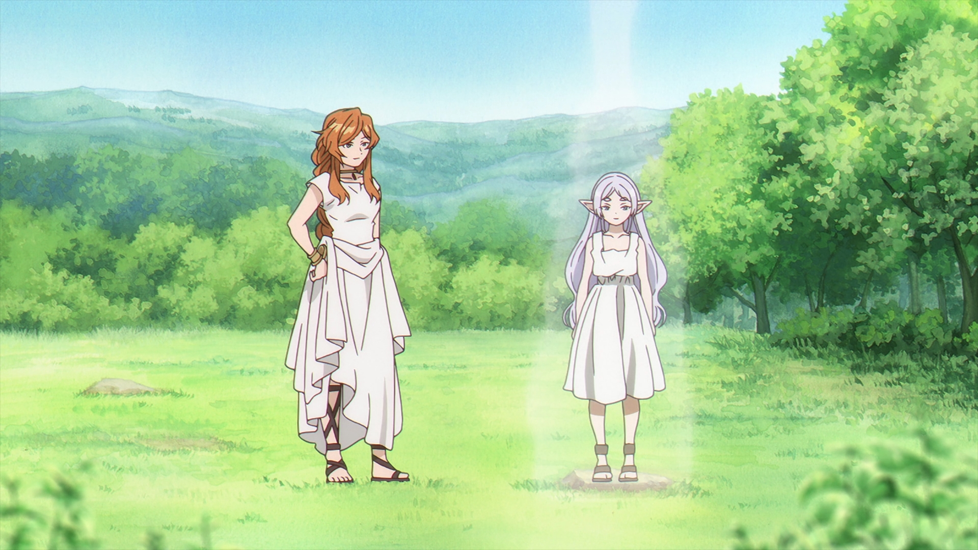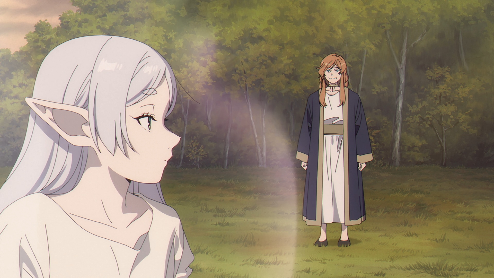 The episodes start off with a flashback with the origins of a young Frieren and how exactly she became the star pupil of Flamme, an originator of humanity’s use of magic today. Flamme and Frieren are walking, recounting Basalt, the Demon King’s general’s last words before he passed away. This scene reiterates what Frieren has been saying since her time in the jail cell, demons’ words are just meant to deceive and Flamme agrees.