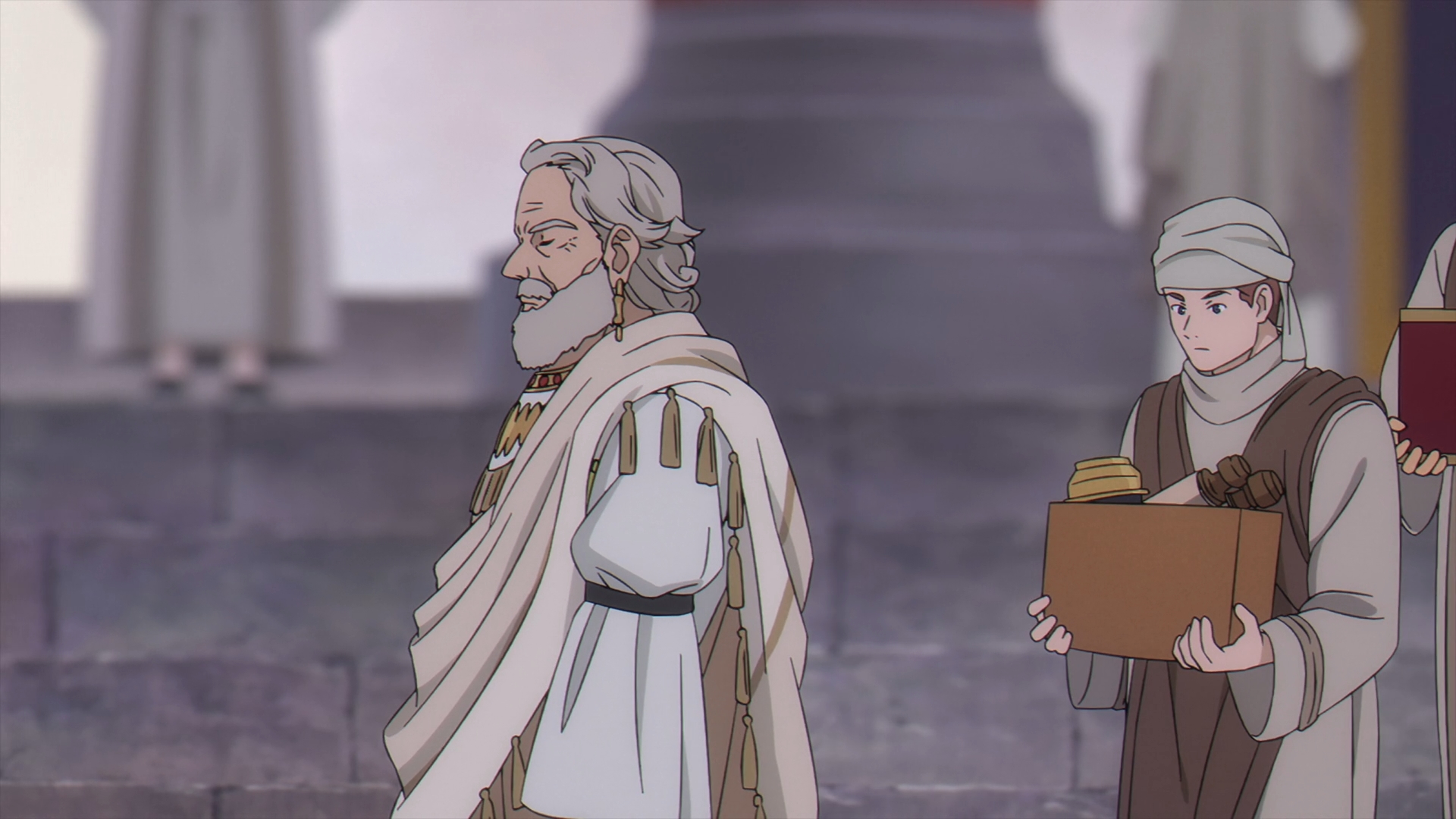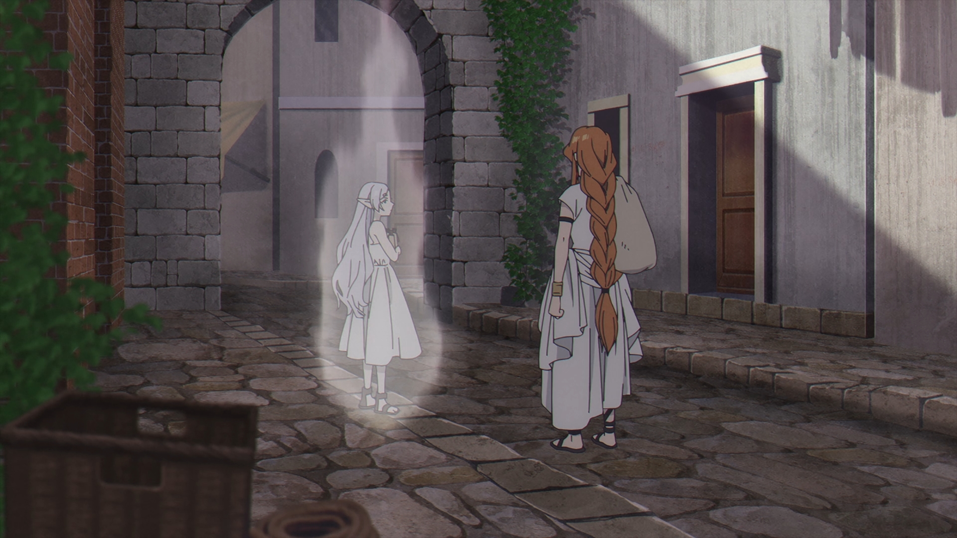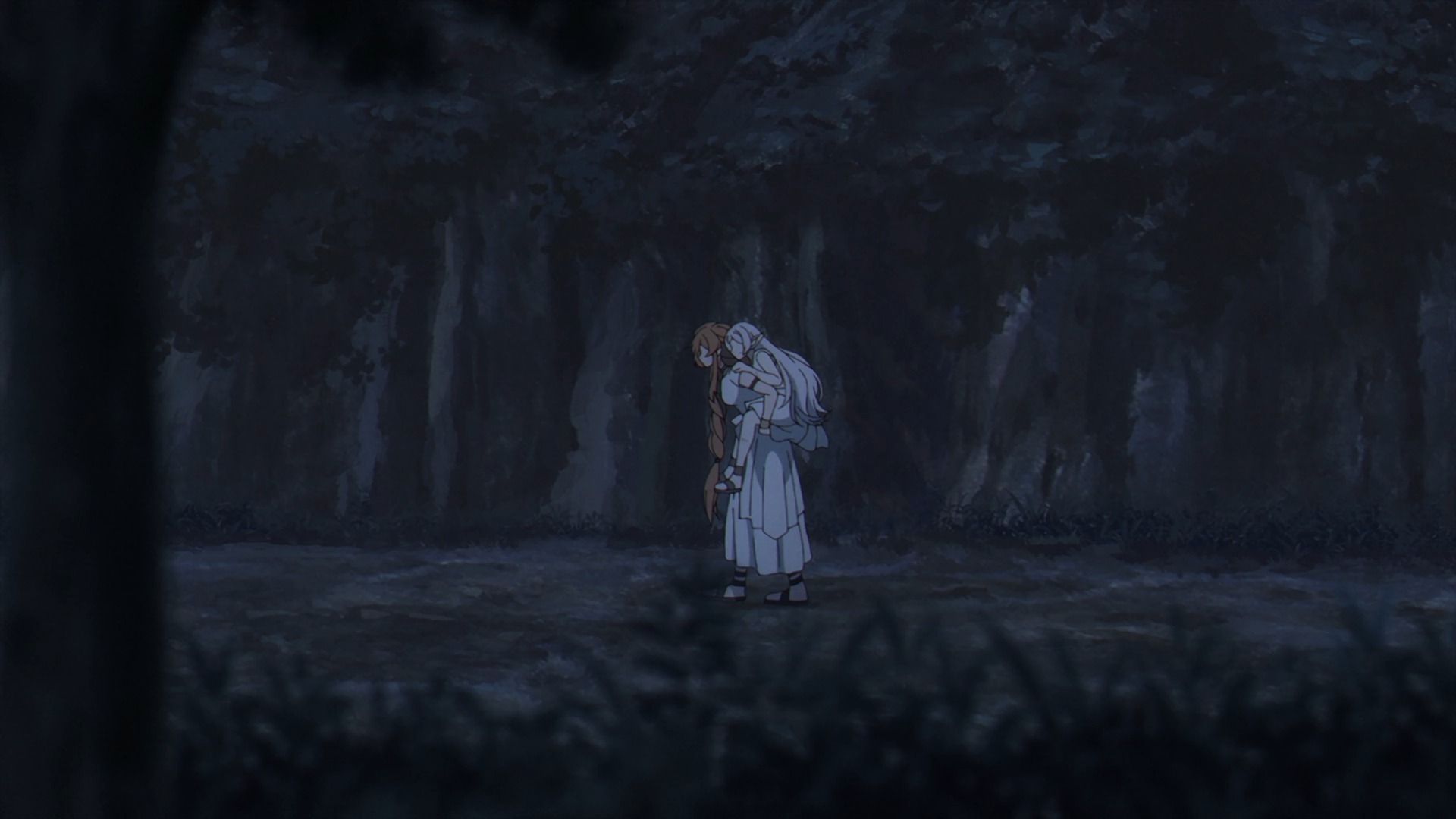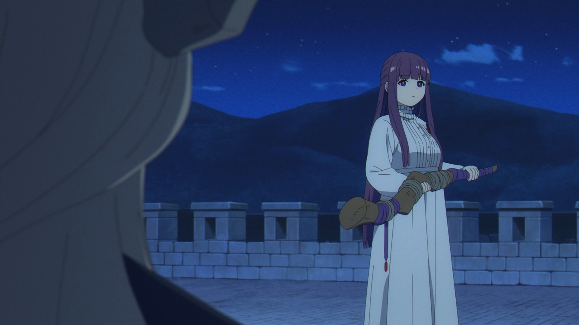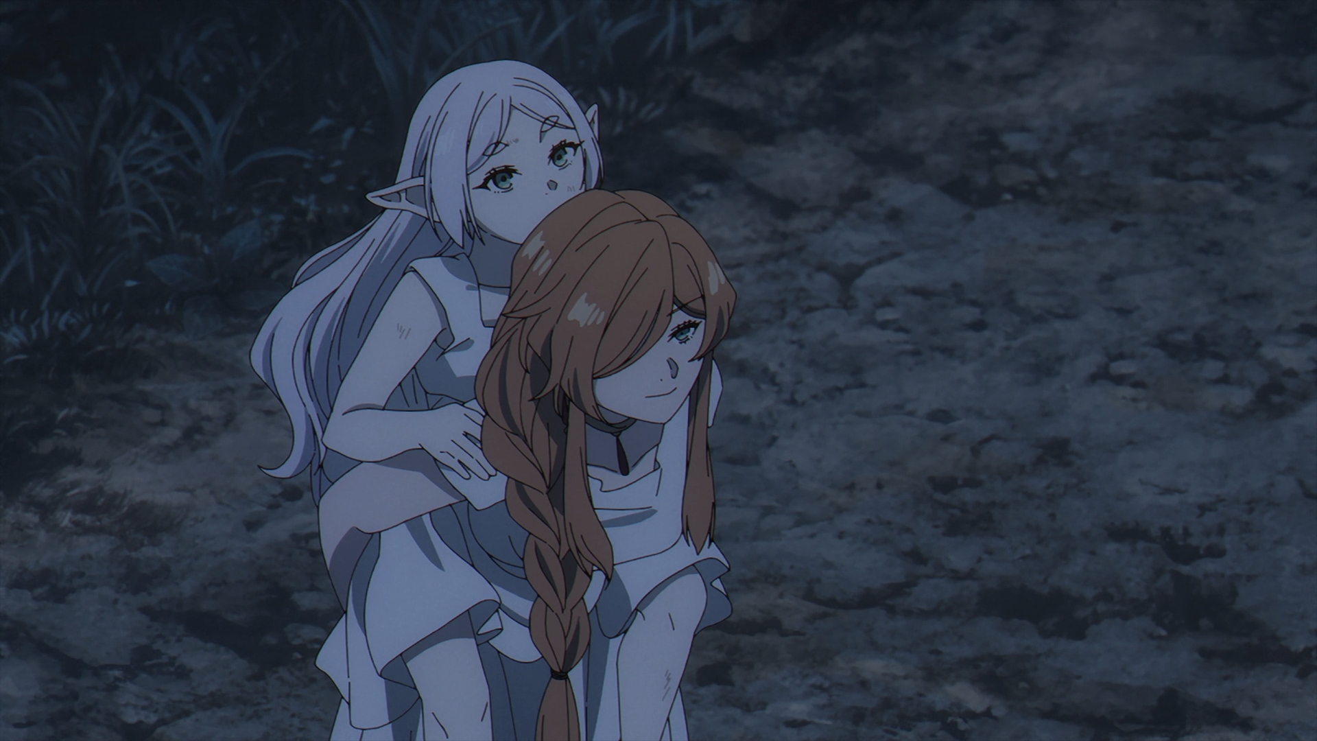 The episodes start off with a flashback with the origins of a young Frieren and how exactly she became the star pupil of Flamme, an originator of humanity’s use of magic today. Flamme and Frieren are walking, recounting Basalt, the Demon King’s general’s last words before he passed away. This scene reiterates what Frieren has been saying since her time in the jail cell, demons’ words are just meant to deceive and Flamme agrees.