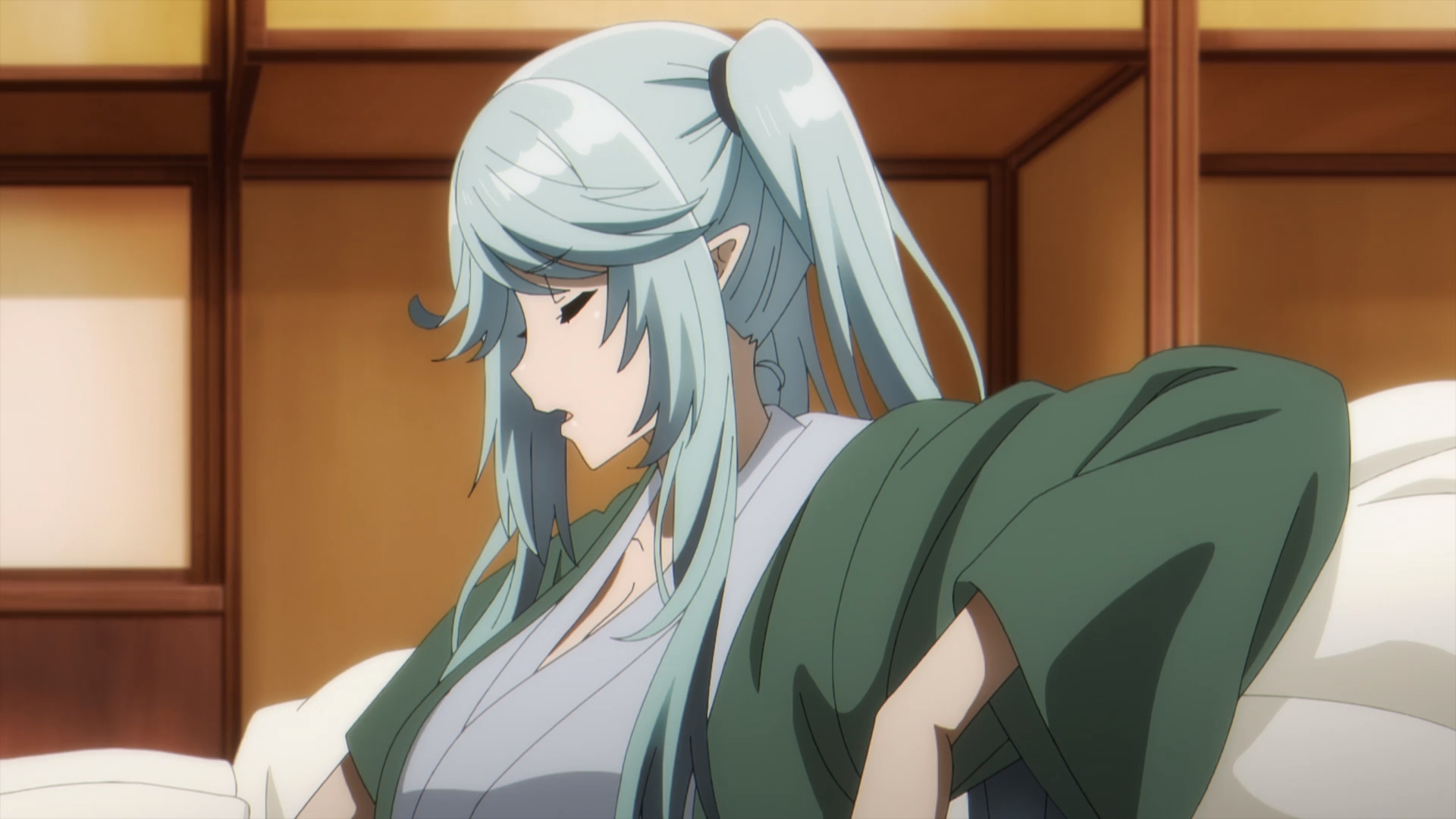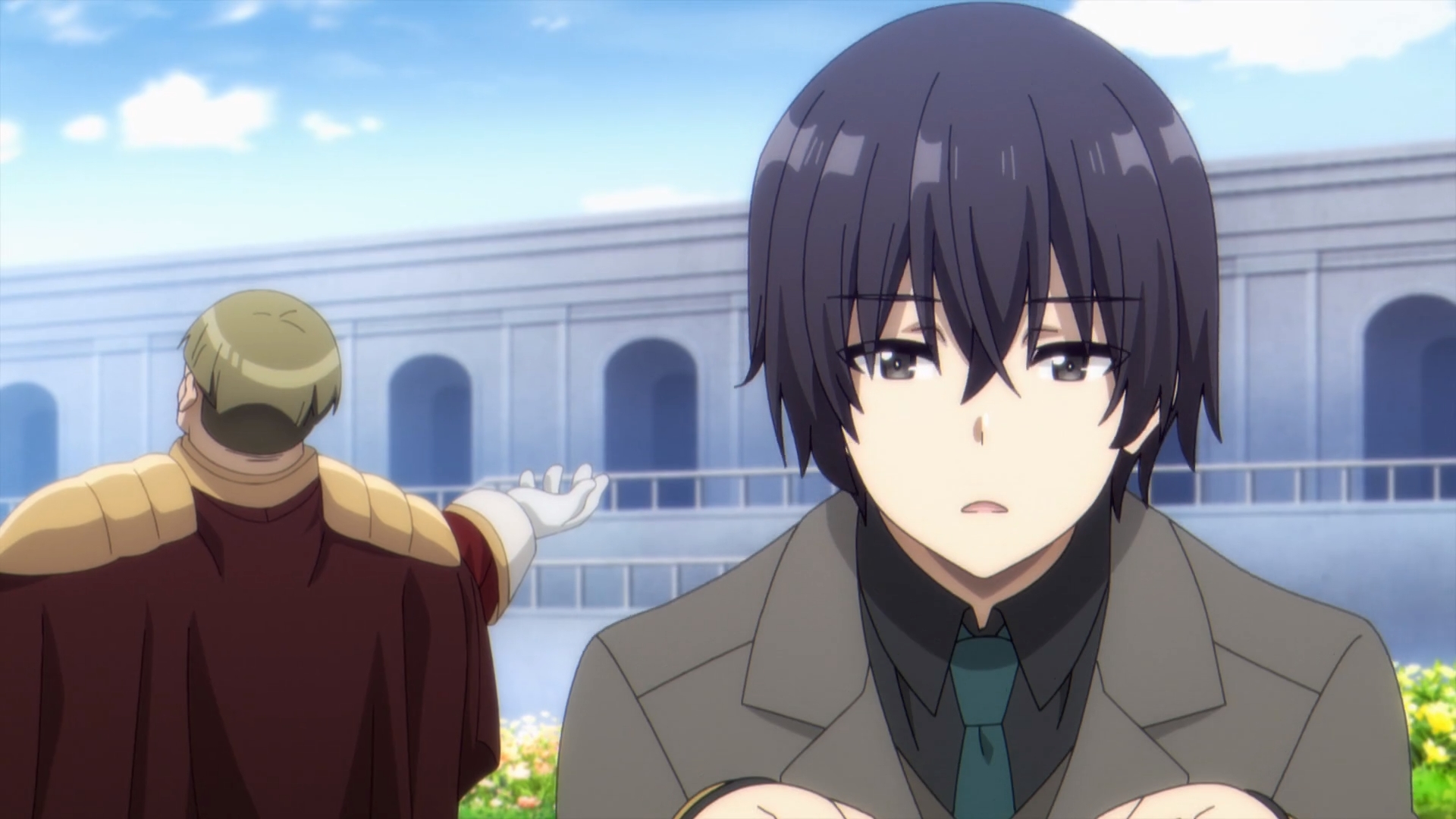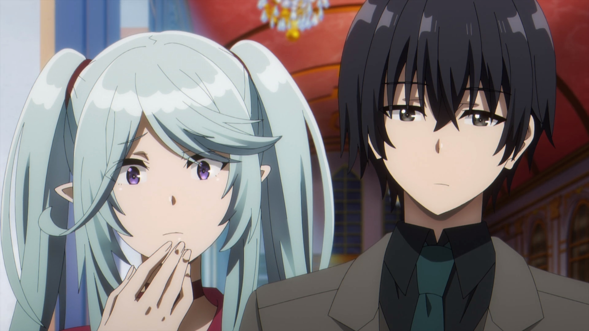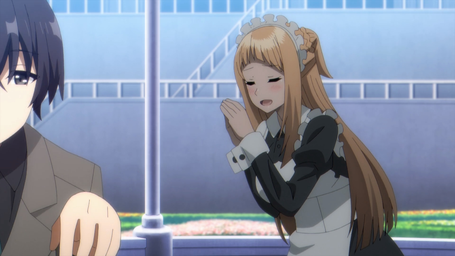 Margaret gets progressively more insistent in being Cid’s guide as Shiron gets more and more frustrated. As her chest gets closer to Cid, he capitalizes on the “99% slime content” joke earlier, by referring to the maid’s as “0% slime content.” With that punchline to the scene, it shifts to Cid walking with the maid, Margaret.
