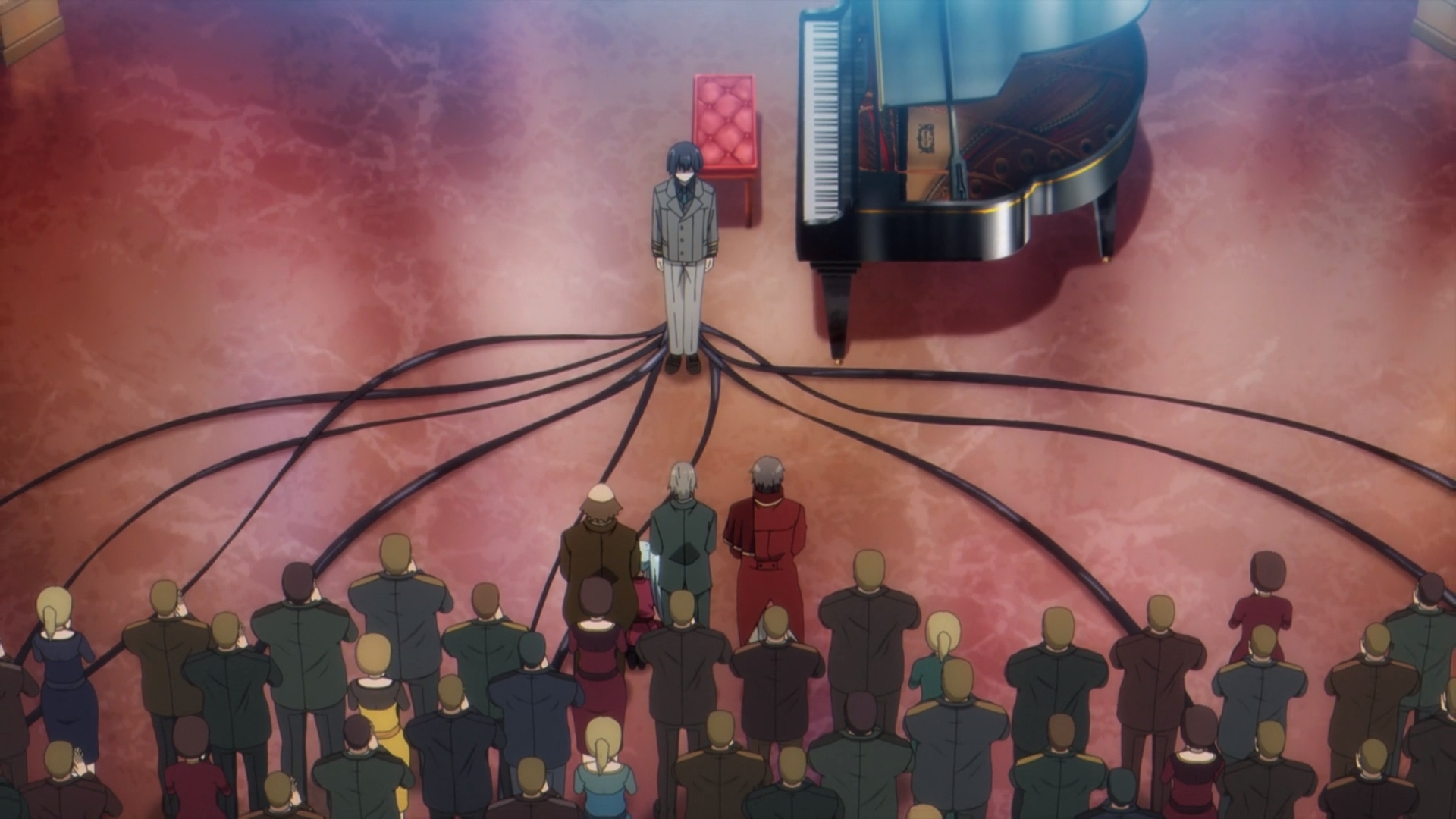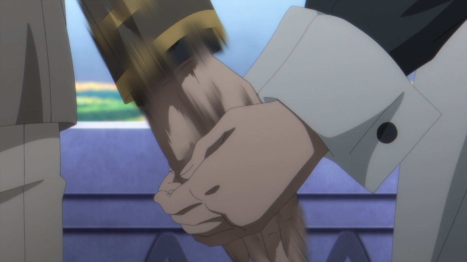 Being utterly infatuated with Cid’s ability as a pianist, Margaret starts dropping ginormous numbers as to how much he can make as an artist. This catches Cid by surprise due to his dream of riches. In her overbearing fervor for Cid’s success, she won’t let go of having him be helped by her, even suggesting that her family can help him. Cid tries to play it cool and gives Shiron as a reason for not doing so, when an angry man from afar get irritated by their interaction.