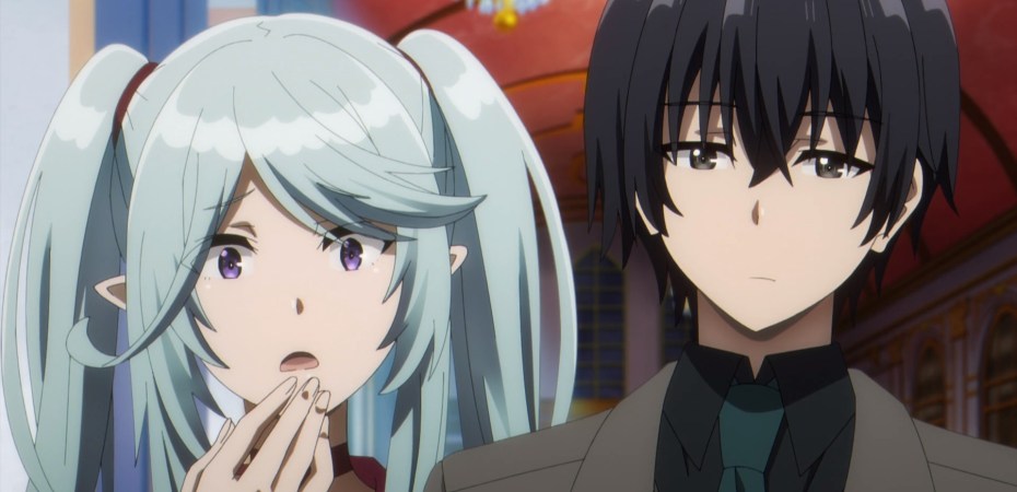 Margaret gets progressively more insistent in being Cid’s guide as Shiron gets more and more frustrated. As her chest gets closer to Cid, he capitalizes on the “99% slime content” joke earlier, by referring to the maid’s as “0% slime content.” With that punchline to the scene, it shifts to Cid walking with the maid, Margaret.