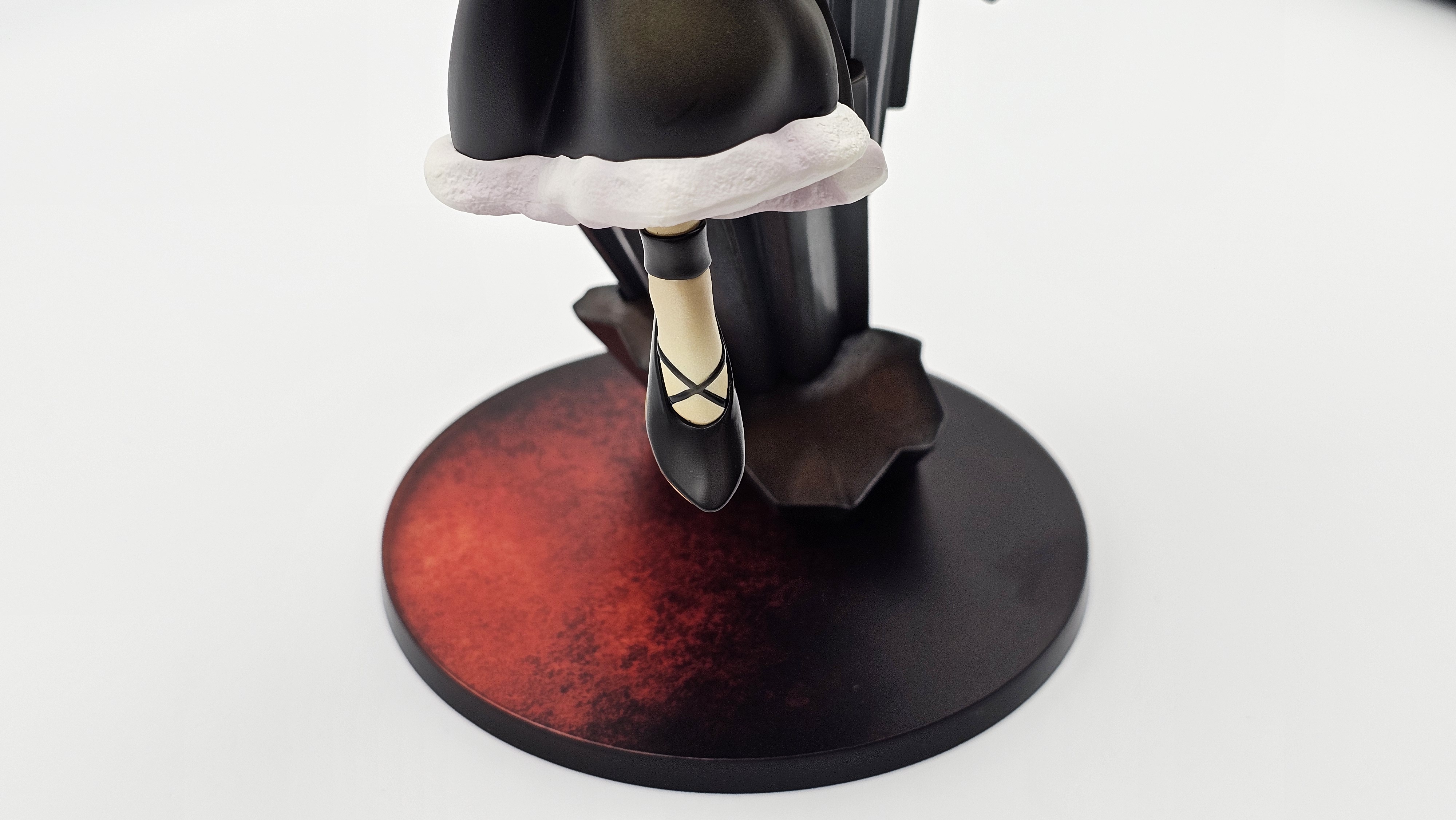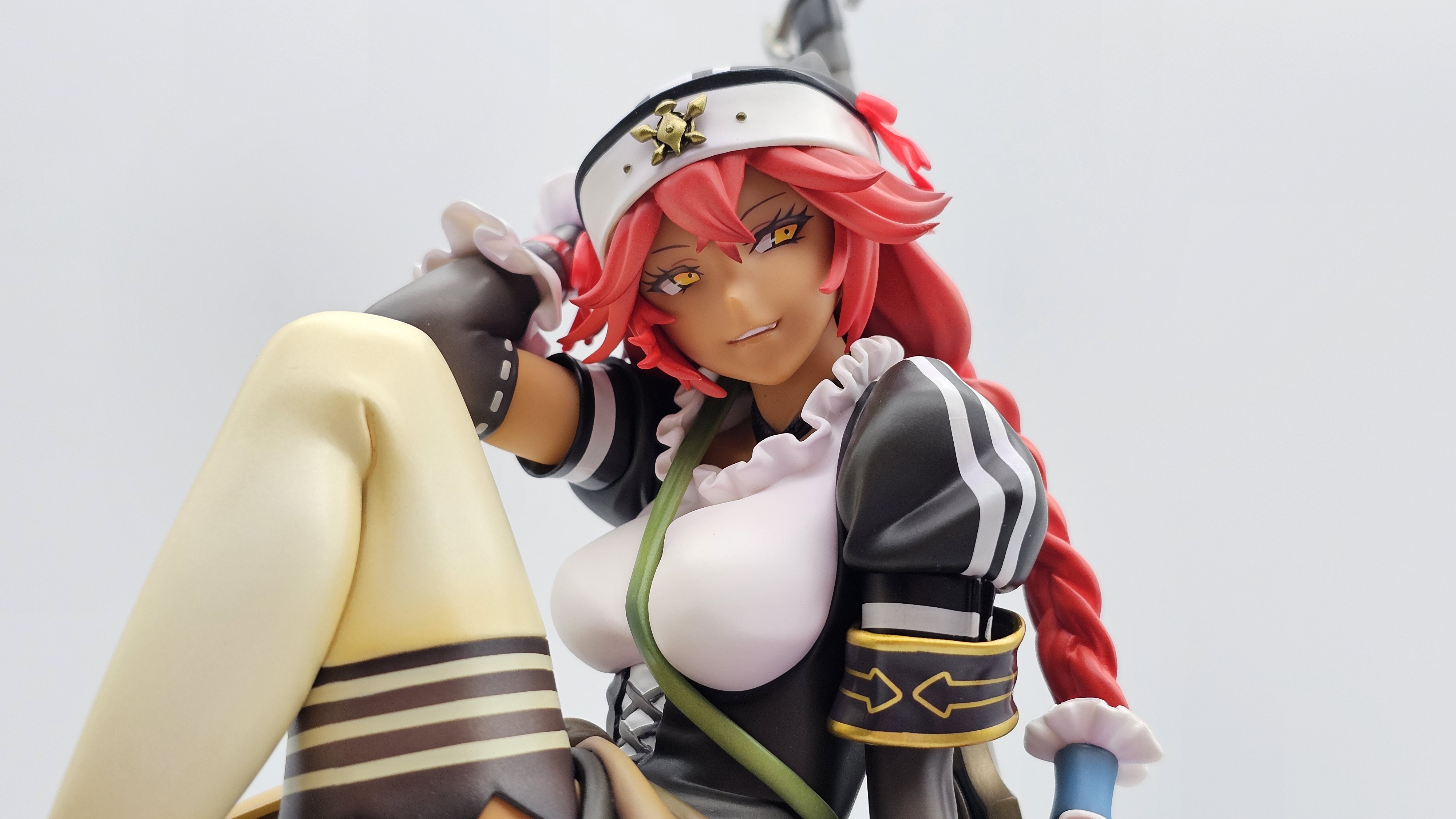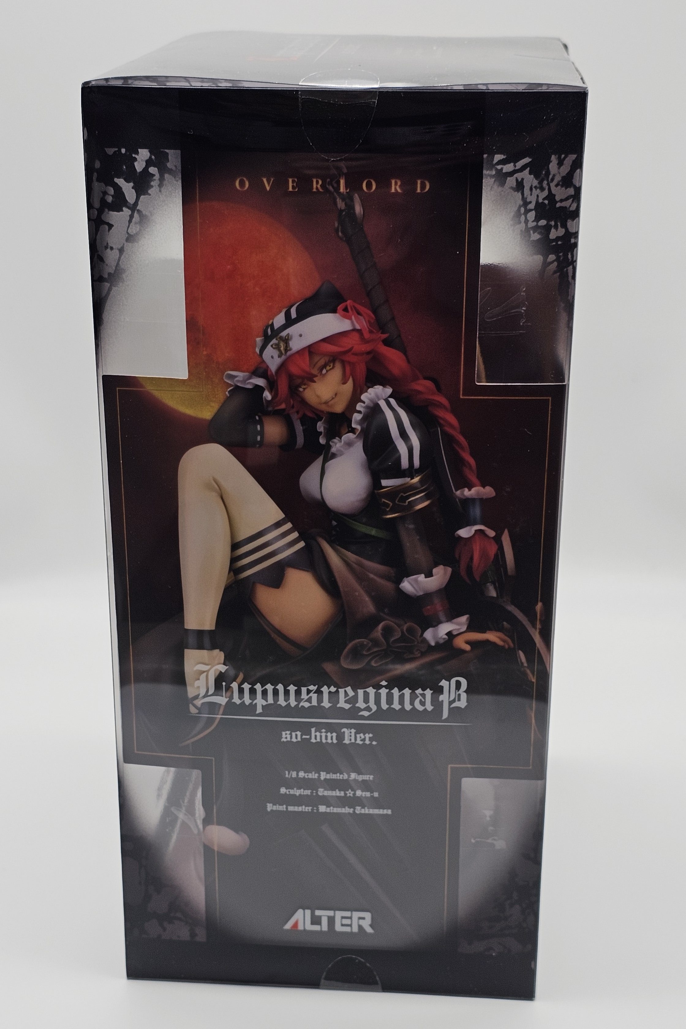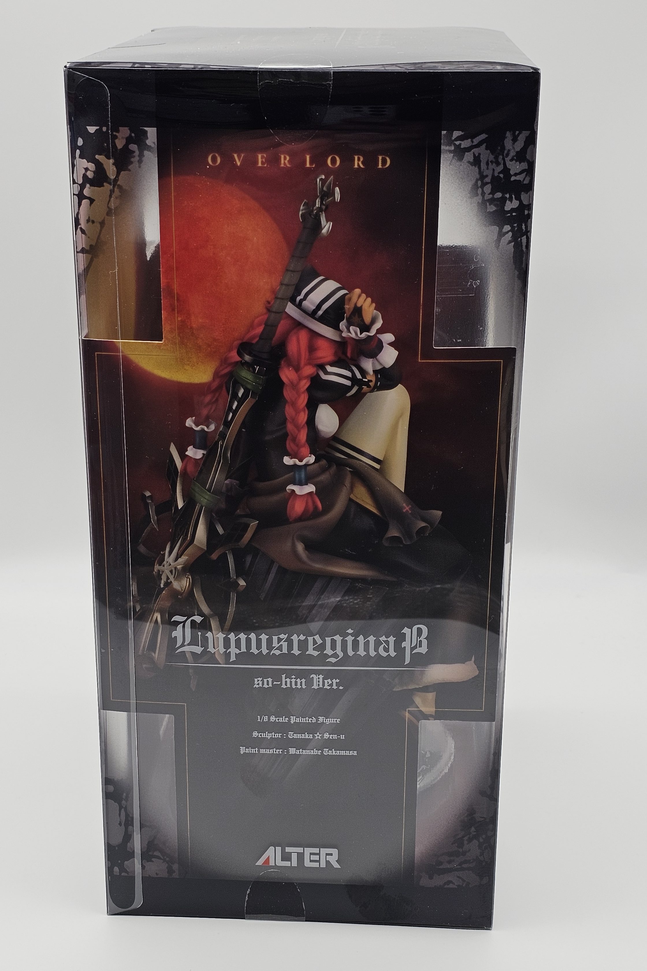 When it comes to quality scale anime figures, Alter rarely misses. Using So-bin’s design of Lupisregina is a great choice as this figure embodies the lycanthrope herself. She’s an elegant, yet beastly maid that serves the great Ainz Ooal Gown! This figure sports a base that’s seems simple, but is very unique in it’s style. The darker tones in contrast with her dark red hair and cream colored leggings creates a good synergetic balance of colors. The sculpt of the figure’s hair, the face and expression is stunning!