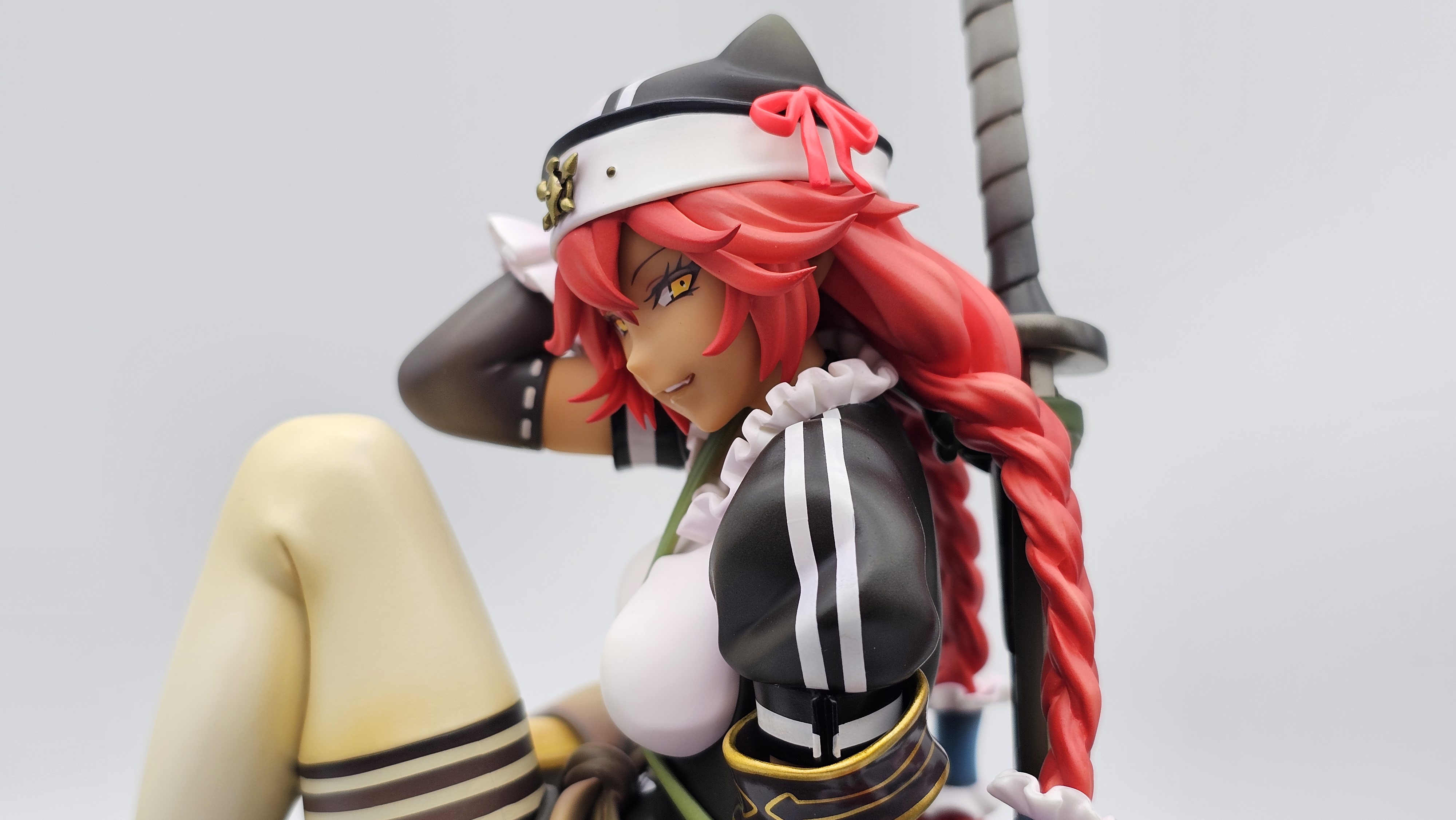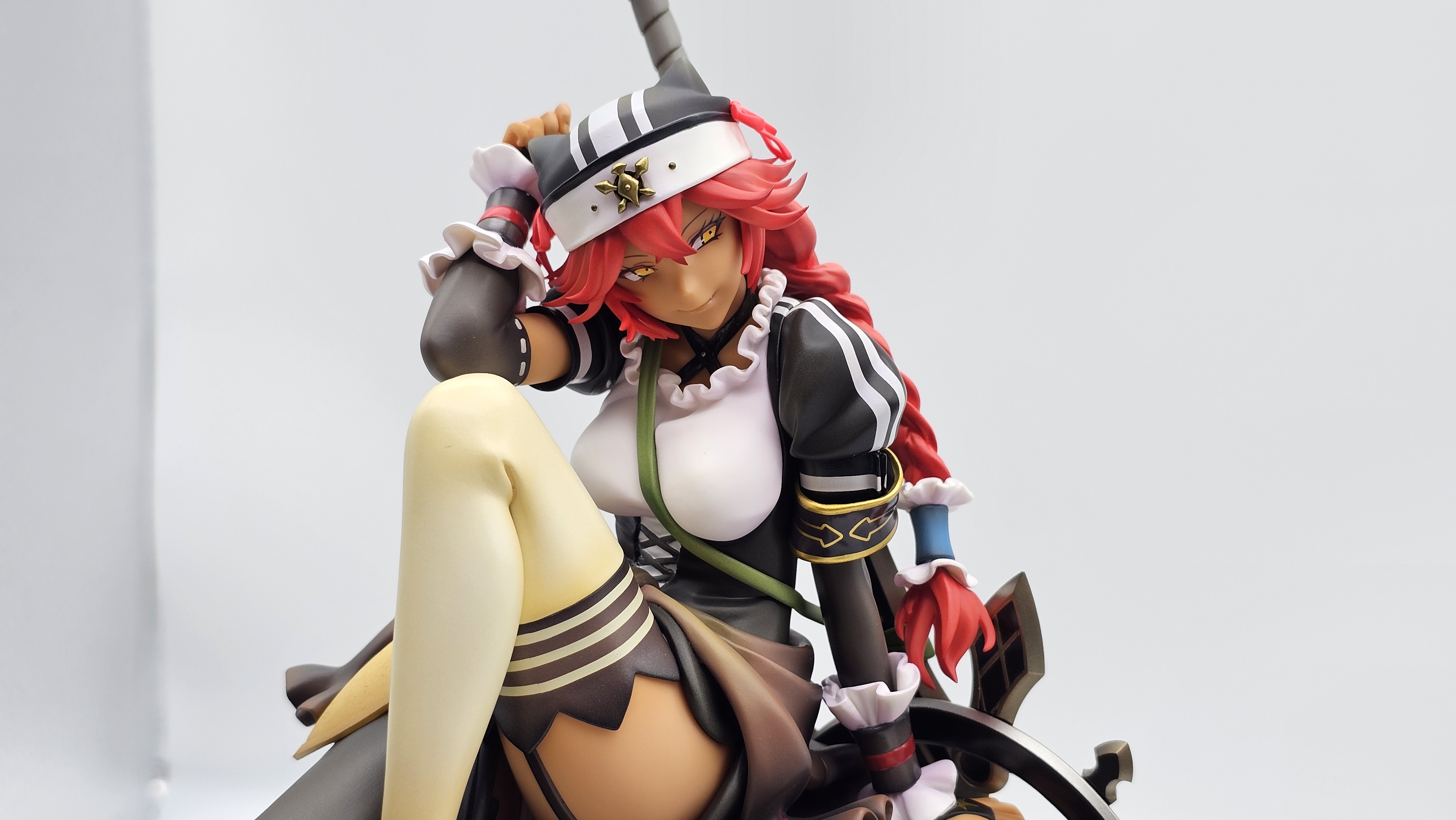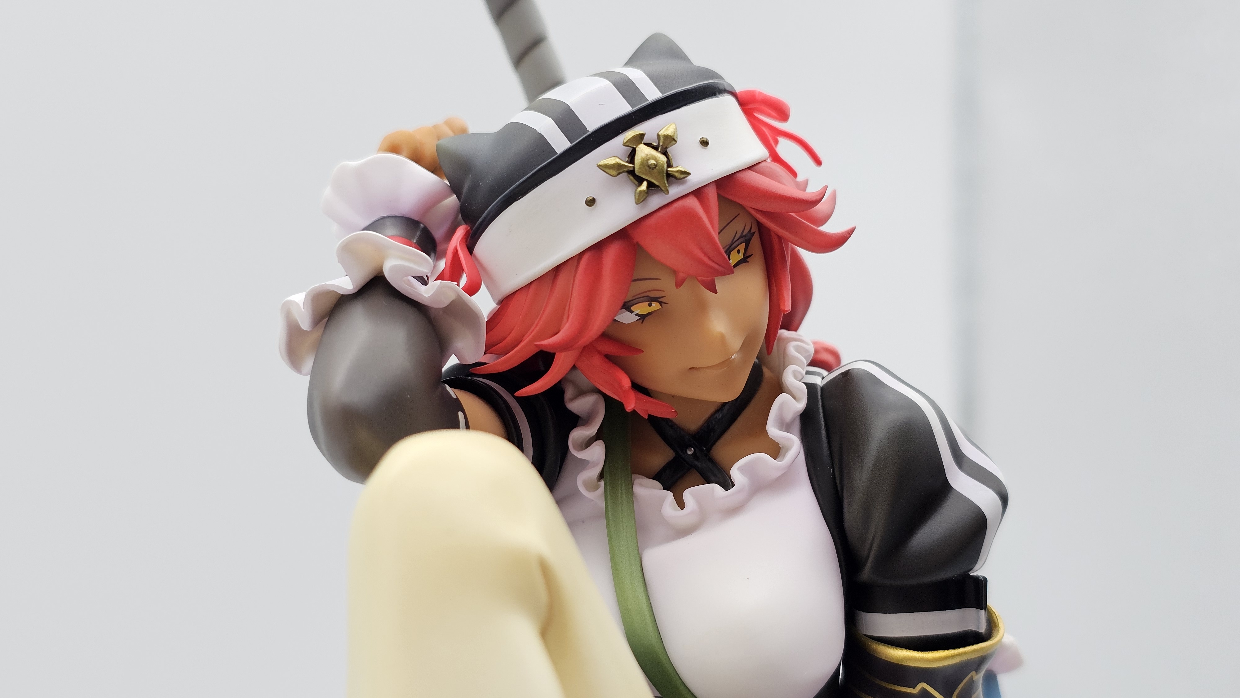 When it comes to quality scale anime figures, Alter rarely misses. Using So-bin’s design of Lupisregina is a great choice as this figure embodies the lycanthrope herself. She’s an elegant, yet beastly maid that serves the great Ainz Ooal Gown! This figure sports a base that’s seems simple, but is very unique in it’s style. The darker tones in contrast with her dark red hair and cream colored leggings creates a good synergetic balance of colors. The sculpt of the figure’s hair, the face and expression is stunning!