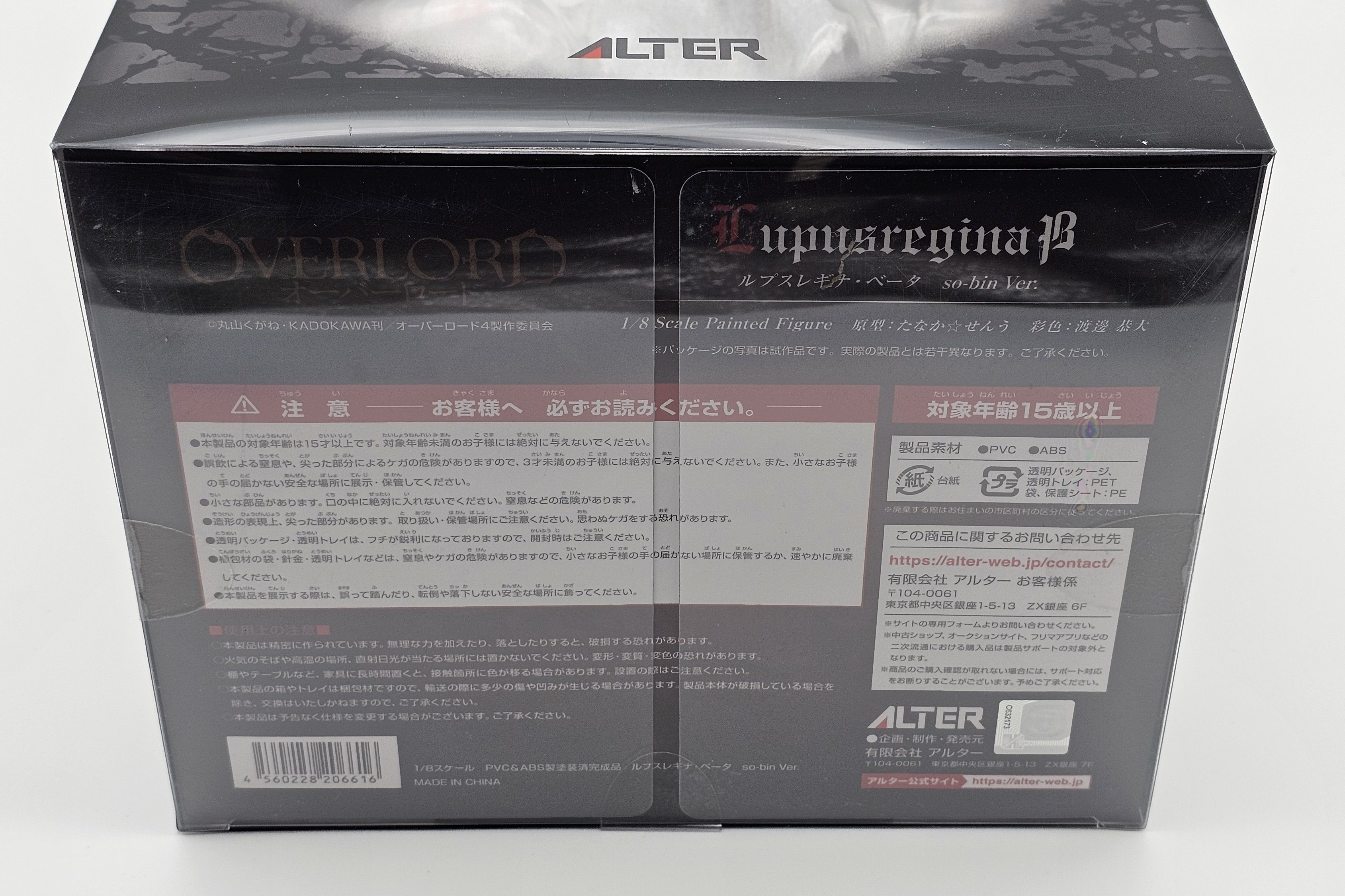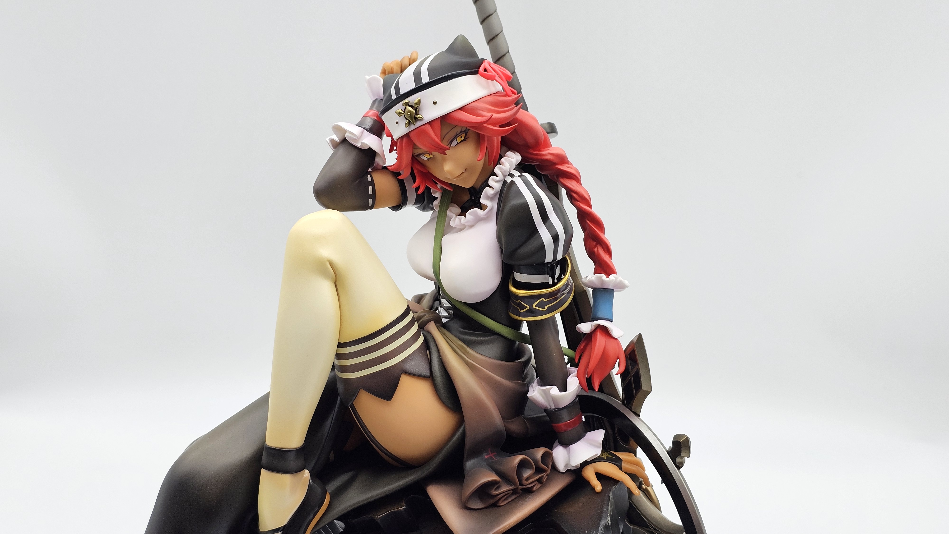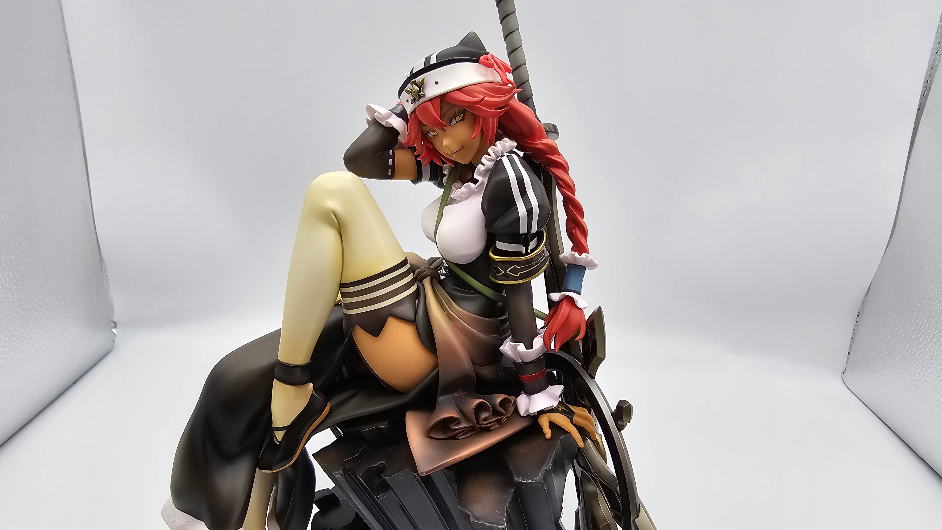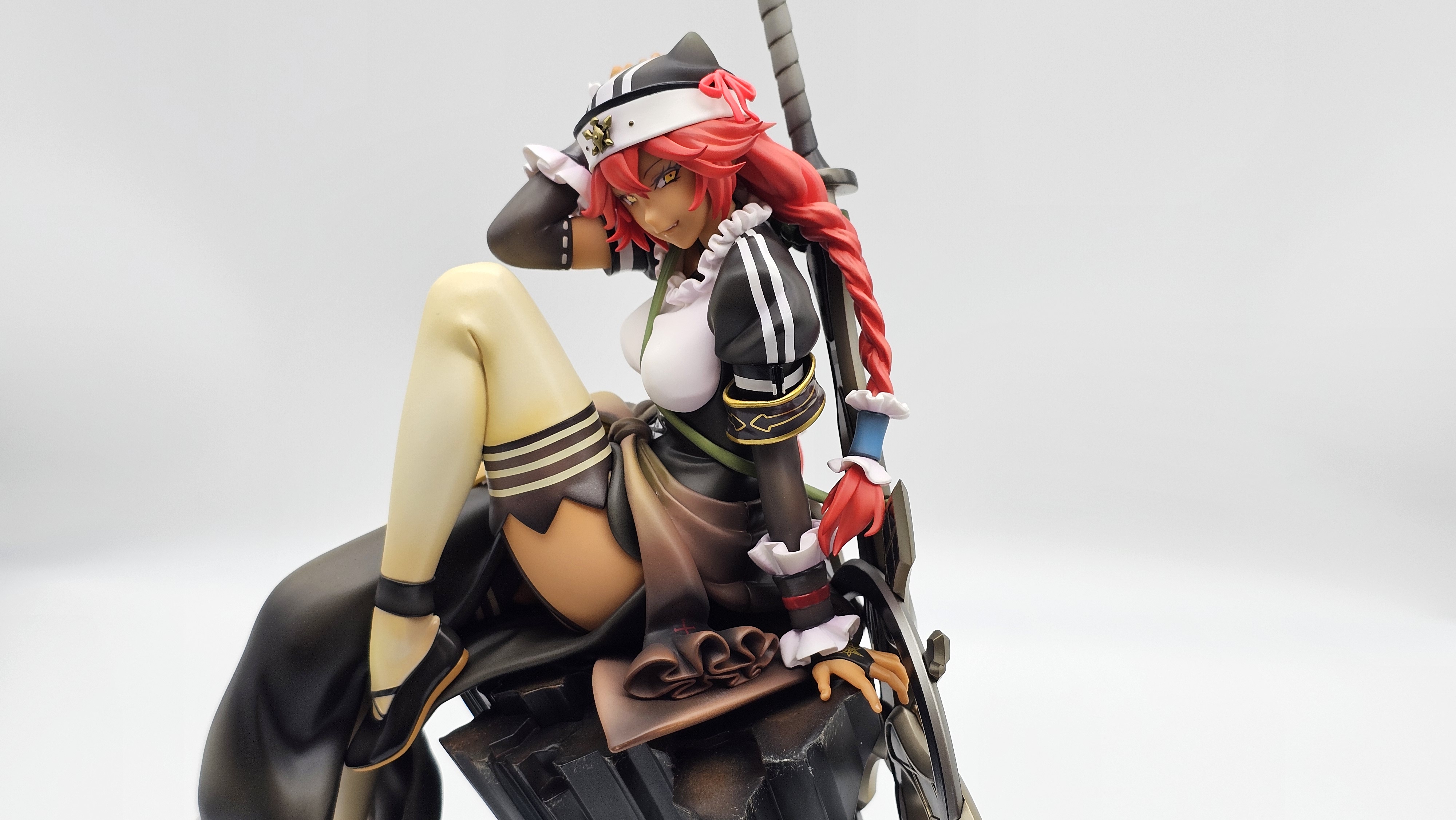 When it comes to quality scale anime figures, Alter rarely misses. Using So-bin’s design of Lupisregina is a great choice as this figure embodies the lycanthrope herself. She’s an elegant, yet beastly maid that serves the great Ainz Ooal Gown! This figure sports a base that’s seems simple, but is very unique in it’s style. The darker tones in contrast with her dark red hair and cream colored leggings creates a good synergetic balance of colors. The sculpt of the figure’s hair, the face and expression is stunning!