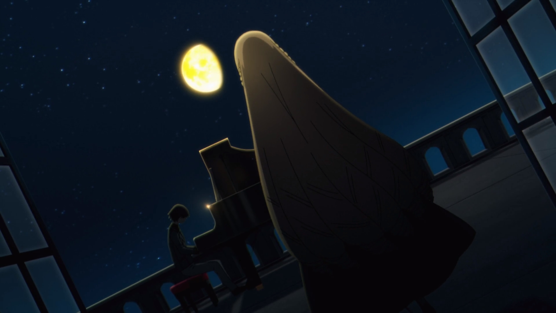 After an awful sequence that ended in Shadow’s nonchalant apology, the scene shifts to Rose waking up on the couch. Bearing all the trauma and questioning everything that she tried to accomplished, she couldn’t help but continue throwing up with the images of Perv & her mother flashing before her. In all of her suffering, she can only think about how great the past was with Cid. Right as Rose calls out for Cid’s, Cid starts playing “Moonlight Sonata” on the balcony outside her room.