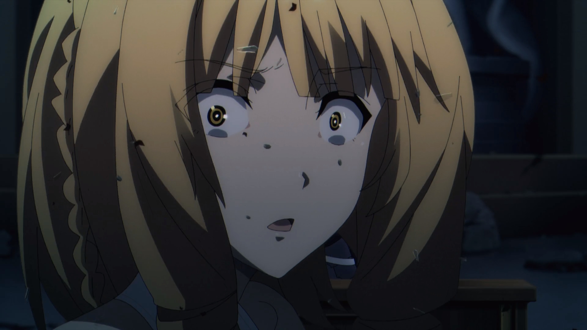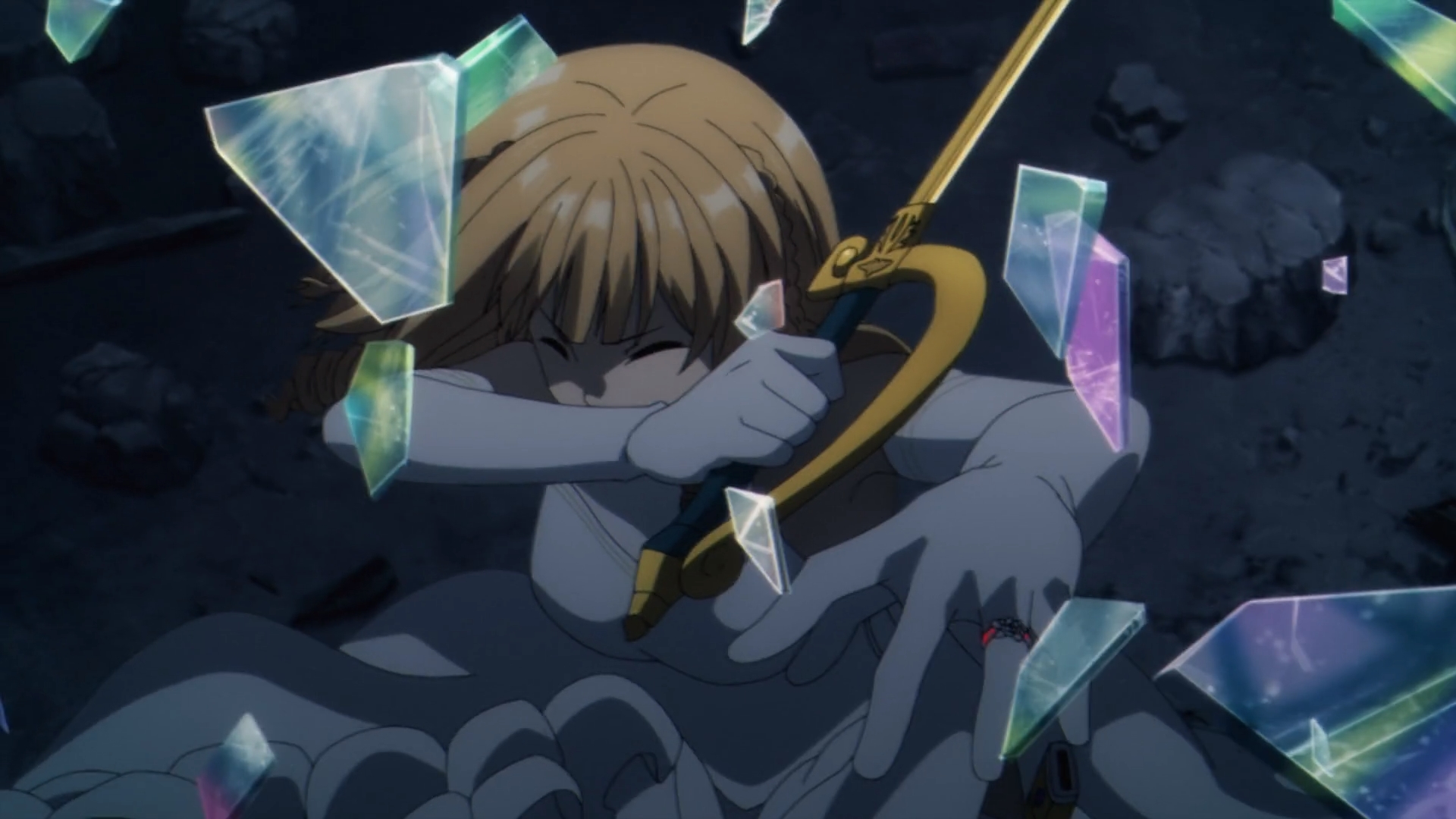 The episode’s opening scene shows what Zeta’s mission was all about towards the end of the John Smith arc, when Alpha sent her off to retrieve a particular artifact from the Cult of Diablos. After some flashes of Shadow Garden facing head to head with the Cult, Zeta faces the conclusion of the mission’s objective. The special item that Zeta is there for has been removed to a new location. Trying to catch Zeta off guard, a Cult member sneak attacked Zeta, but is left with quite the open wound..