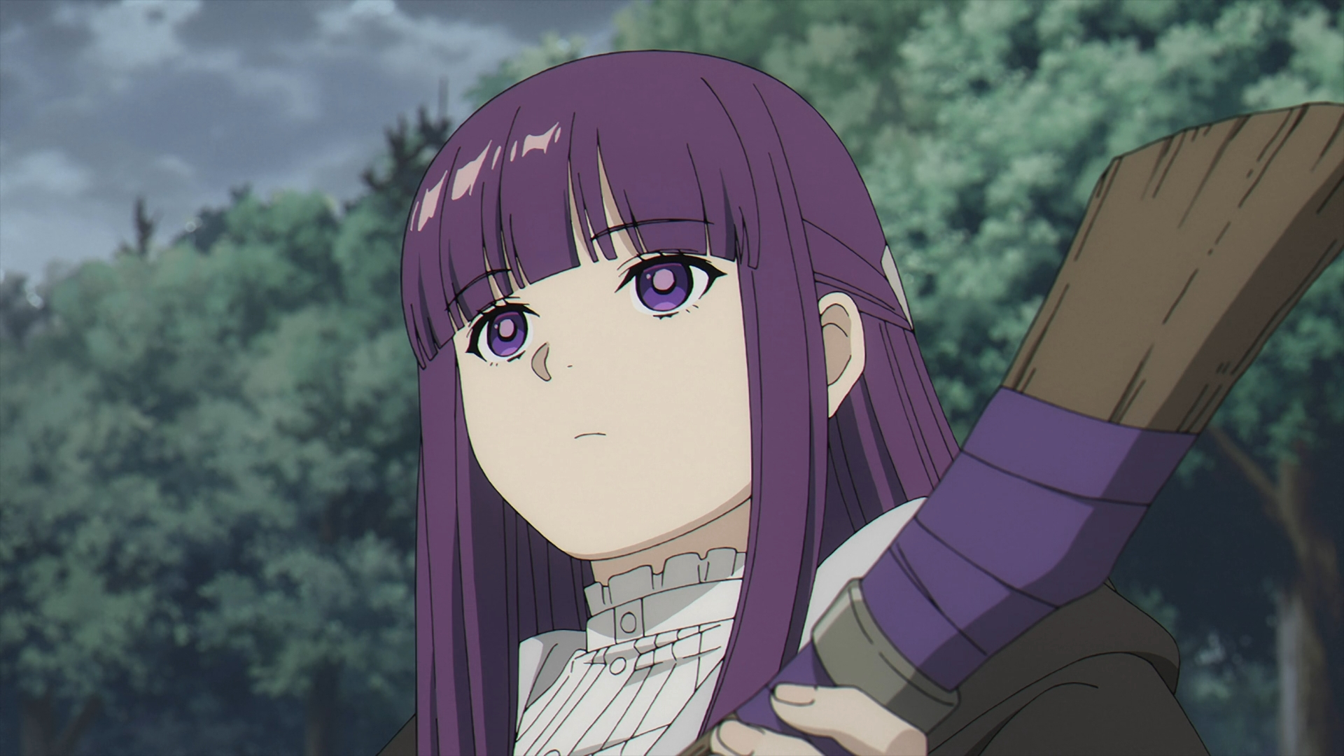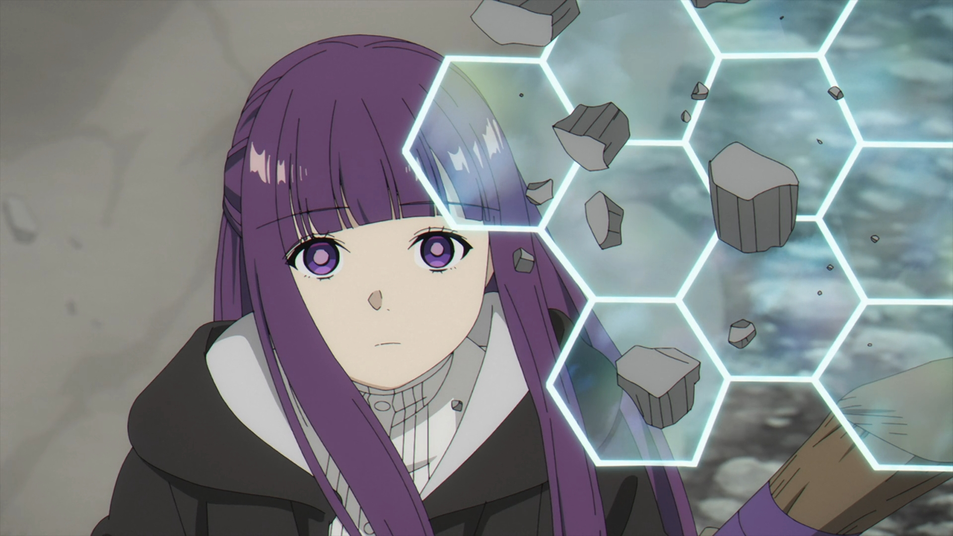 Ehre sends a flurry of attacks, but it doesn’t work. This causes her to feel an sense of uneasyness against someone that feels a lot more experienced. She tells Fern that she would be defeated by Wirbel with her moves. Fern responds that Ehre is indeed the strongest one, not Wirbel. In Ehre’s defense of Wirbel, she explains his position as the “captain of the Northern Magic Corps.” Continuing on, that he fought the remnants of the Demon King’s soldiers and that his magic is “devoid of character.” Because of his ‘underhanded’ way of fighting, Ubel’s life is at risk. The episode ends with Fern acknowledging what she just said.
