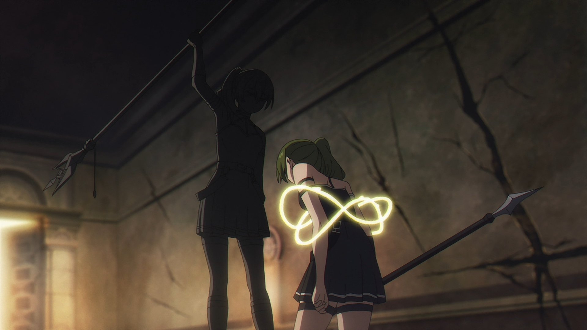 As little as Edet, Blei and Dunste has done and said this entire arc, they served their purpose for this exciting scene. Even though these three are not really “battle mages,” it’s cool to see another aspect of magic being used. Everything that Genau mentioned from the beginning of the episode from what Sense wanted out of this test is coming to fruition. Everyone must force themselves to work together and correctly analyze their own strengths & weaknesses. Then, they have to come up with a sound strategy. Wirbel seemed to figure it out right away when they were forced to fight their replicas. Ubel had an easy strategy to defeat her replica with the forceful aid of Land. Denken and the others are still trying to strategize. Now, Edel is the latest example of “knowing your own strength” and correctly calling it quits. Meanwhile, Blei & Dunste show how they are the least perceptive and worthy at acknowledging the reality of their situation.