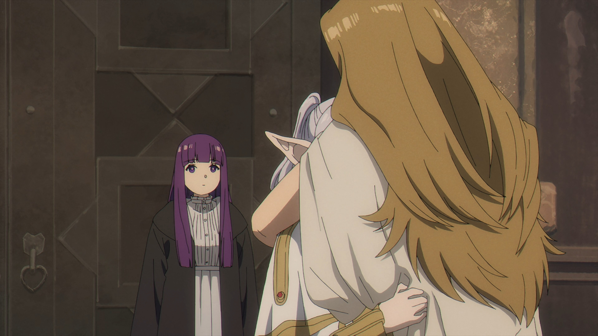 There is a bit of a nuanced flair from the anime to the manga with this exact scene. In the English translation of the manga and how the manga panel was drawn with Fern, it seemed a lot less dramatic. In the anime, with the close up of Fern’s eyes “suggesting” that she could kill Frieren, it seemed a lot more cold and brutal. Given that I’m very pro ‘hooks’ and ‘cliffhangers,’ I loved the slight differences and fillers the anime chose to add. This would be the beginning of what Fern’s climatic character development would be in this arc. This is a necessary and emphatic moment for Fern’s character.