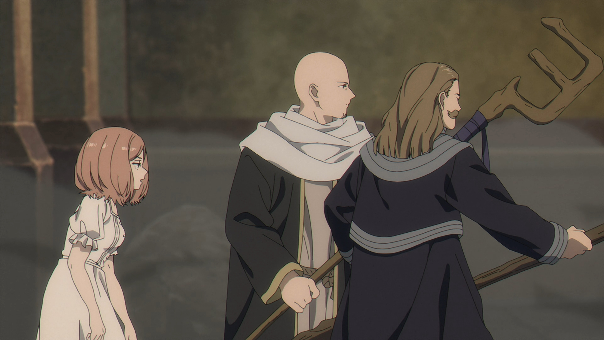 Dunste and Blei make their swift escape and question if anyone can even make it to the bottom of the dungeon. Blei’s fears from the beginning of the 2nd exam is enhanced as he thinks Sense just wants them to die. This starts another class Frieren montage with the loner Ton, getting the worst of it.