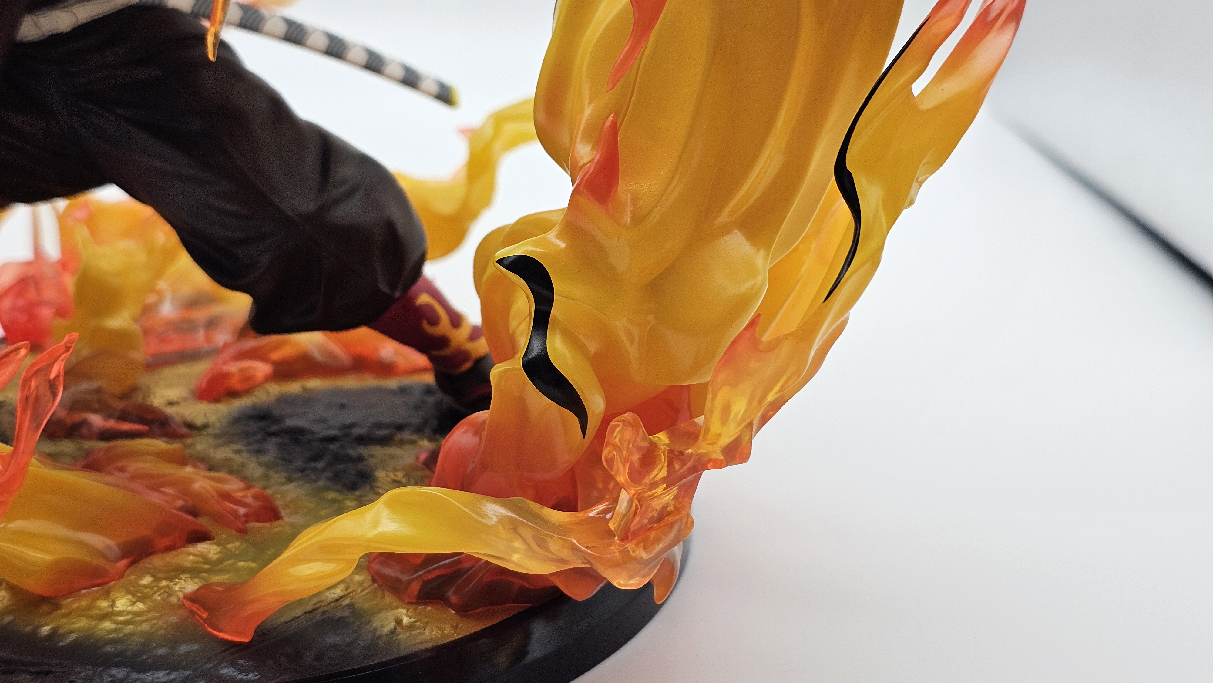 - With the figure being flame effects ‘heavy,’ it has a very balanced look between the expression and stance of Rengoku’s body to the flame that is hovering over his sword