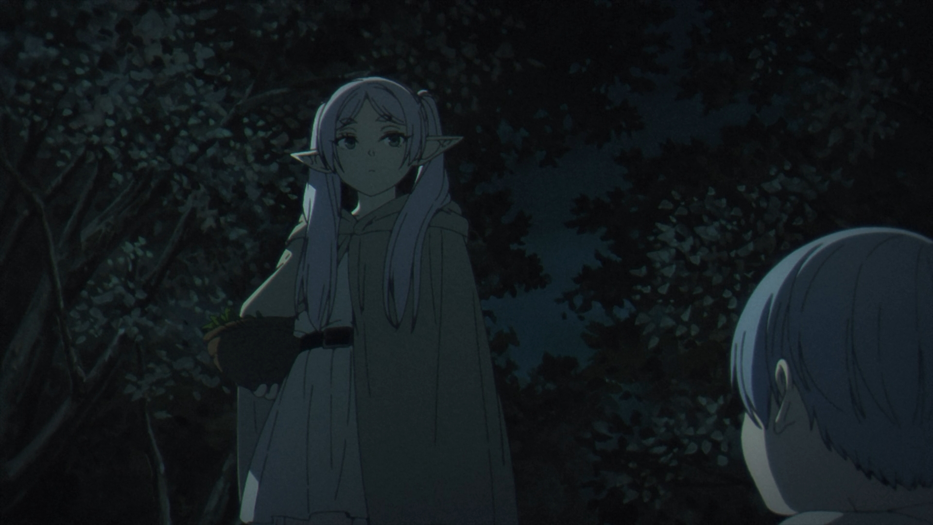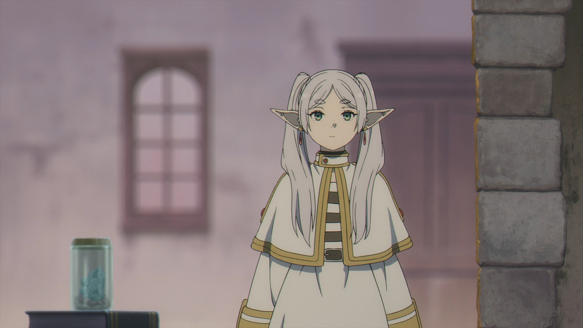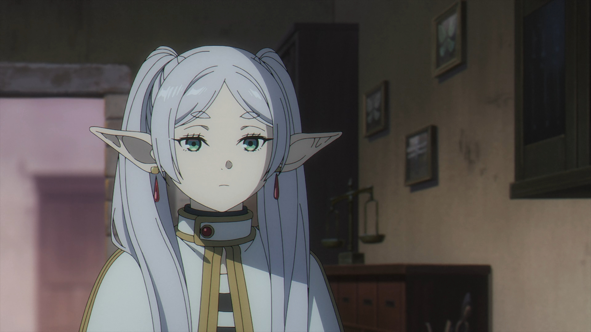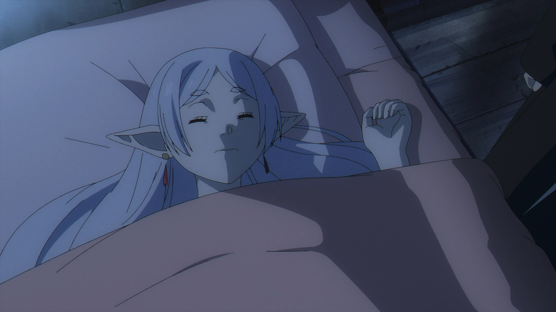 Once Fern gets back to the inn, she finds her staff on her bed all back in one piece. She looks over to Frieren sleeping in the other bed and this sparks a flashback with Fern speaking with Heiter on his deathbed.