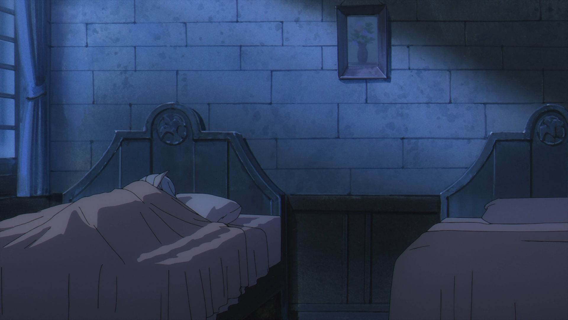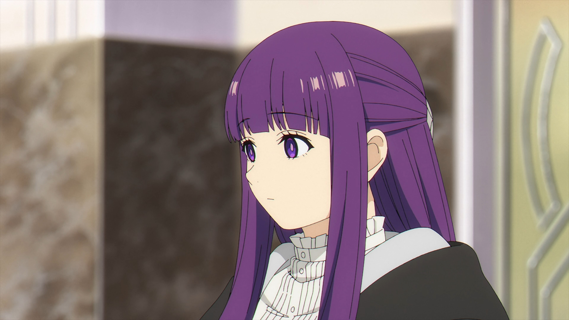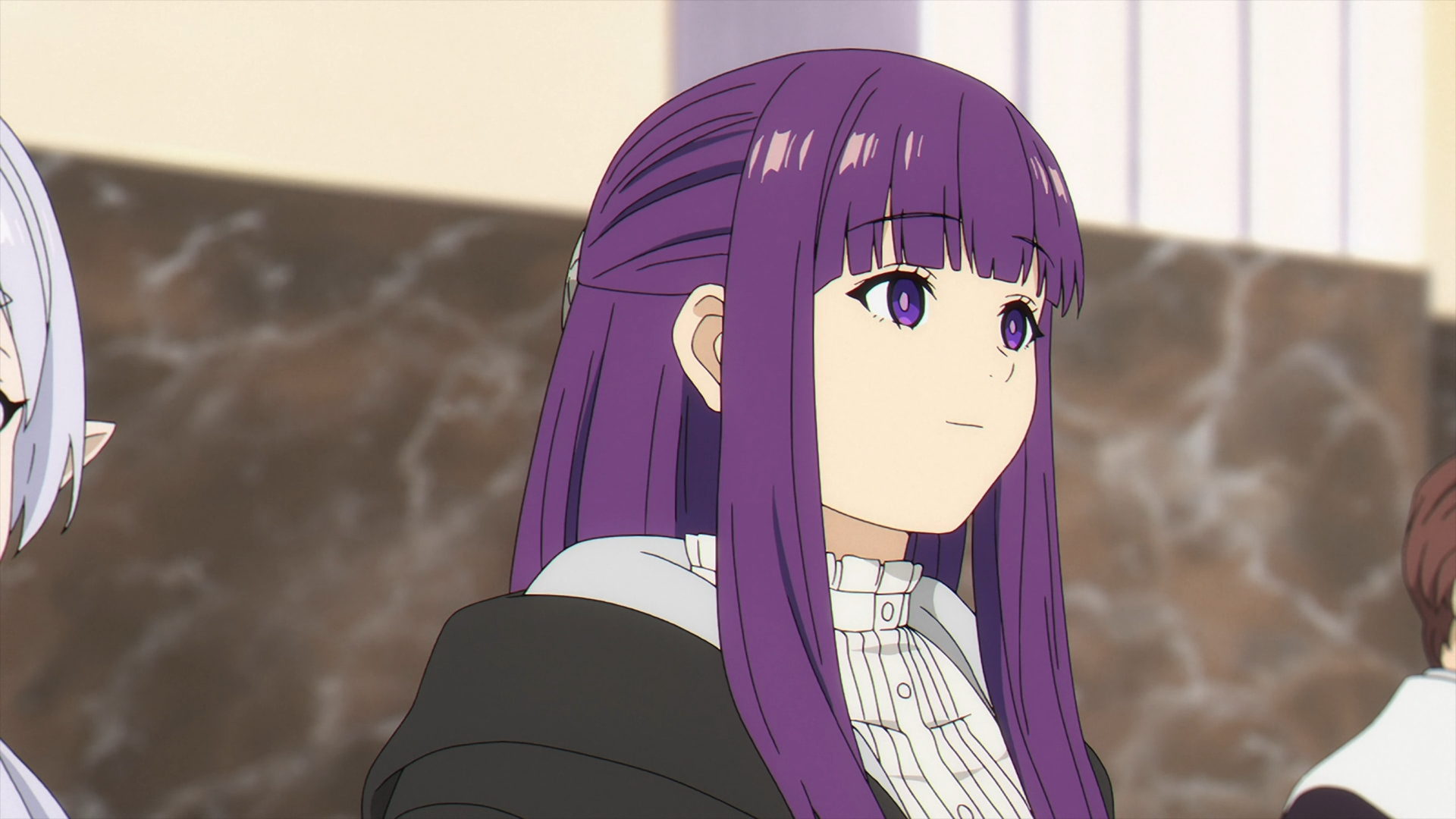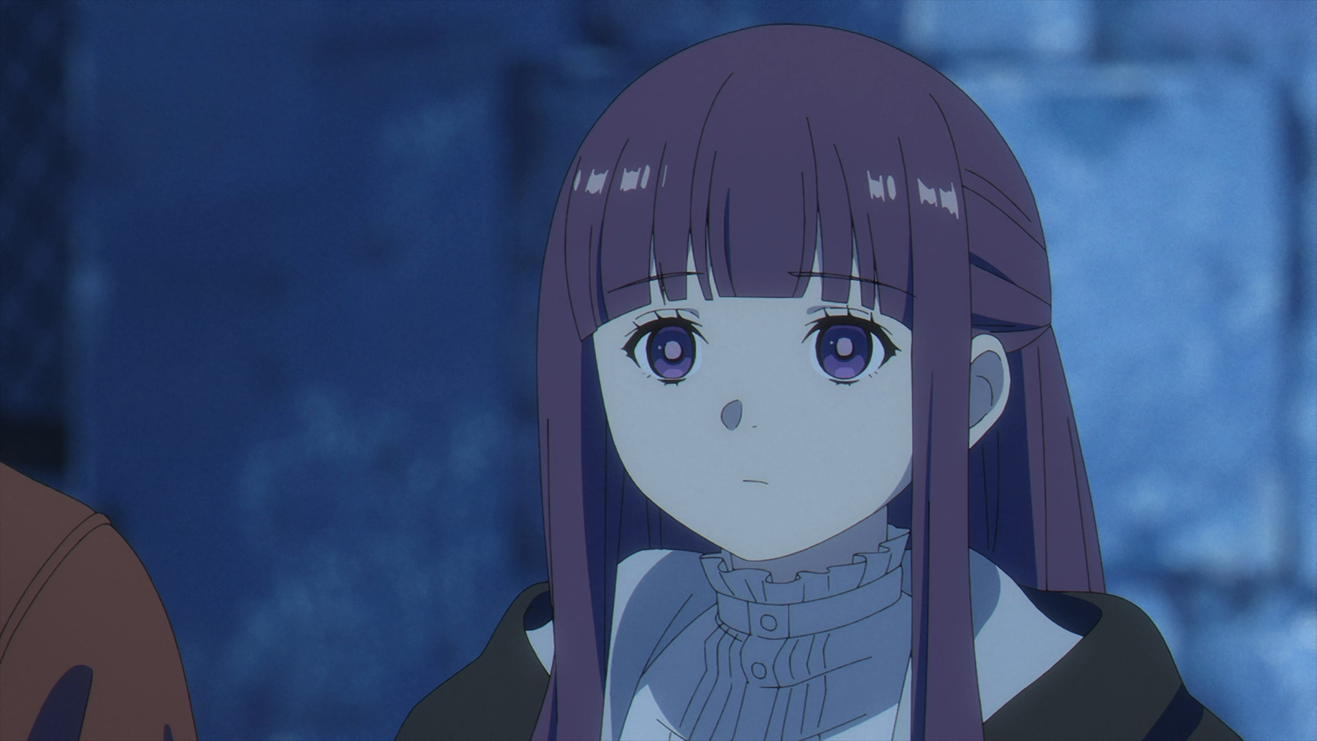Once Fern gets back to the inn, she finds her staff on her bed all back in one piece. She looks over to Frieren sleeping in the other bed and this sparks a flashback with Fern speaking with Heiter on his deathbed.