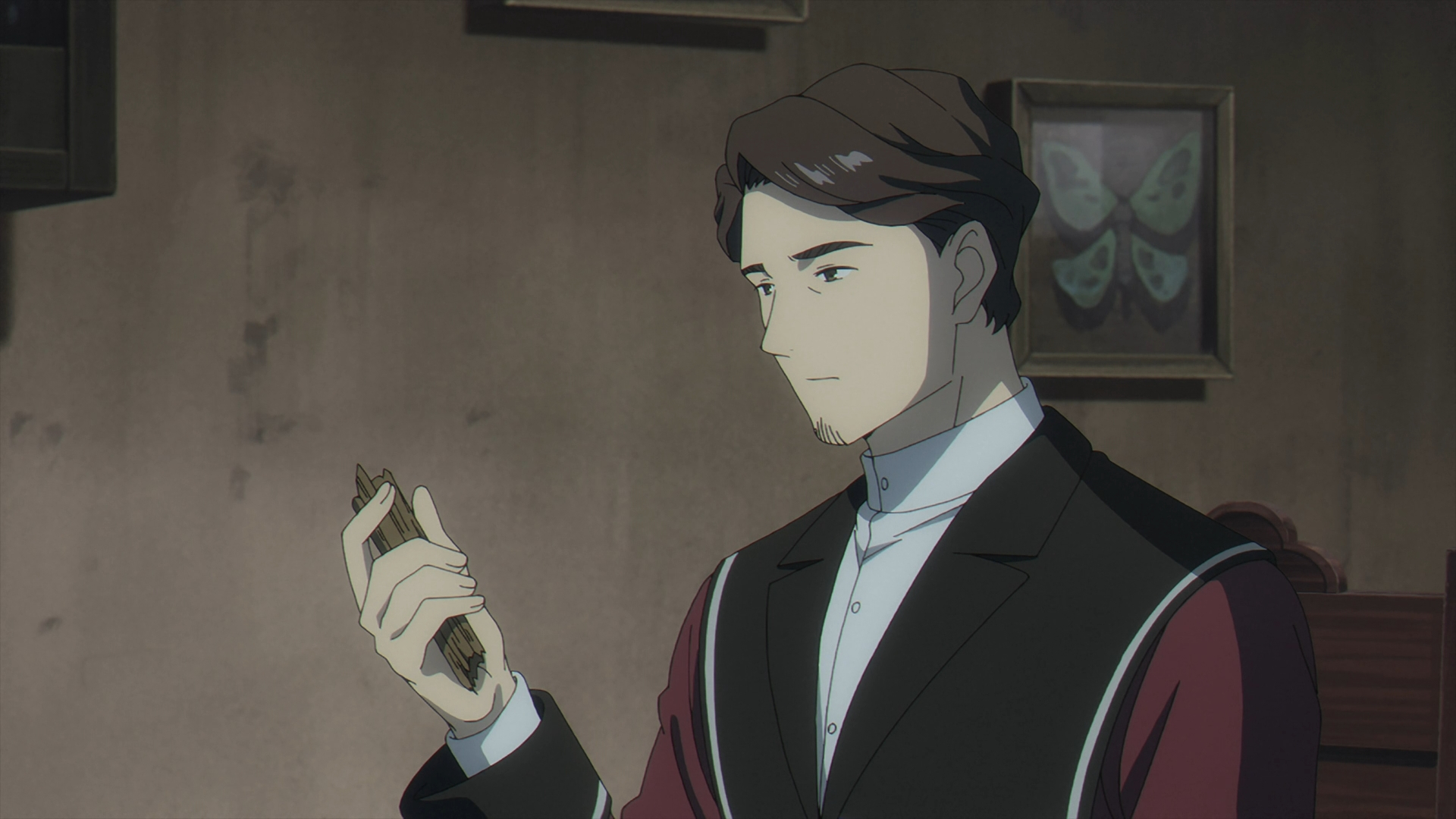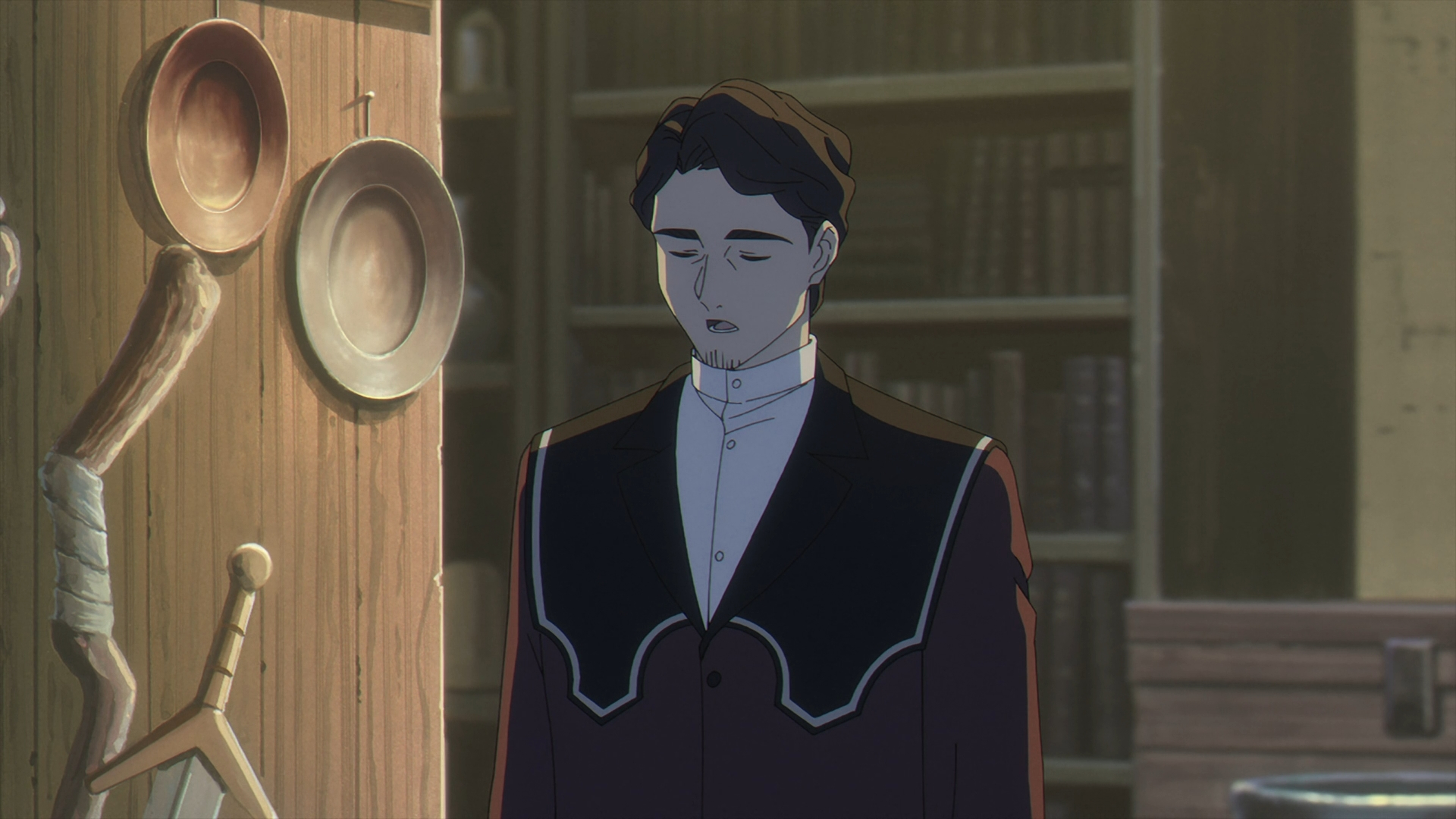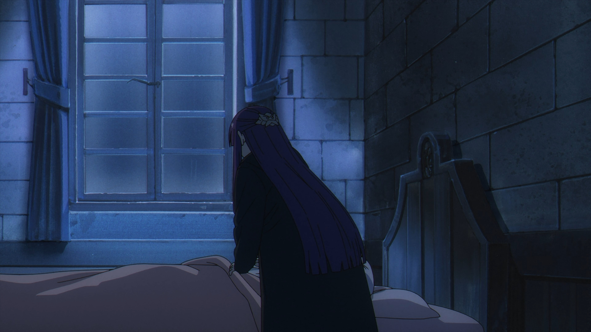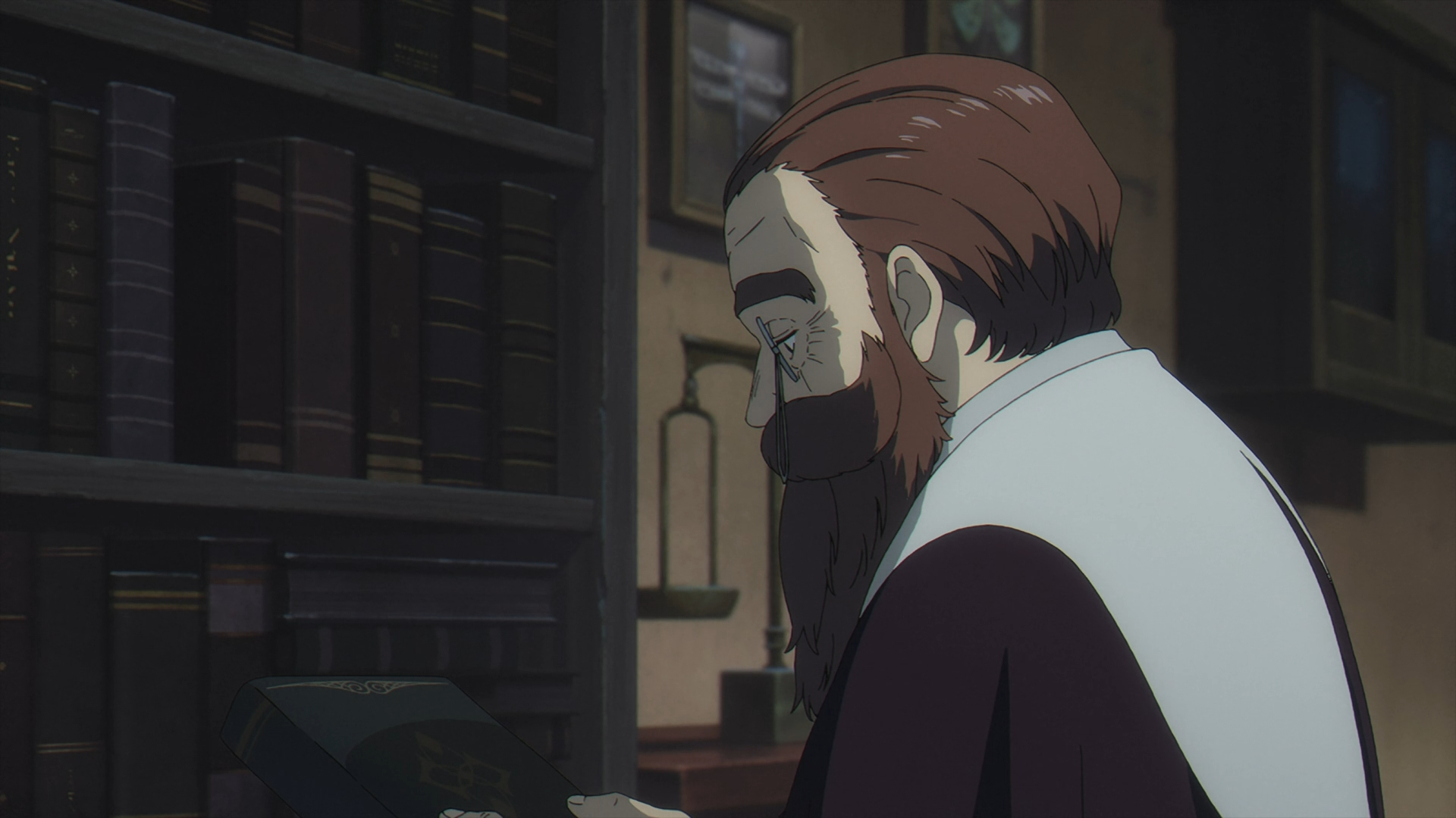 Once Fern gets back to the inn, she finds her staff on her bed all back in one piece. She looks over to Frieren sleeping in the other bed and this sparks a flashback with Fern speaking with Heiter on his deathbed.