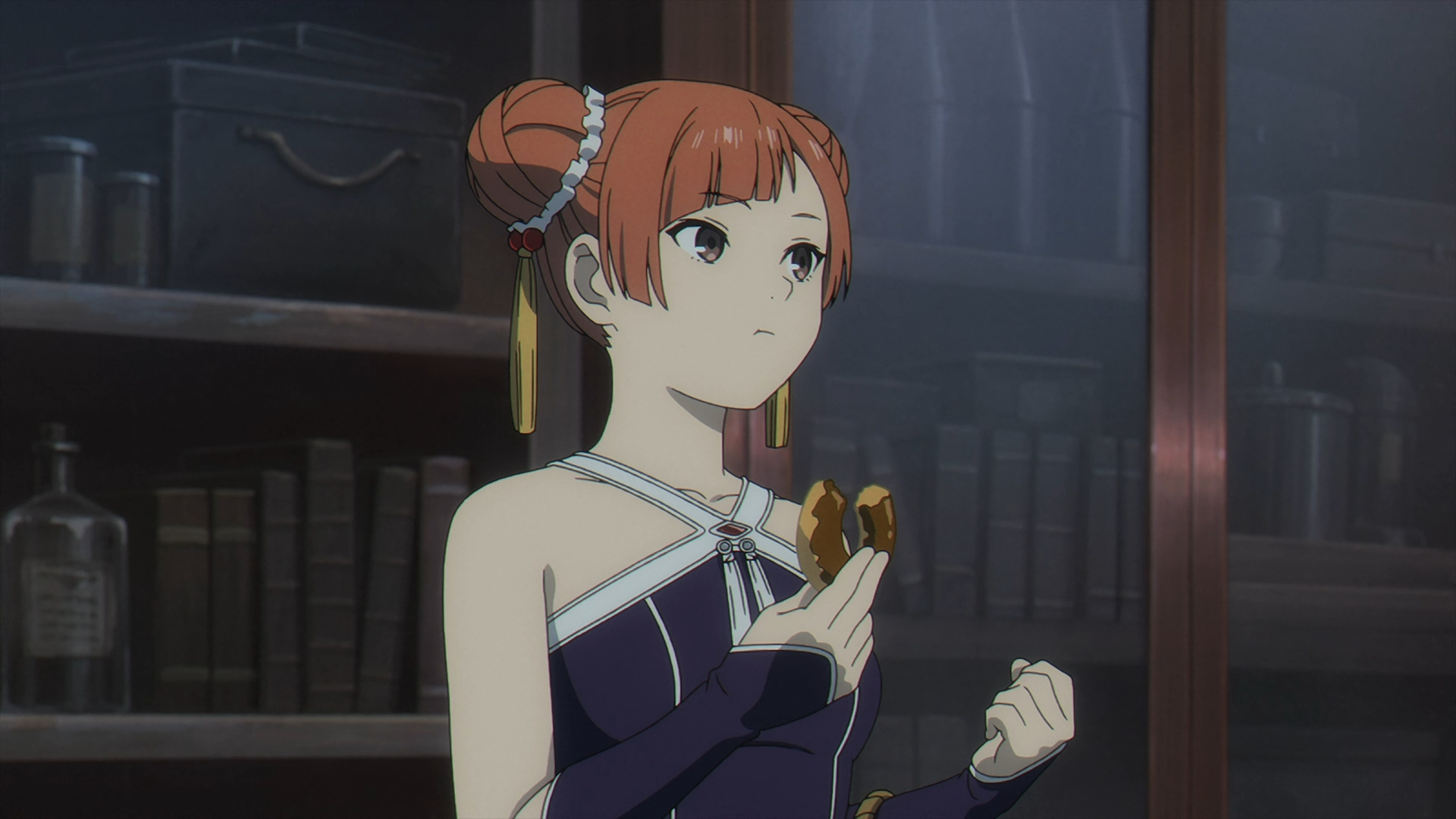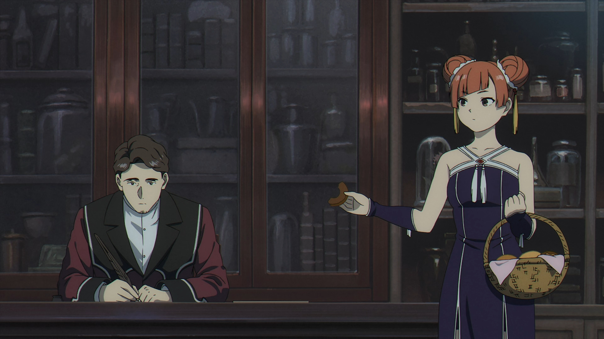 The scene shifts to Richter getting annoyed by Denken loitering around in his store. The exams are over, but Denken uses the excuse that “he’s a customer.” Funny enough, Laufen is hanging around the store with Denken as she offers a donut to Richter, in which he sternly denies.