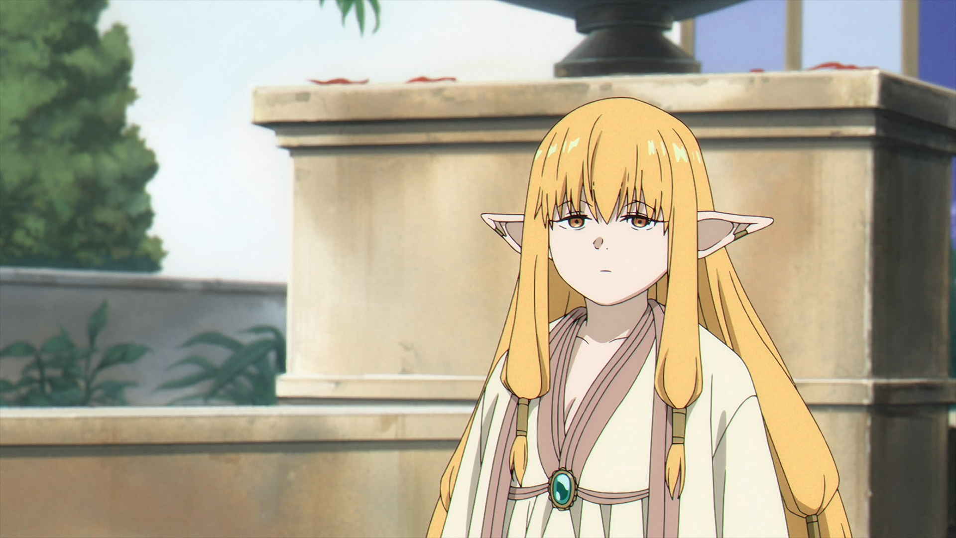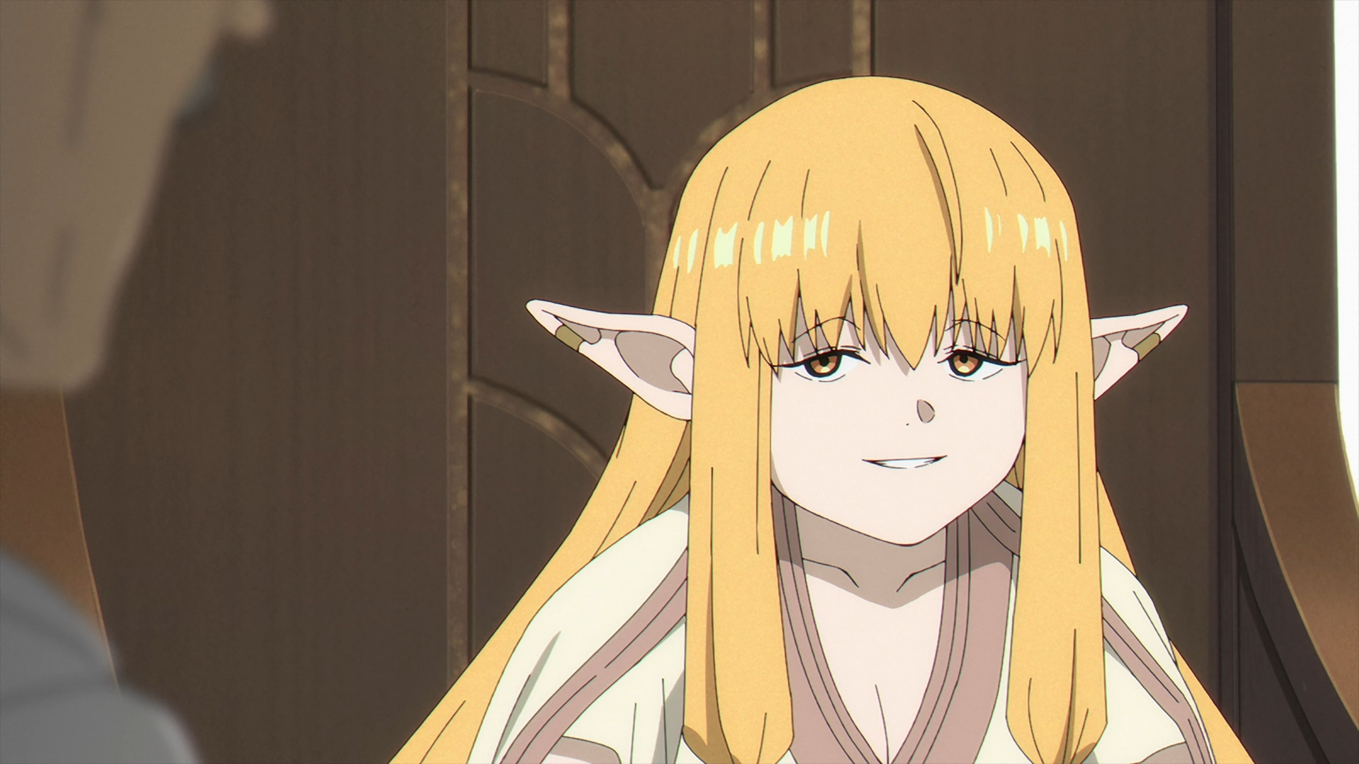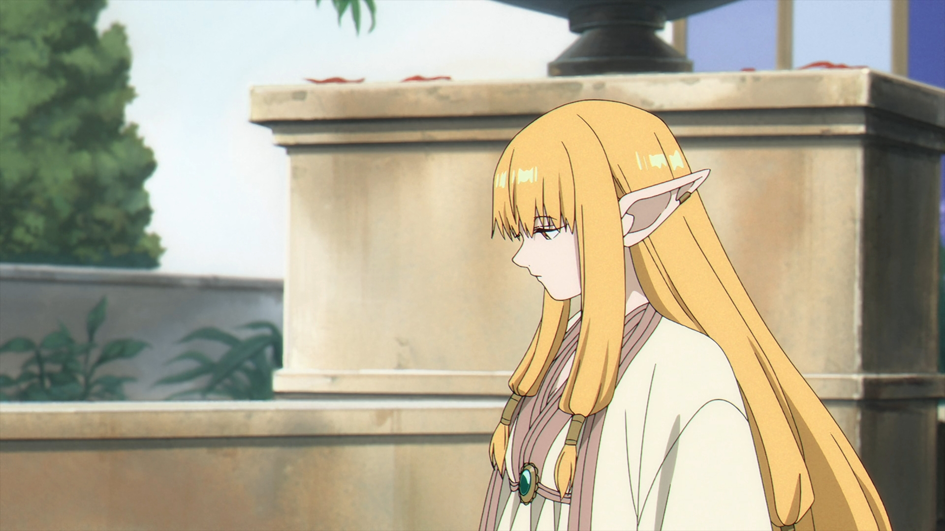Frieren enters Richter’s shop to ask if it is possible to fix Fern’s staff? In Richter tilted fashion, he goes off about how poor his mood got and how this pile of wood might just be “trash.” Frieren hints that it might just be. Richter tells her that “he has a right to refuse service.” Frieren gets up with Fern’s staff and starts to leave, but Richter stops her. Then, Richter says, “I never said I couldn’t fix it.”