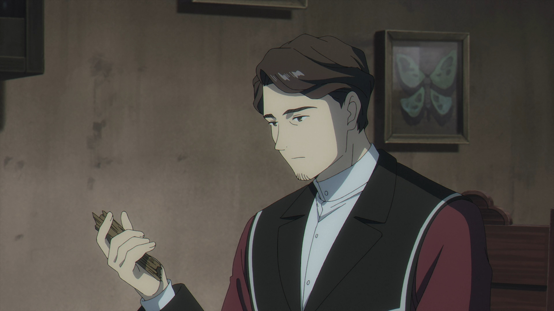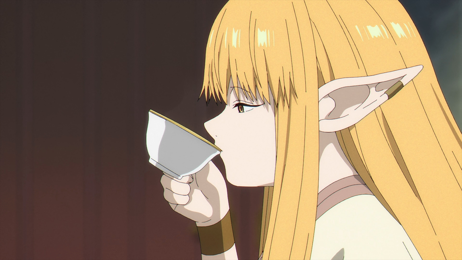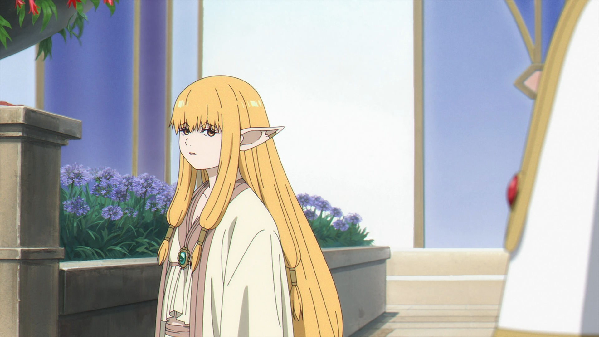 Frieren enters Richter’s shop to ask if it is possible to fix Fern’s staff? In Richter tilted fashion, he goes off about how poor his mood got and how this pile of wood might just be “trash.” Frieren hints that it might just be. Richter tells her that “he has a right to refuse service.” Frieren gets up with Fern’s staff and starts to leave, but Richter stops her. Then, Richter says, “I never said I couldn’t fix it.”