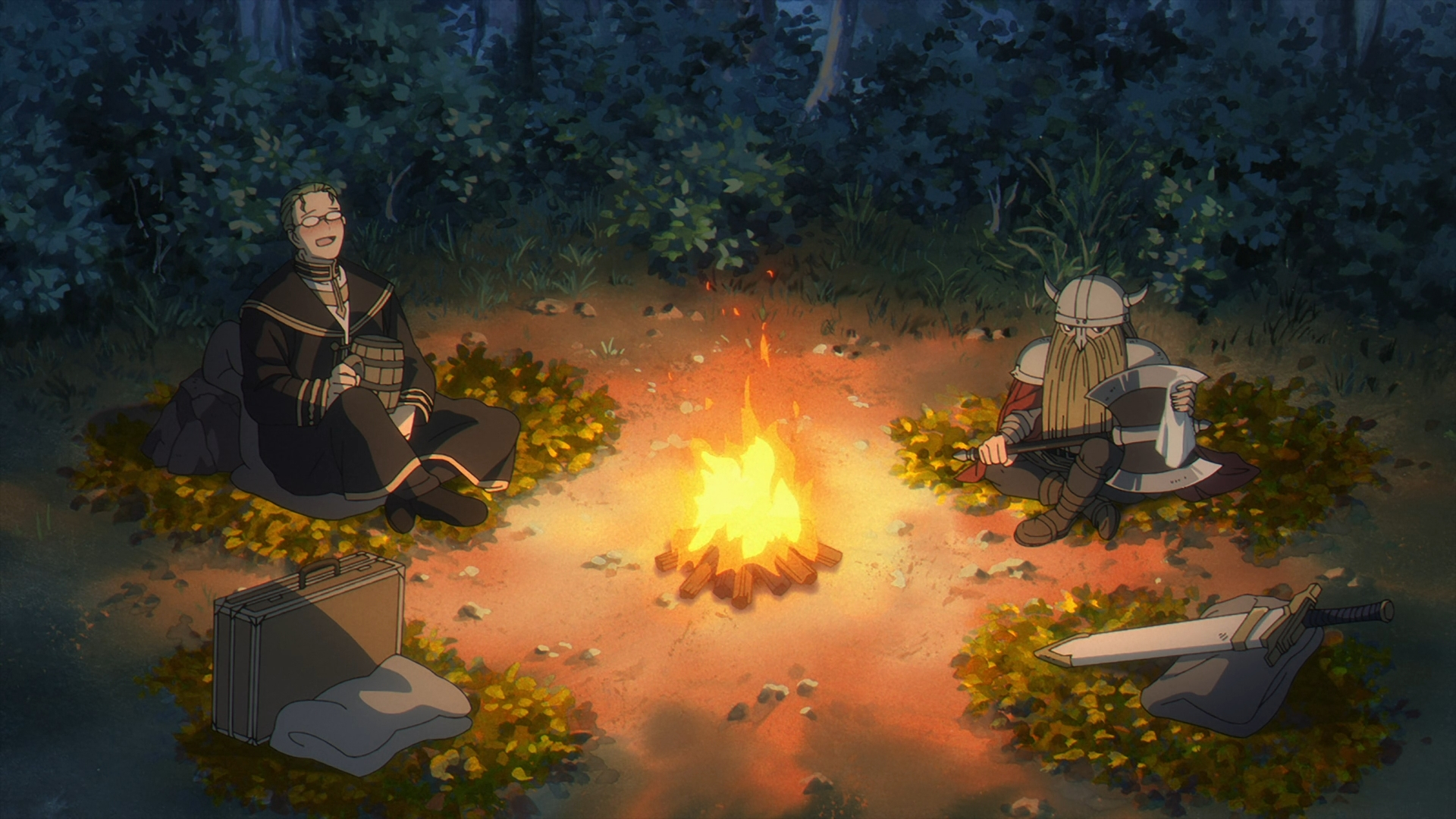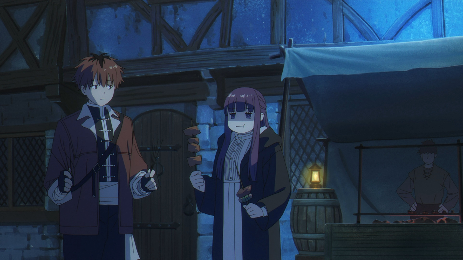 In comedic fashion, the scene jump cuts to Fern’s frustrated face, stuffing herself with Stark after Richter complements her staff. It gets late at night as Fern continues venting about Frieren “not understanding her at all.” To Stark’s not so smart agreeable response that “he too does not,” Fern throws another tantrum with fist bumps to his body.
